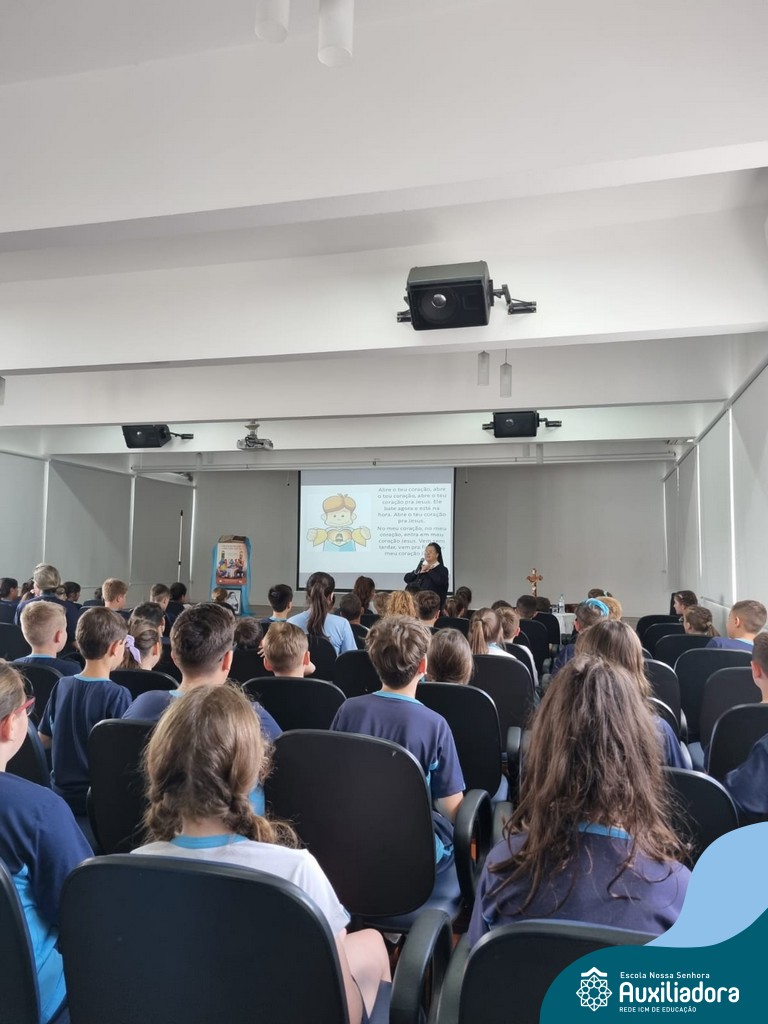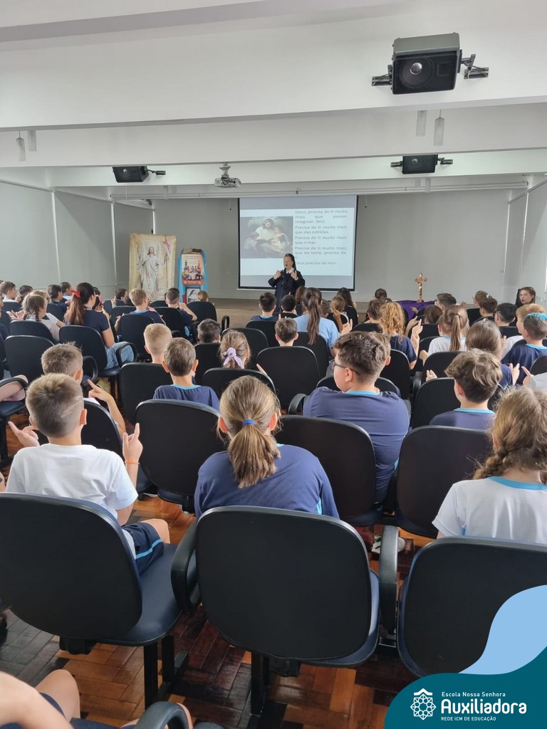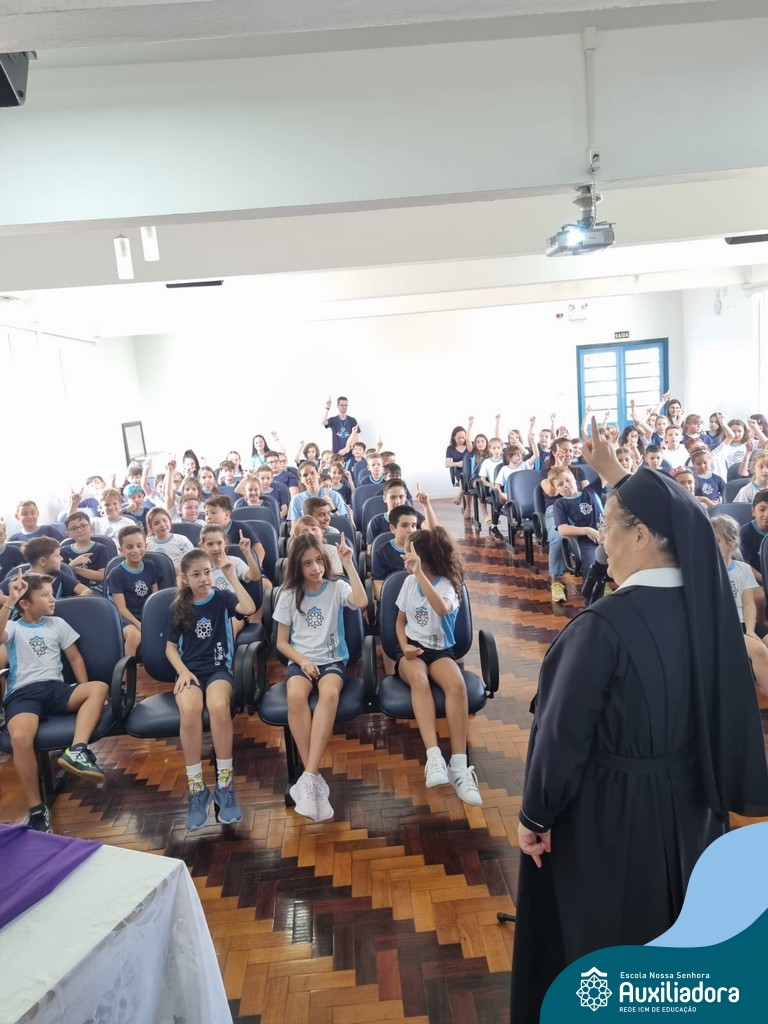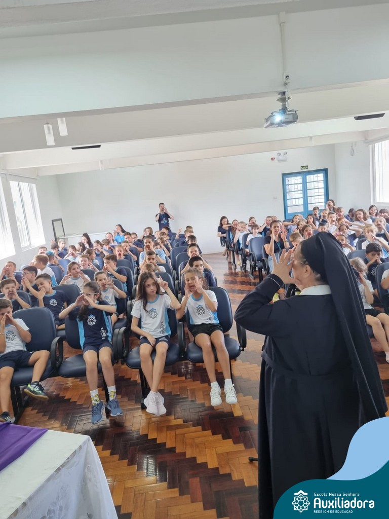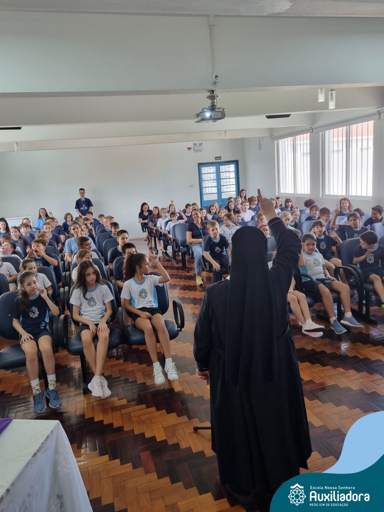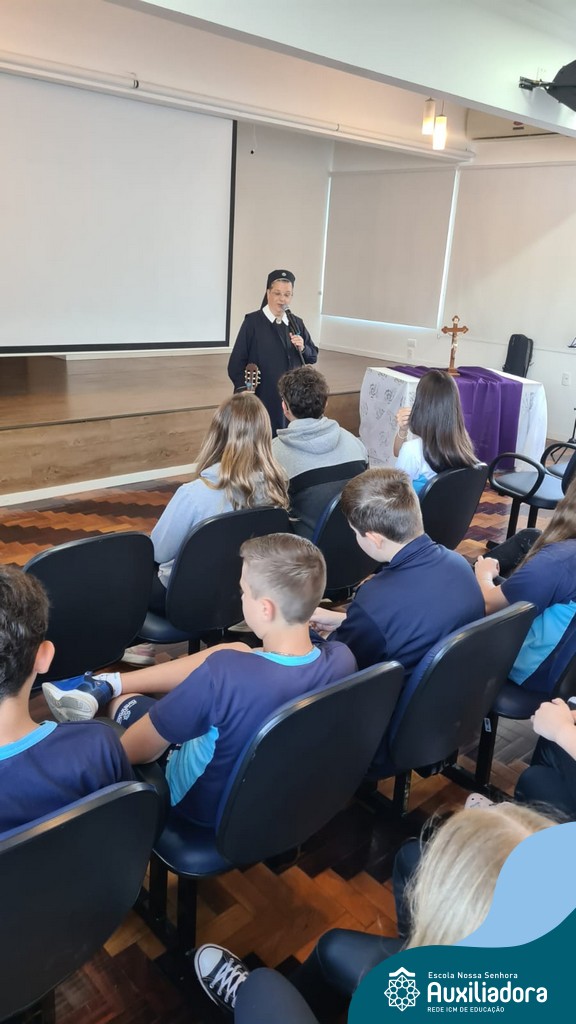 Na última segunda-feira, a nossa escola foi palco de uma emocionante serenata em homenagem a Jesus, realizada pela Irmã Elaine com sua voz com voz harmoniosa e suas palavras grandiosas, o ambiente foi preenchido com louvores e gratidão. Foi um momento de união e espiritualidade, onde os estudantes expressaram sua devoção e amor por meio da música. A serenata para Jesus certamente deixou uma marca profunda em todos os presentes, lembrando-nos do verdadeiro sentido da Páscoa, da nossa fé e da comunidade na nossa jornada escolar.
