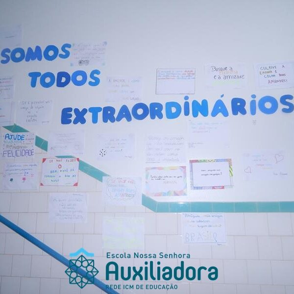 ✅No primeiro trimestre de 2018, os professores da Escola Auxiliadora trabalharam com o Projeto “Somos todos Extraordinários”. ✅O objetivo do projeto era trabalhar sobre o bullying na Escola, através de leituras e reflexões que permitissem uma discussão sobre o tema. ✅As atividades iniciaram com a palestra sobre “Empatia”, ministrada pelas Psicólogas Janine Cerutti e Vanessa Balen Felin. ✅Em seguida, os alunos realizaram a leitura do livro “Extraordinário”, de R.J Palacio e assistiram o filme adaptado do livro, com a direção de Stephen Chbosky. ✅Após a leitura, comparação e reflexão dessas linguagens, os alunos socializam suas leituras e construíram preceitos que foram expostos na Escola. ✅A atividade contribuiu para o trabalho com a temática do bullying, reiterou a importância do respeito e da empatia na sociedade e permitiu o contato e a percepção do texto literário enquanto humanizador.