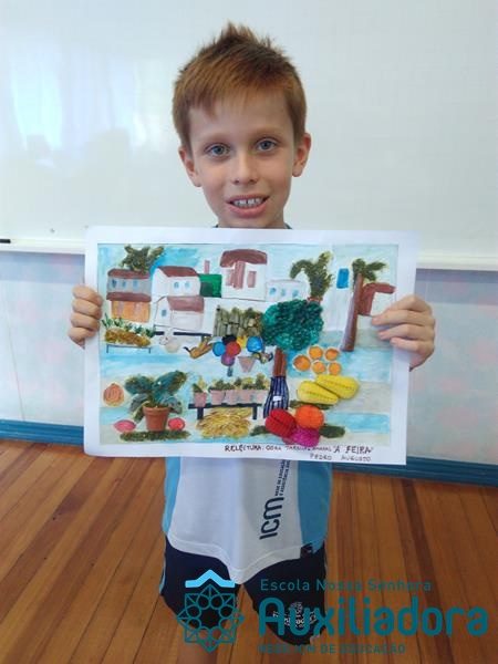 Os alunos aprendem quando pesquisam, estudam, dedicam-se e têm o apoio familiar, além de escolar! O tema de casa era, juntamente com a família, pesquisar sobre a obra de arte A feira, da artista brasileira Tarsila do Amaral, e, em folha A3 realizar a própria versão da obra. A atividade proposta foi ao encontro do que estava sendo feito em sala de aula. Vejam que artistas! ✍📖 👩🏫 Profe Grazieli Noro Grabowski.