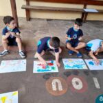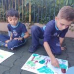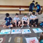 A galerinha do 1° ano aprendeu sobre a água e a importância de preservá-la. Conheceram um pouco mais sobre o seu ciclo na natureza e os estados físicos, culminando a semana com uma belíssima obra de arte com tinta de gelo.
