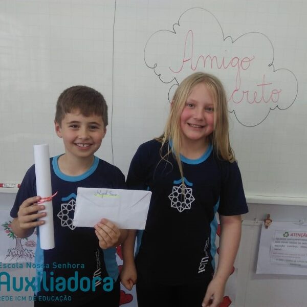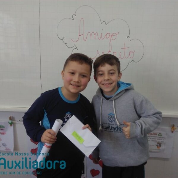 Com o coração repleto de carinho e amizade os alunos do 3º ano 32 retornaram as aulas e reencontraram os amigos. Para marcar esse retorno realizaram uma atividade de leitura de imagens a partir das obras de Romero Britto e entregaram juntamente com uma carta ao seu amigo secreto.