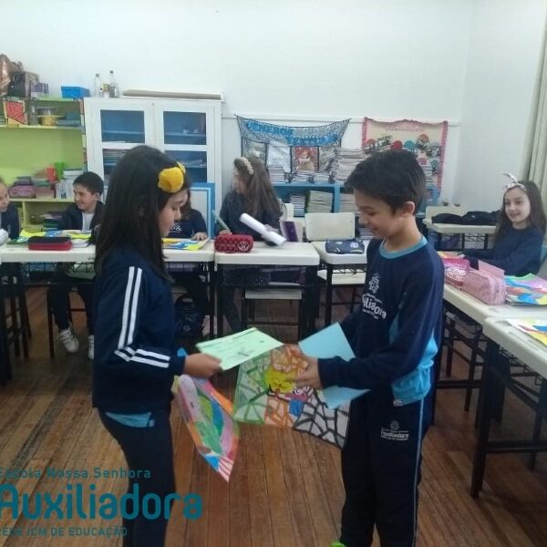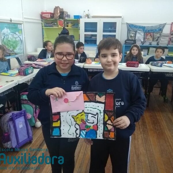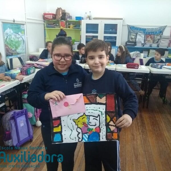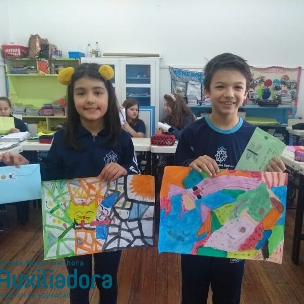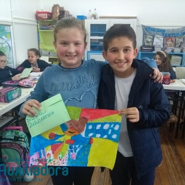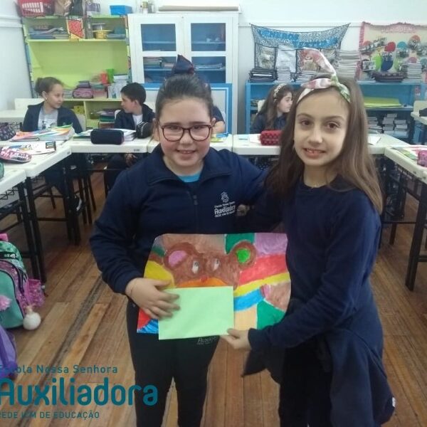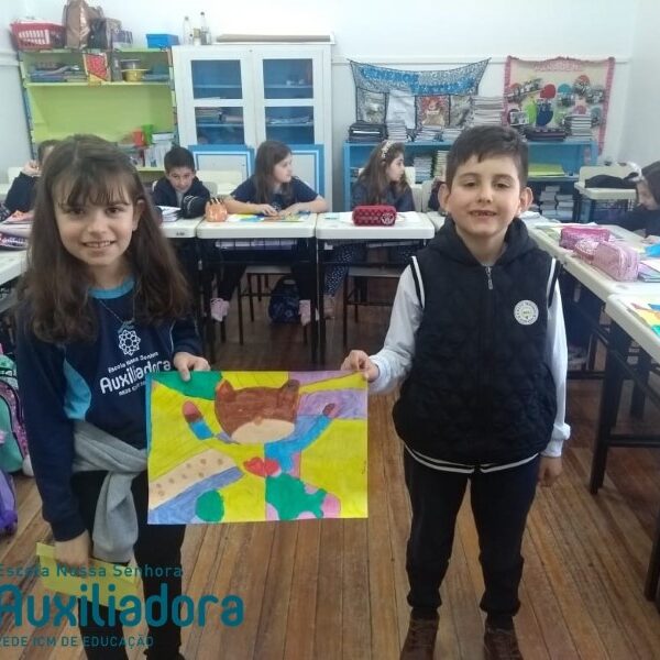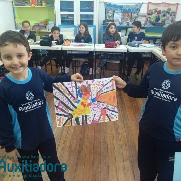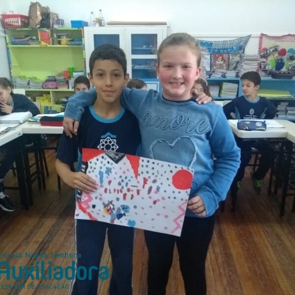Com o coração repleto de carinho e amizade os alunos do 3º ano 31 retornaram as aulas e reencontraram os amigos. Para marcar esse retorno realizaram uma atividade de leitura de imagens a partir das obras de Romero Britto e entregaram juntamente com uma carta ao seu amigo secreto.