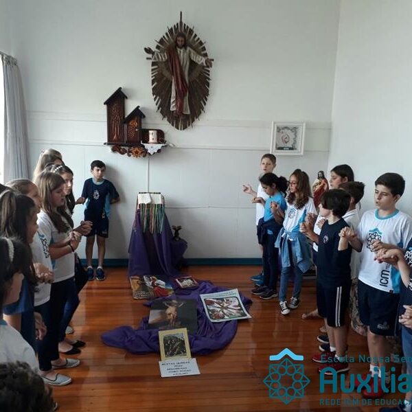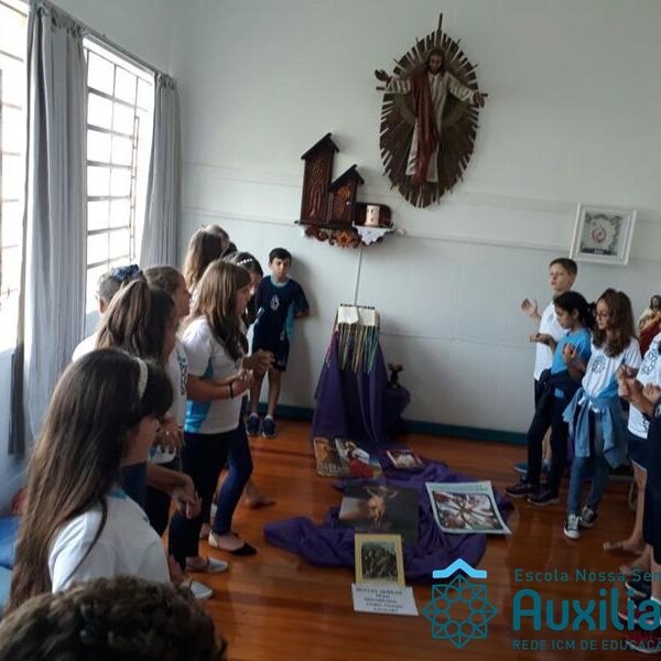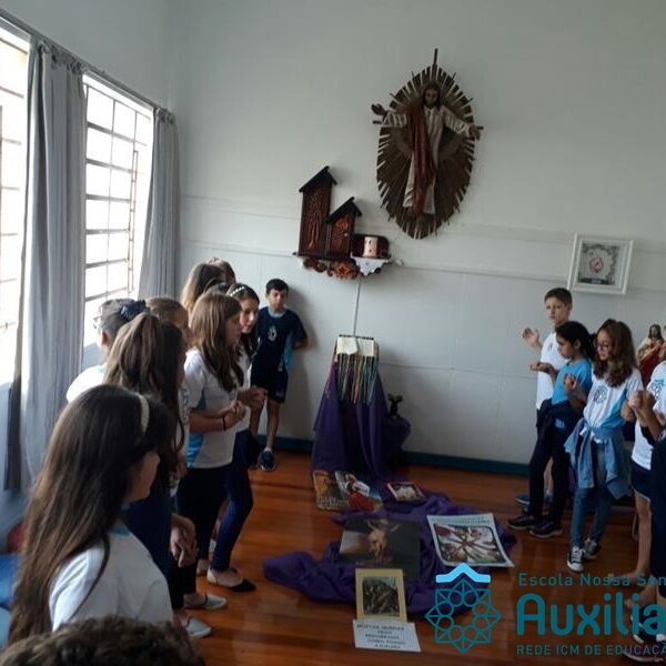 “Senhor Ressuscitado, entrai e permanecei em nossas casas”. Durante todo o Tempo Quaresmal, a Comunidade Escolar foi envolvida com atividades preparativas para a Páscoa. Os alunos foram motivados para renovação do “encontro com Cristo vivo na sua Palavra” através de orações, meditações e o amor ao próximo. Mais uma vez a espiritualidade deu ênfase nos corredores e em todo o ambiente escolar, despertando assim, o verdadeiro sentido da Páscoa. Durante 15 dias realizamos a via-sacra (1 estação por dia) meditando rezando sobre o sofrimento de jesus e da humanidade, tendo presente a Campanha da Fraternidade/2018 com o lema – “Somos todos irmãos”. Por fim, uma Semana Santa plena de significados com momentos celebrativos da Páscoa juntos, professores e alunos dos turnos da manhã e da tarde participando com muito amor, disposição e muita fé da maior festa da Cristandade. A PÁSCOA da RESSURREIÇÃO DE JESUS com apresentações no auditório da Escola. Veja os momentos das celebrações e apresentações Frederico Westphalen, 06 de abril de 2018. Equipe do SPE – Serviço da Pastoral Escolar.