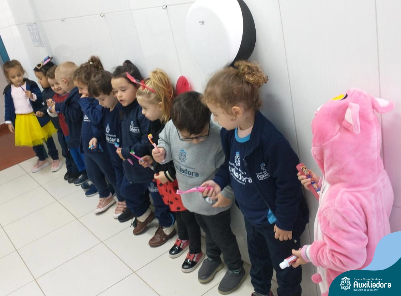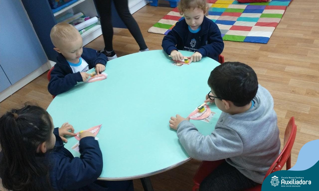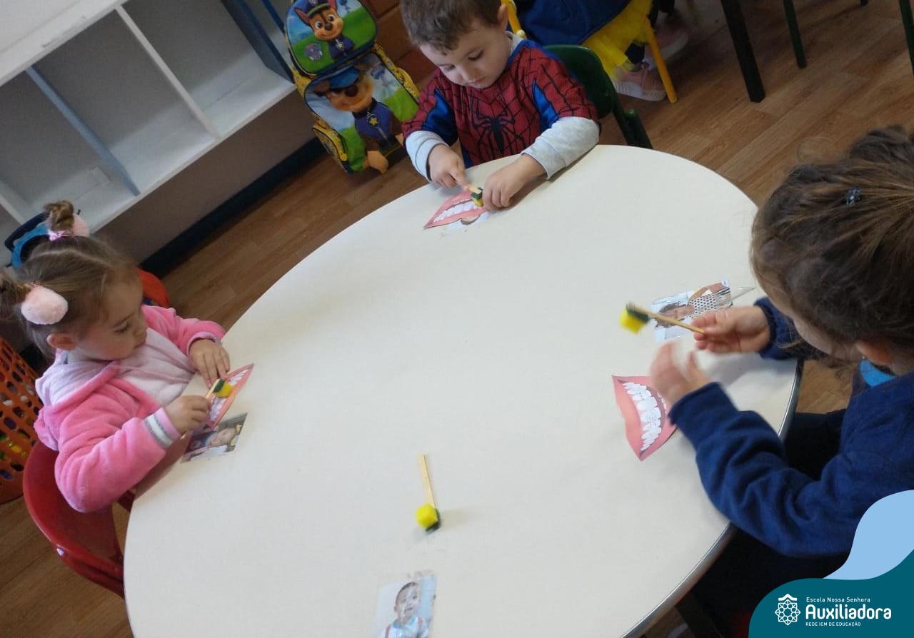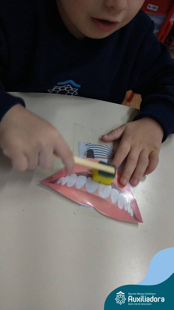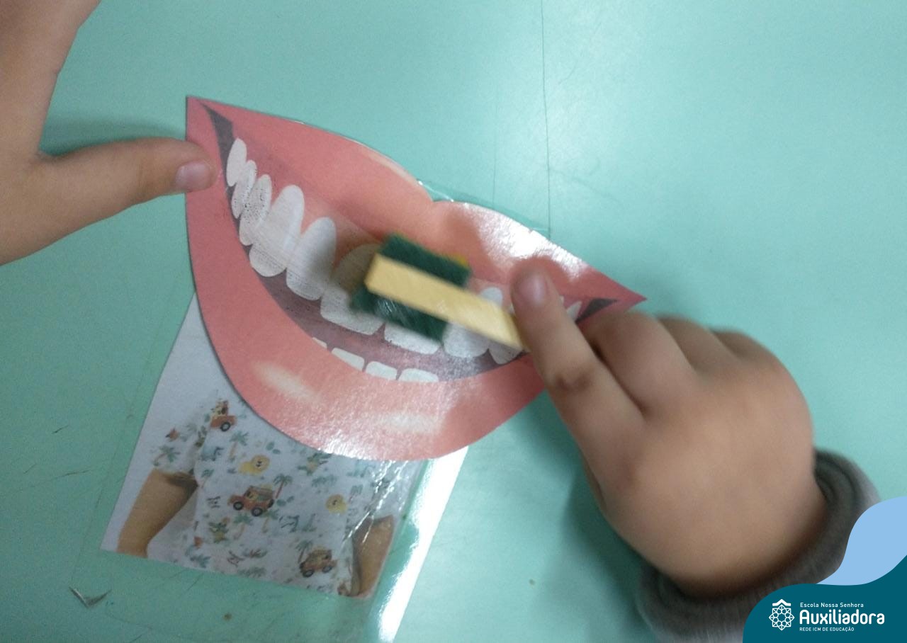A partir da história “O Jacaré com dor de dente” o Maternal II C aprendeu de uma maneira bem divertida a importância de escovar e cuidar dos dentinhos.