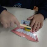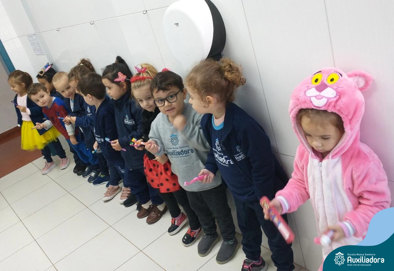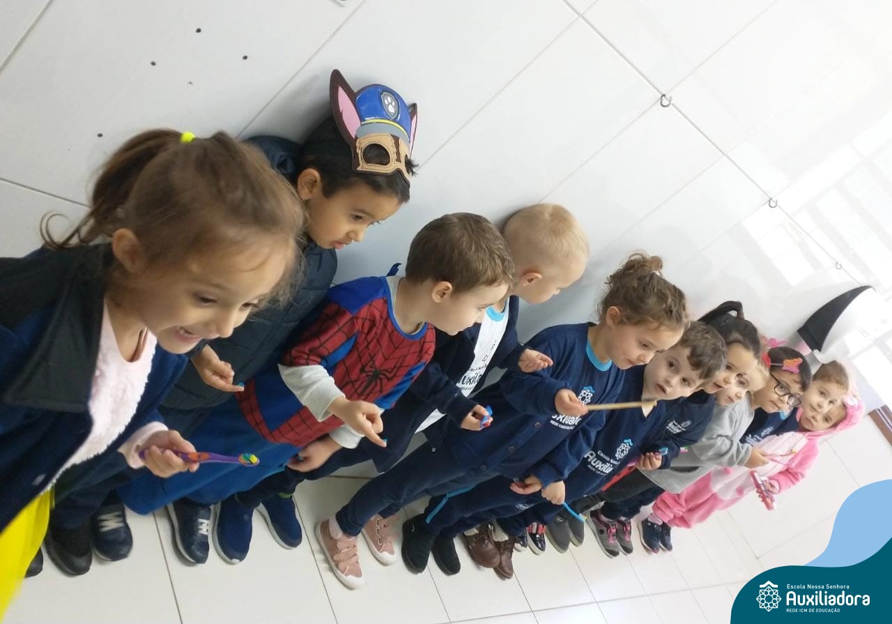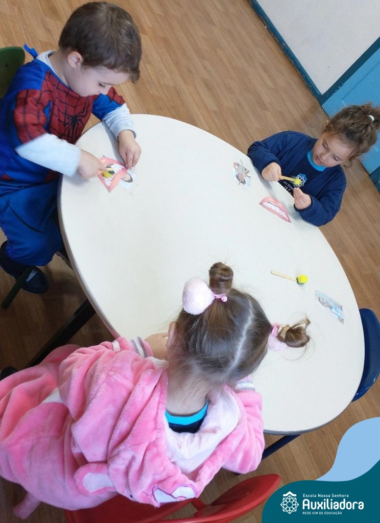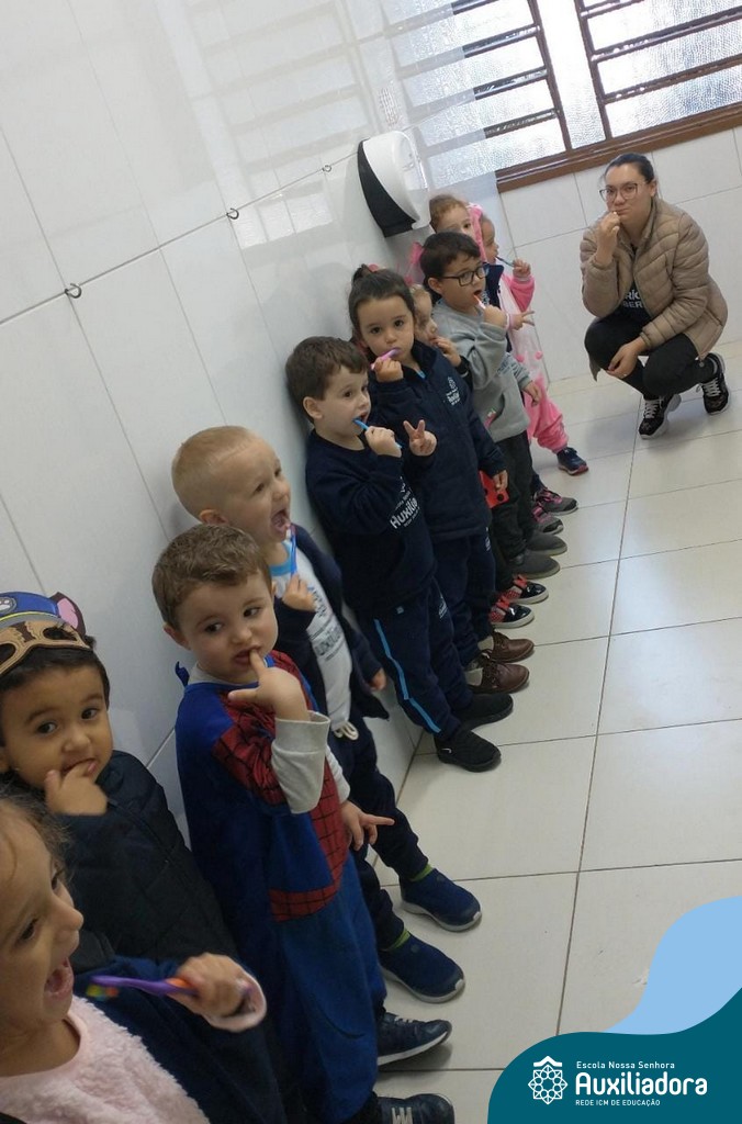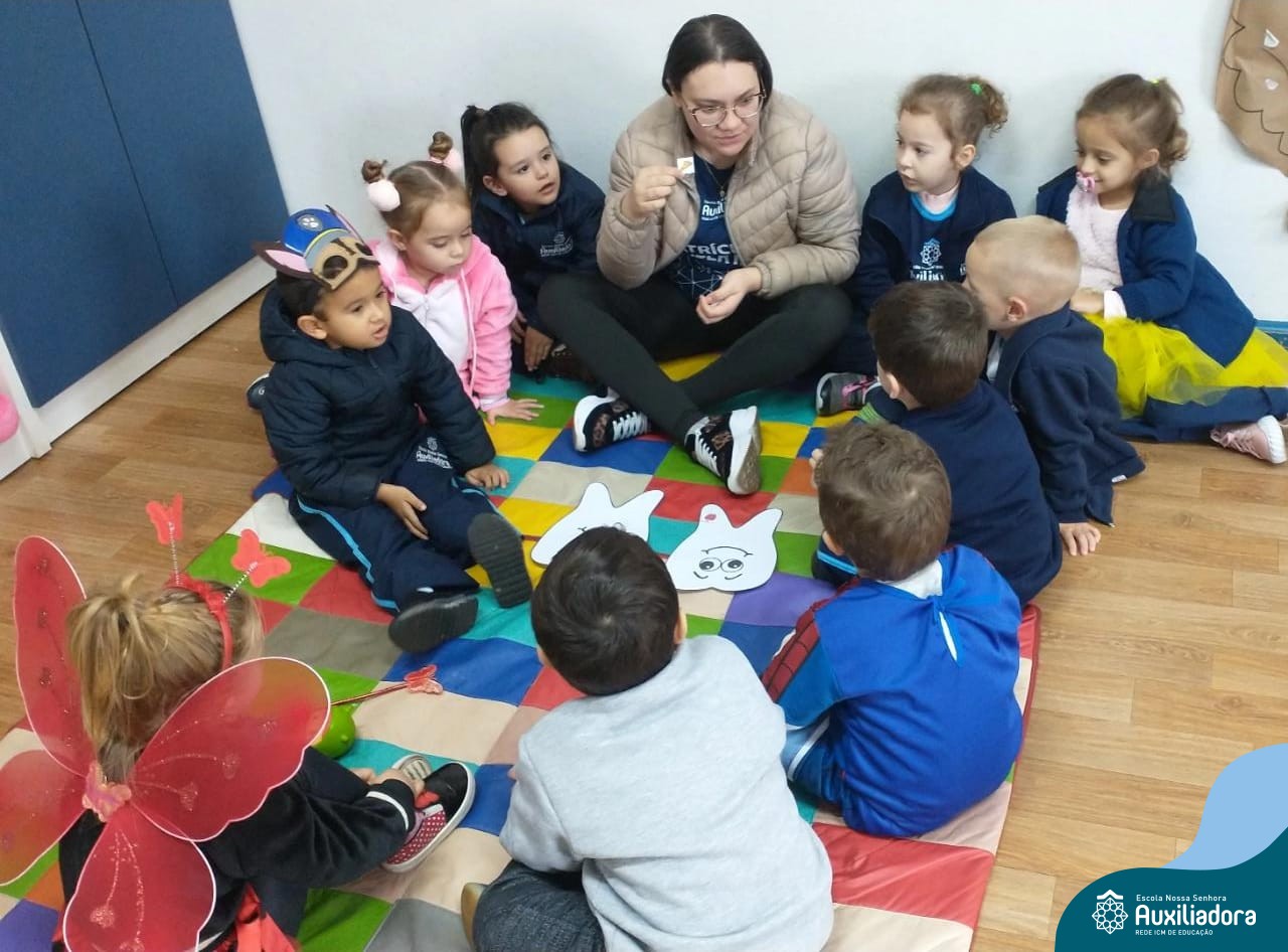 A partir da história “O Jacaré com dor de dente” o Maternal II C aprendeu de uma maneira bem divertida a importância de escovar e cuidar dos dentinhos.