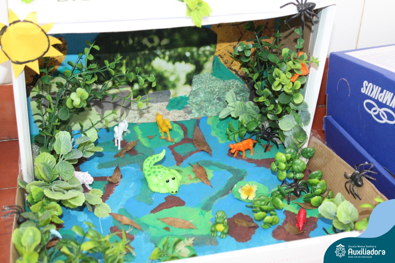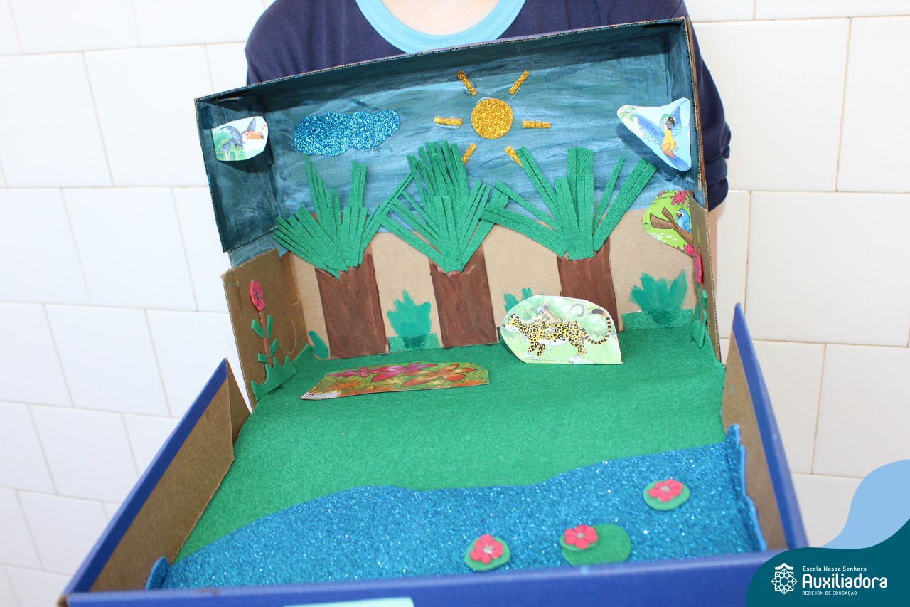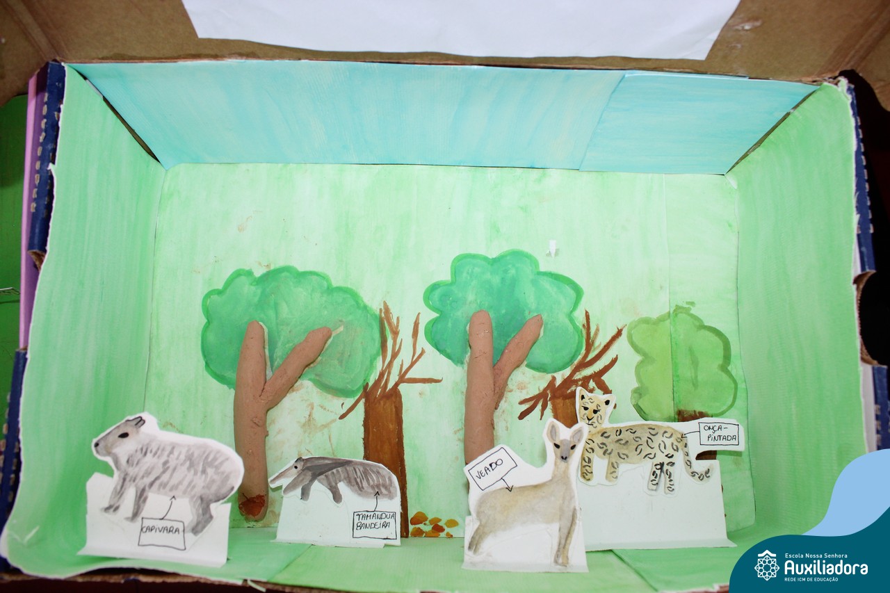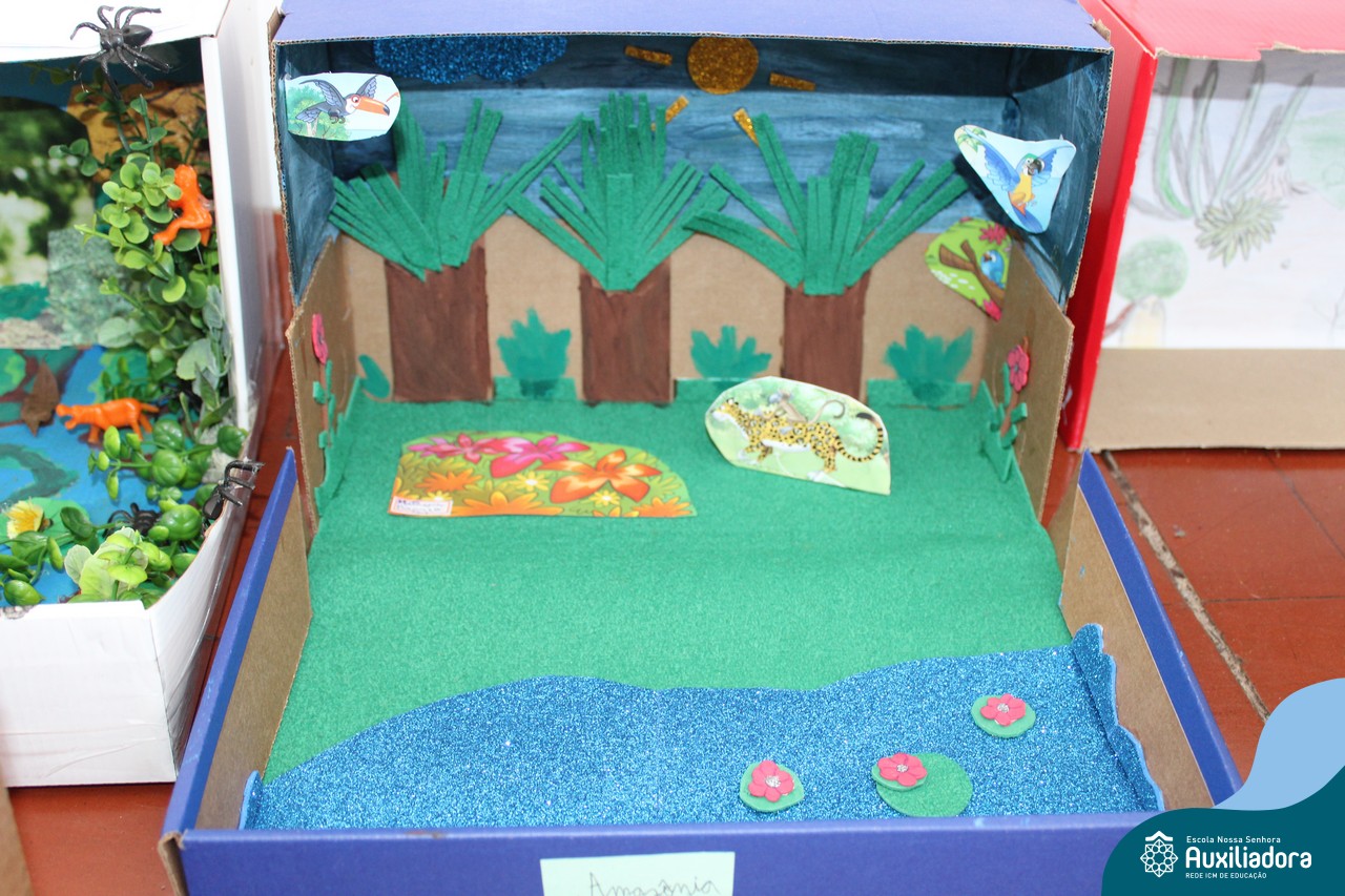 Depois de estudarmos os Biomas Brasileiros os alunos das turmas do 5º ano foram desafiados a reproduzir um projeto de bioma em uma caixa, representá-lo usando seus conhecimentos e sua criatividade.