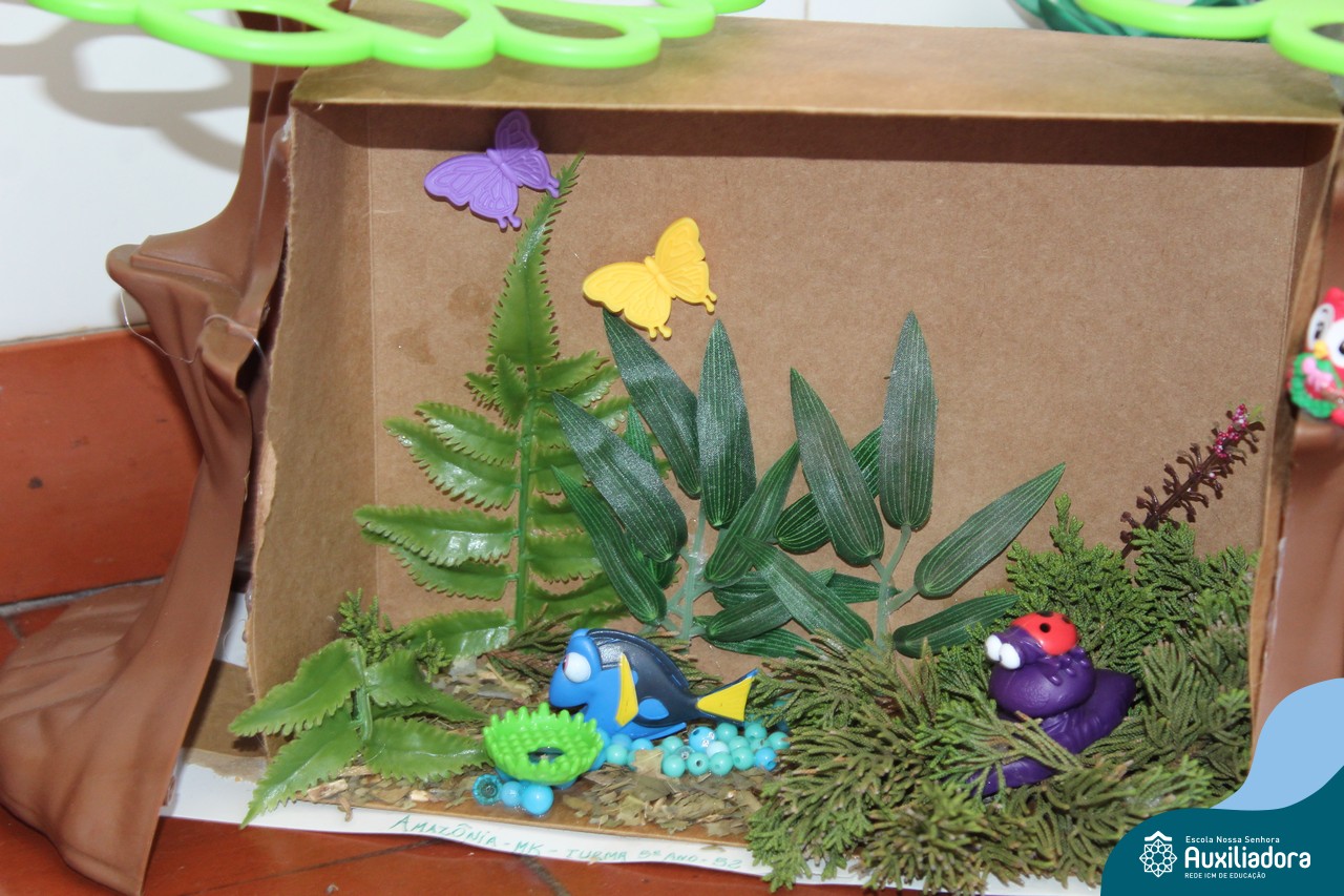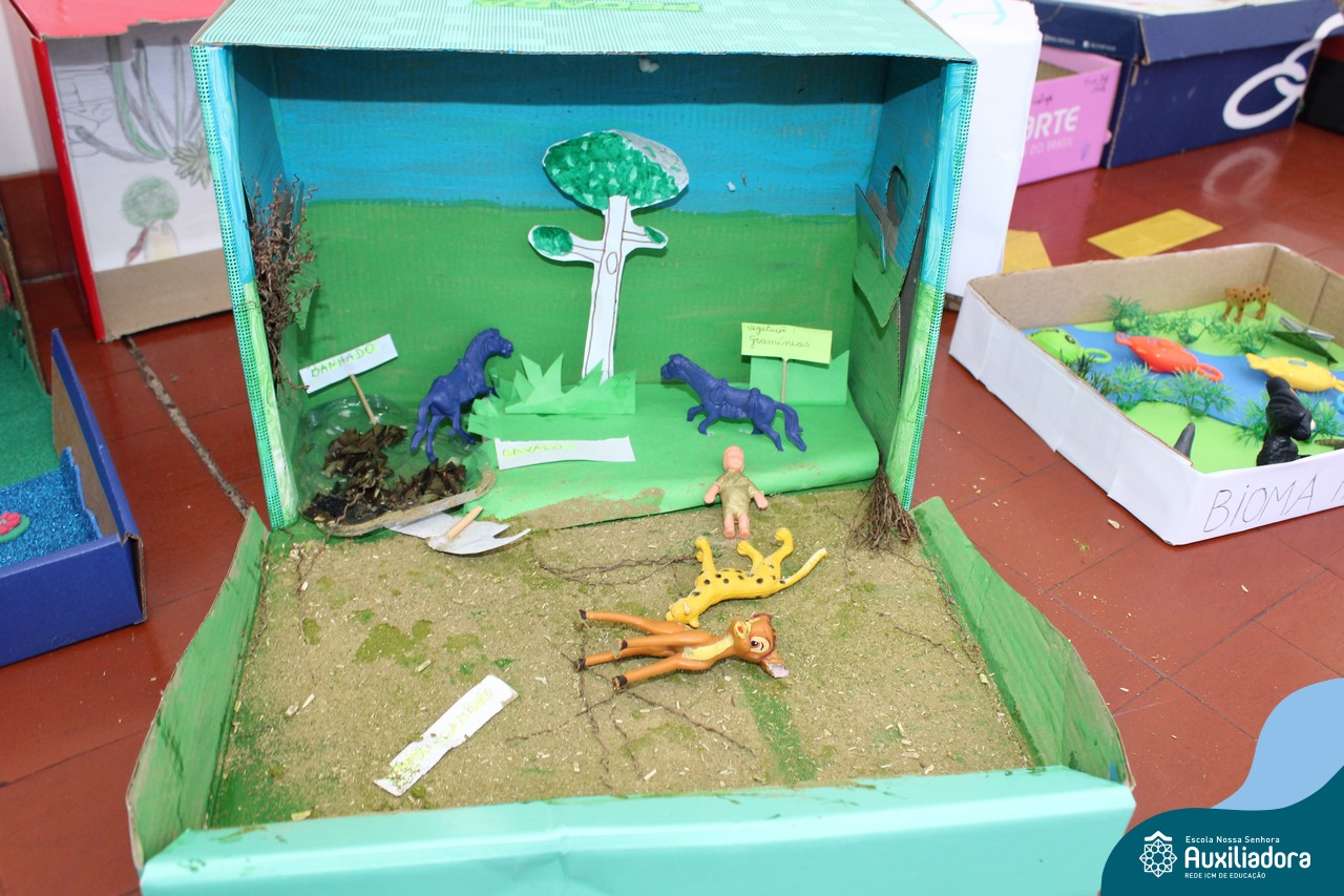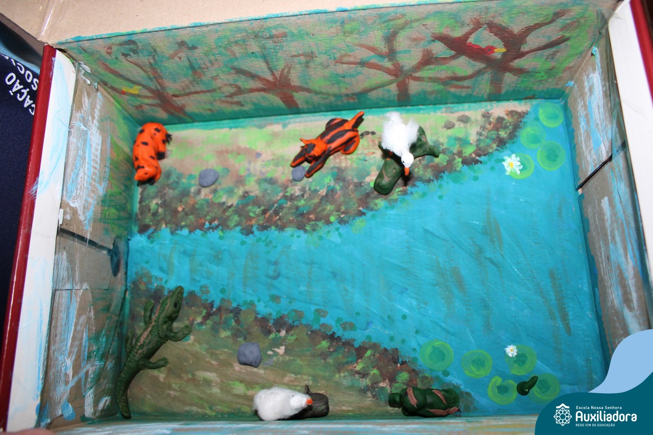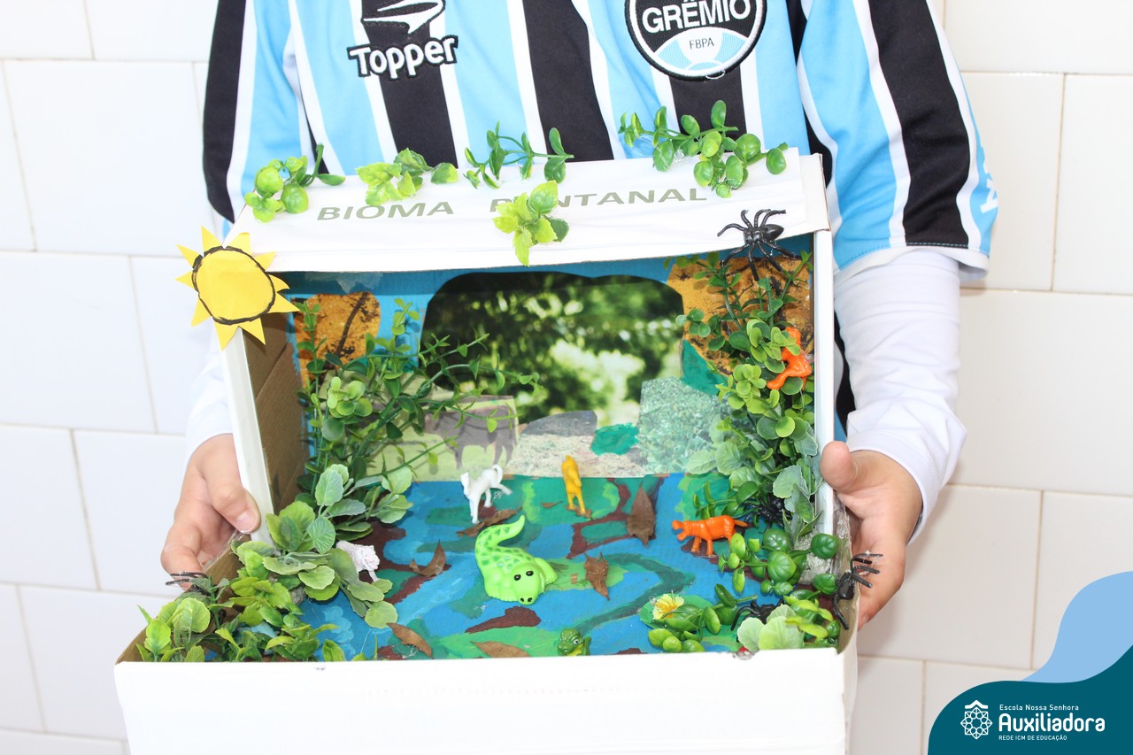 Depois de estudarmos os Biomas Brasileiros os alunos das turmas do 5º ano foram desafiados a reproduzir um projeto de bioma em uma caixa, representá-lo usando seus conhecimentos e sua criatividade.