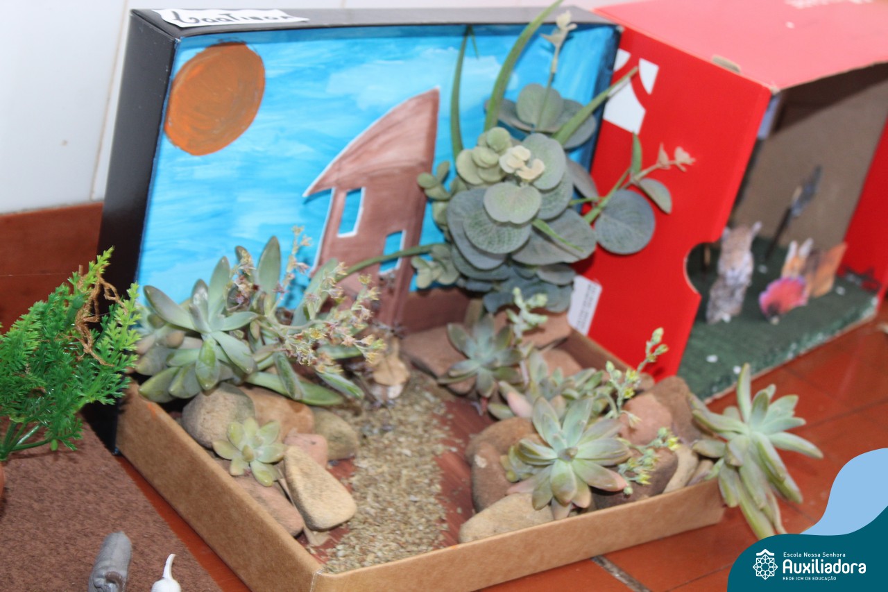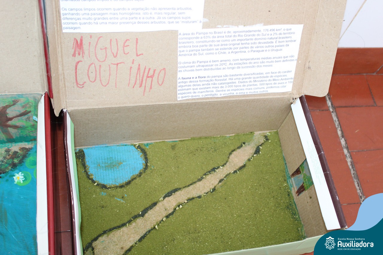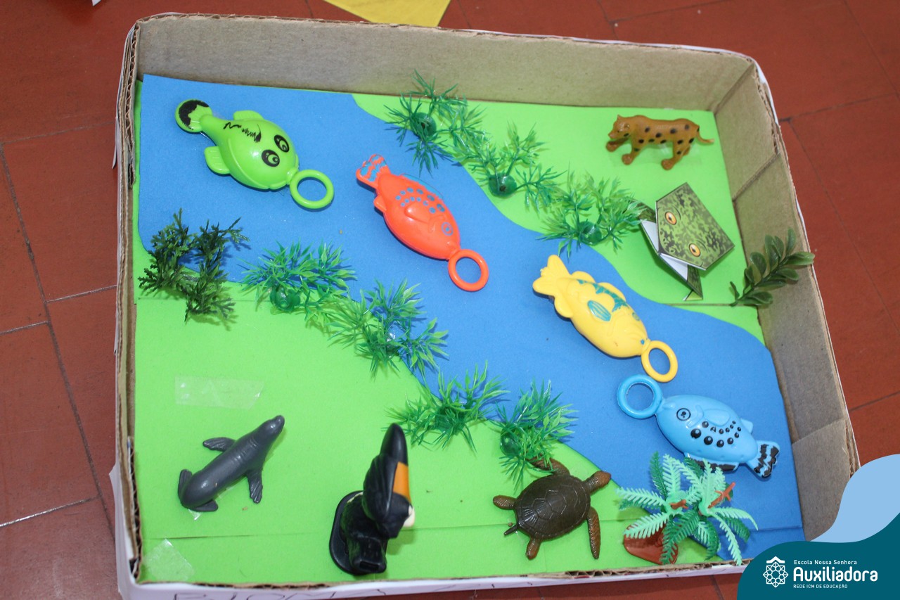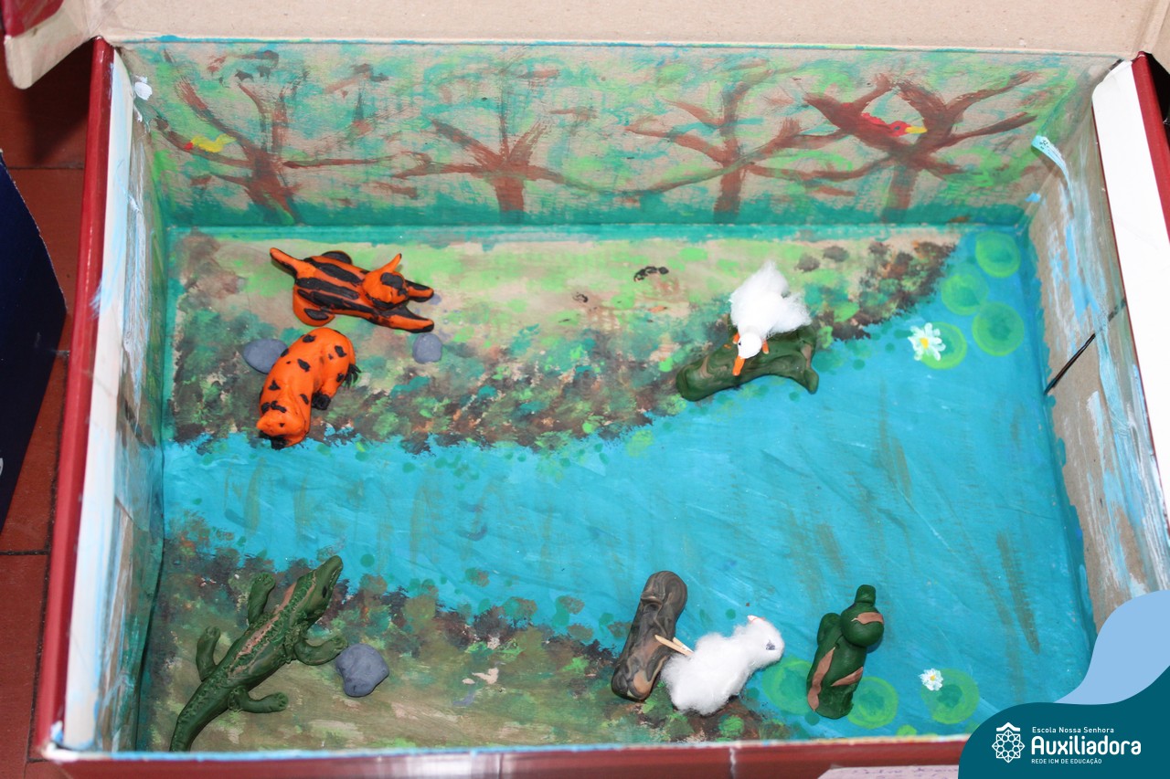 Depois de estudarmos os Biomas Brasileiros os alunos das turmas do 5º ano foram desafiados a reproduzir um projeto de bioma em uma caixa, representá-lo usando seus conhecimentos e sua criatividade.