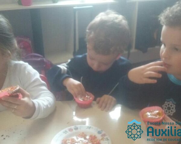 Através do Projeto Páscoa a galerinha das turmas Extracurricular colocaram a mão na massa e fizeram capcake de cenoura!!! A atividade desenvolvida contou com a participação da Nutricionista Danila Luza, explicando os benefício da alimentação saudável!!! Ficou uma delícia! Profe Ana Paula Dalla Lana Profe Gabriela Ulbrik