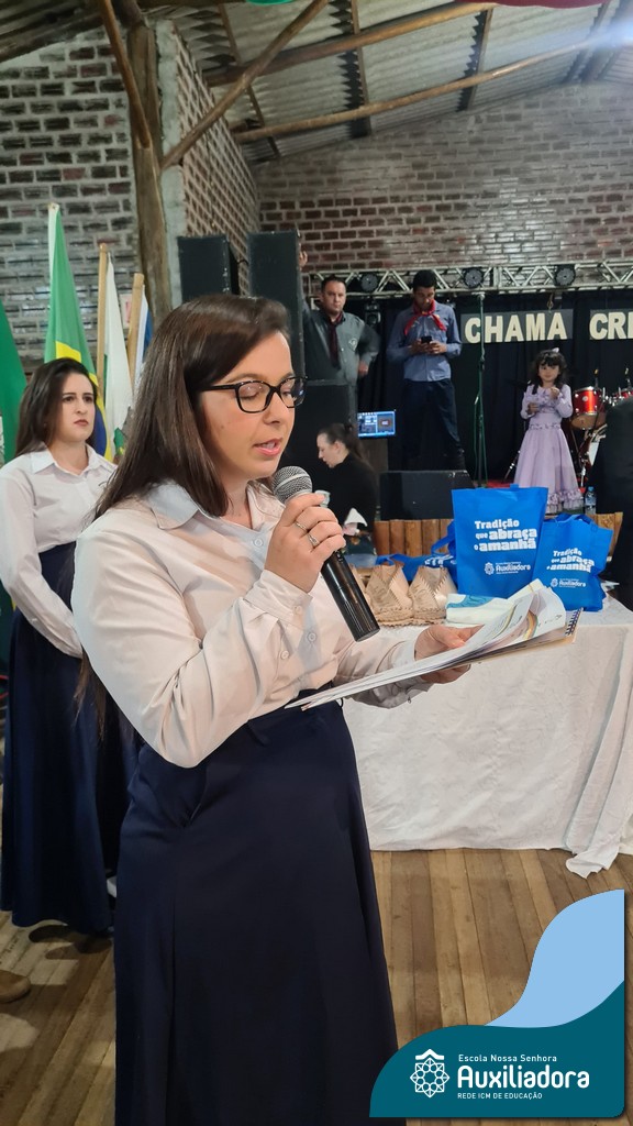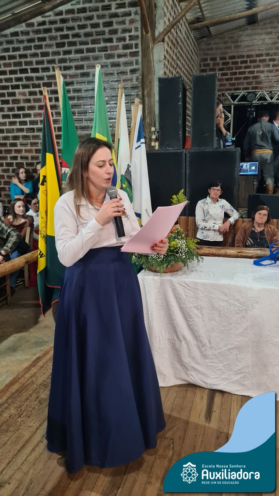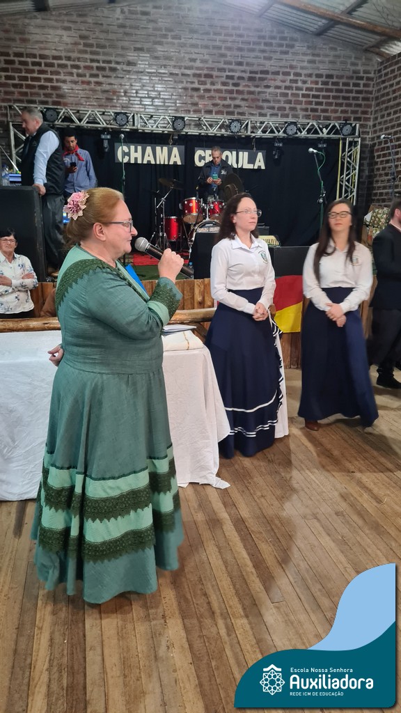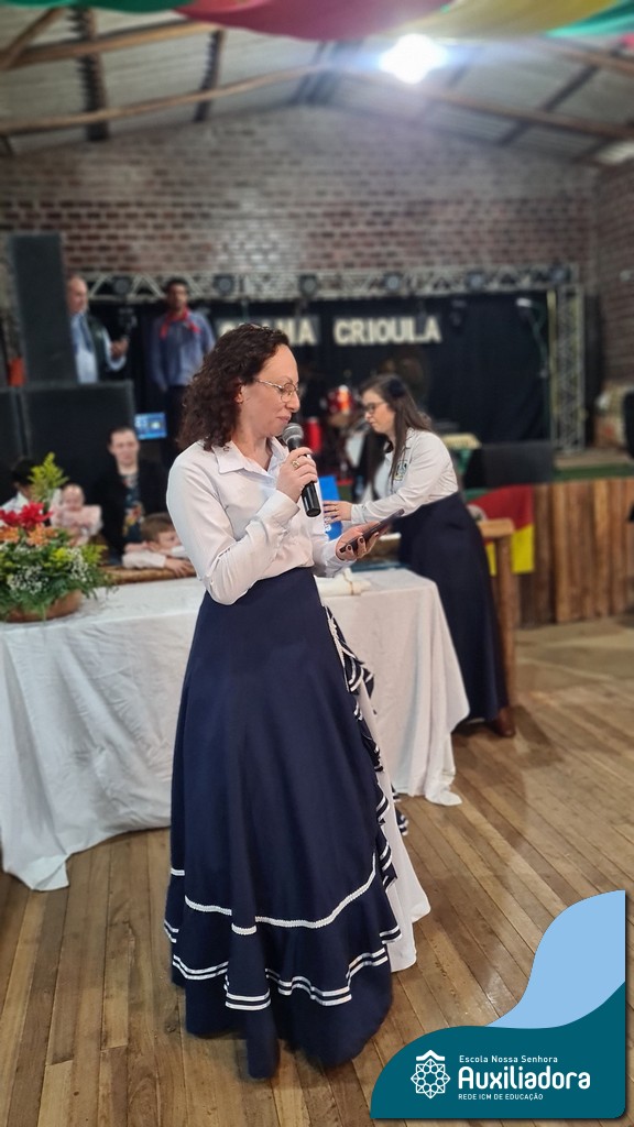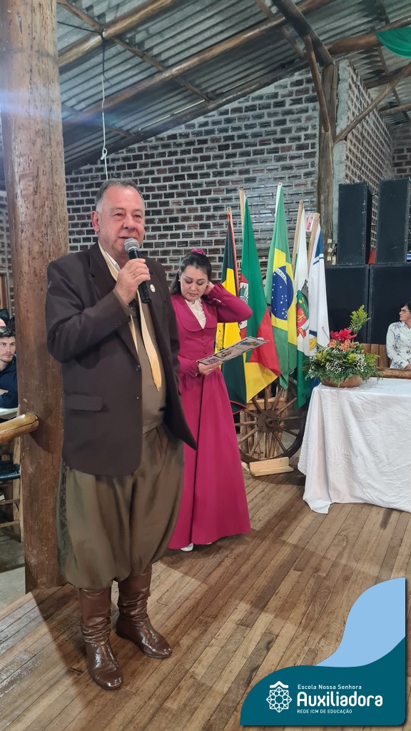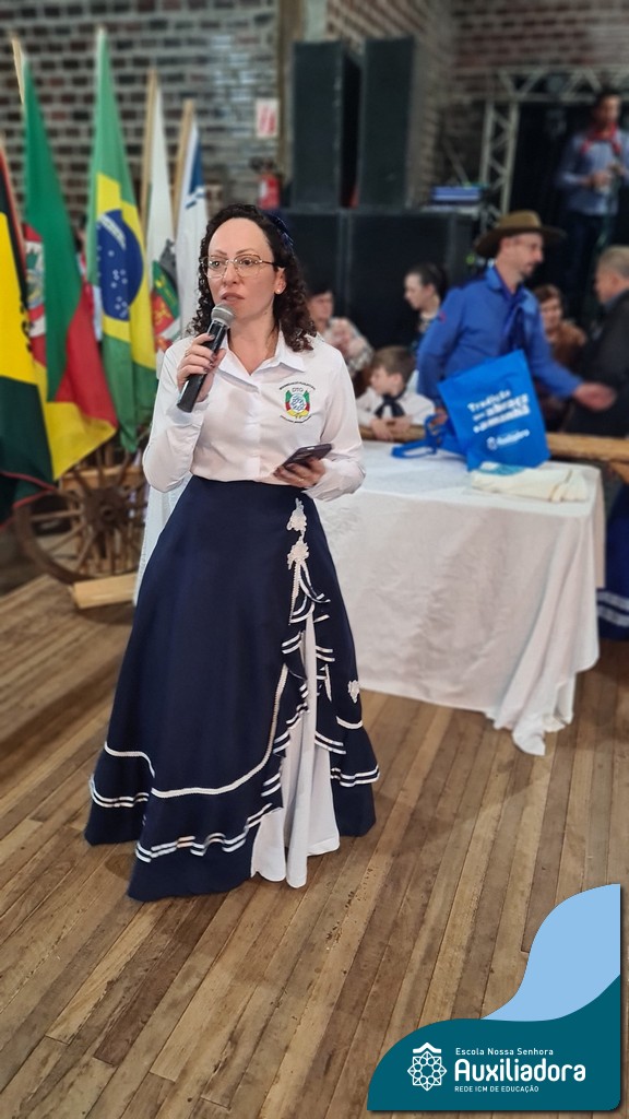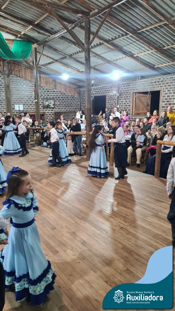 O Jantar Fandango do último 12 de julho, realizado no Piquete Alto Alegre, celebrou com emoção e orgulho a apresentação oficial do DTG Sentinela da Auxiliadora. O evento reuniu famílias, tradicionalistas e autoridades em uma noite de reencontro com as raízes. Marcaram presença o Patrão do Piquete, Silvio Cesar Rossatto; o Conselheiro do MTG, Luís Paulo Franken; a Coordenadora da 28ª RT, Mirtes Terezinha Quadros; e a diretora da Escola Nossa Senhora Auxiliadora, Luciane Bonfanti, além de professores, pais e representantes da comunidade escolar.