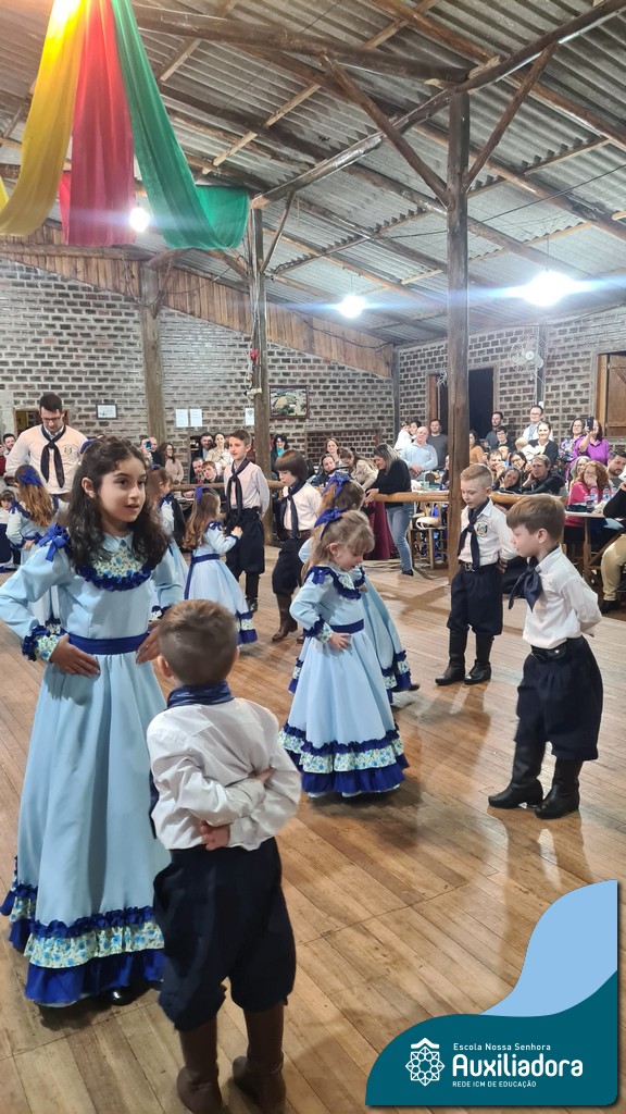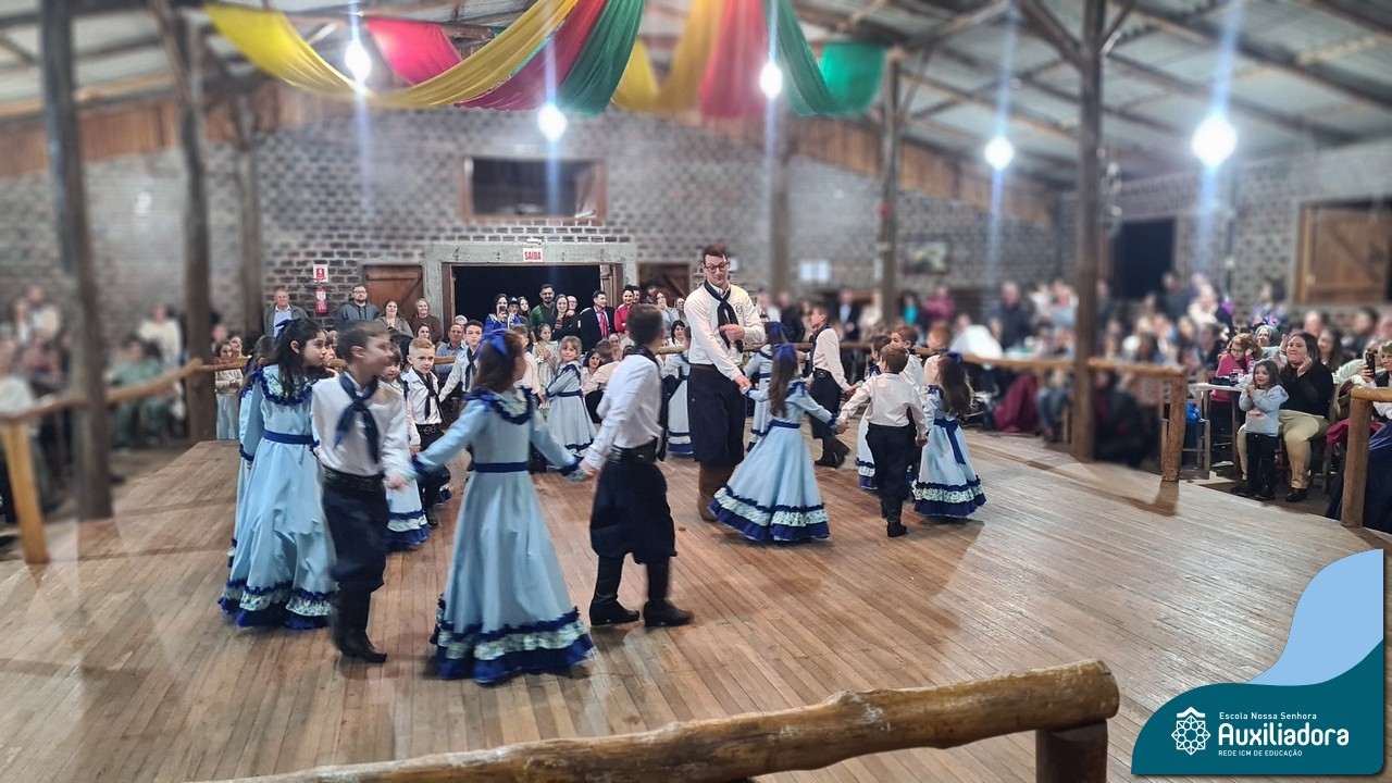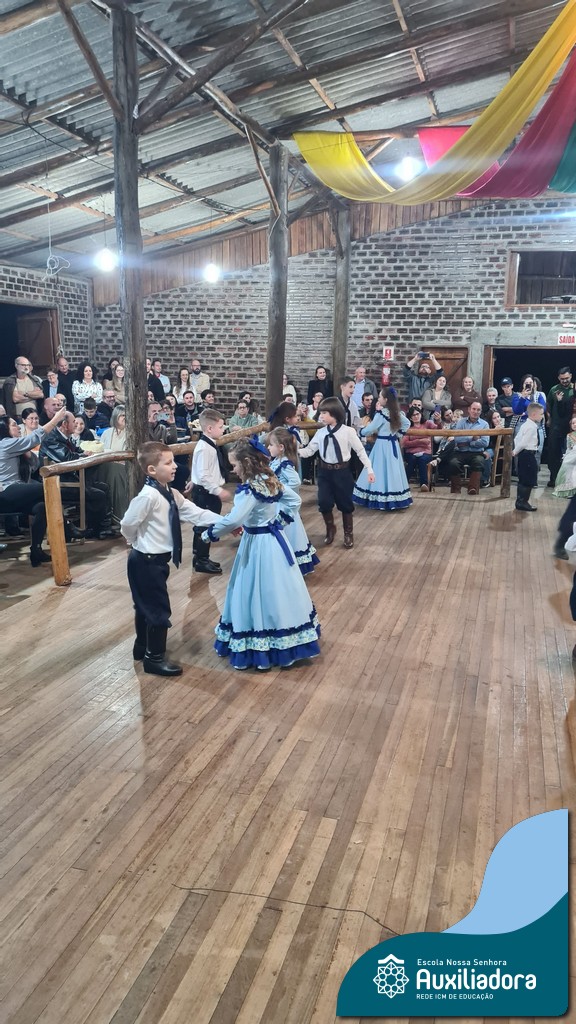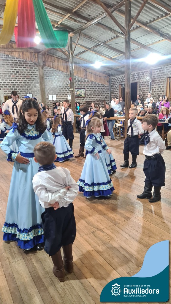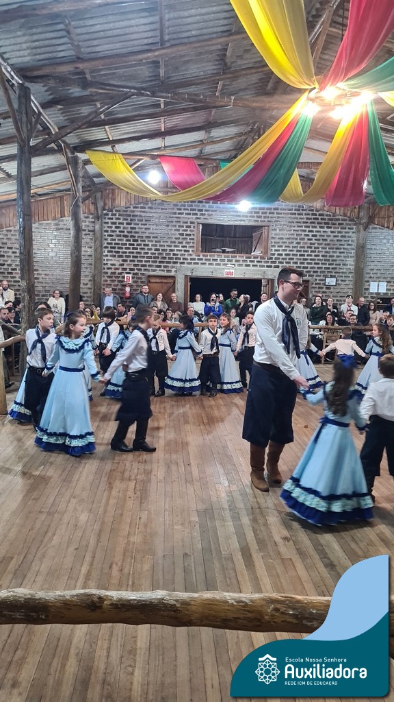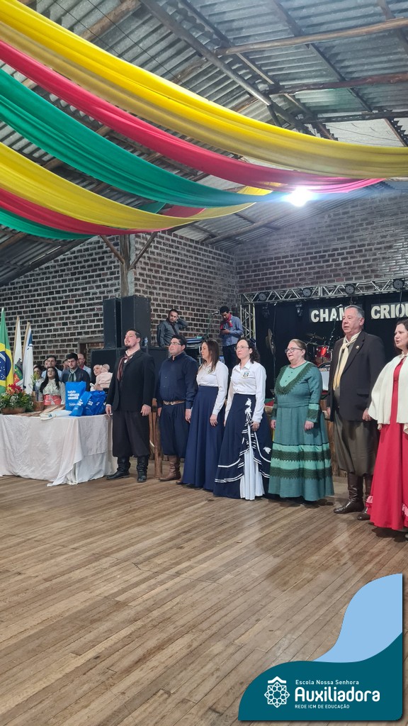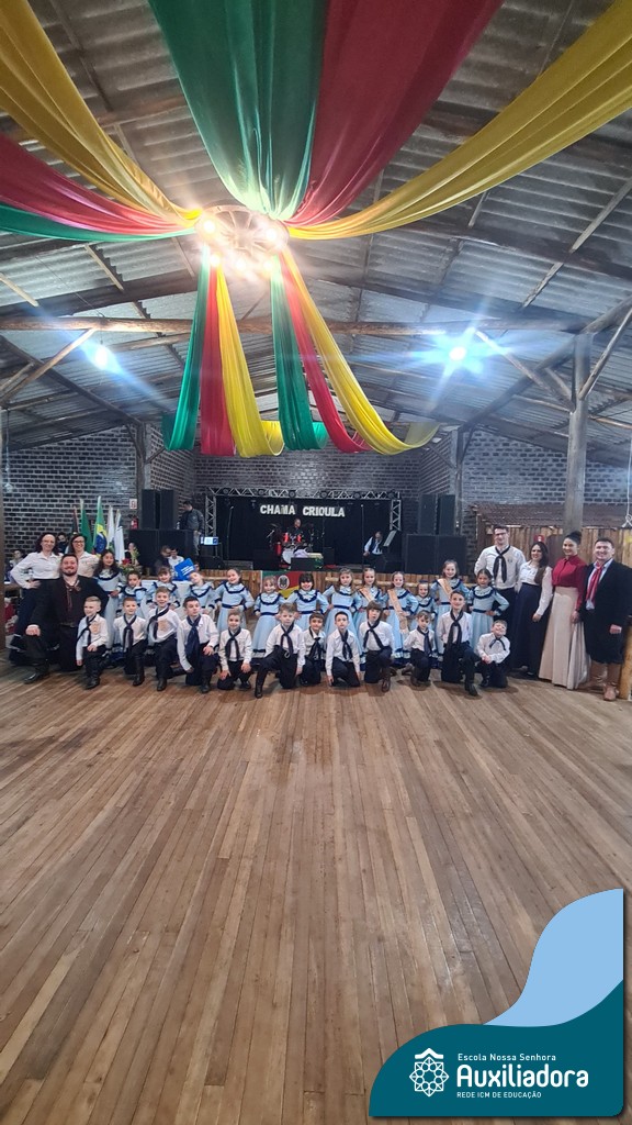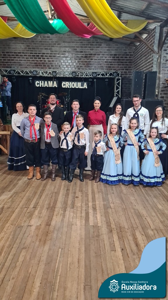 A noite foi marcada ainda pela pré-estreia da Invernada Pré-Mirim, coordenada pelo professor Ivan Augusto Rohrs, com apoio dos professores Edinéia Samua Piovesan, Bruno Ficanha Basso e Andreza Alves Martins. As crianças apresentaram as danças Caranguejo, Pezinho e Polonésia, encerrando com a tradicional Polonese junto aos pais. Um verdadeiro espetáculo de tradição, afeto e pertencimento, mostrando que o amor pela cultura gaúcha floresce desde cedo.