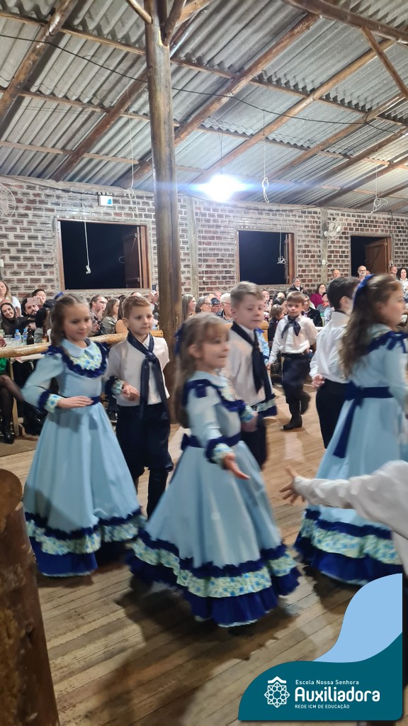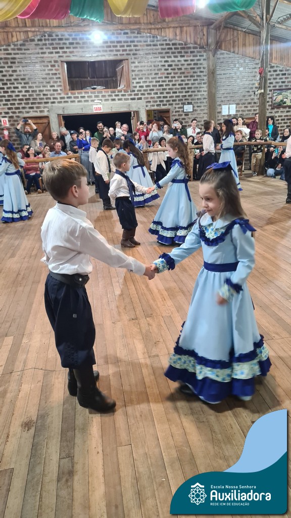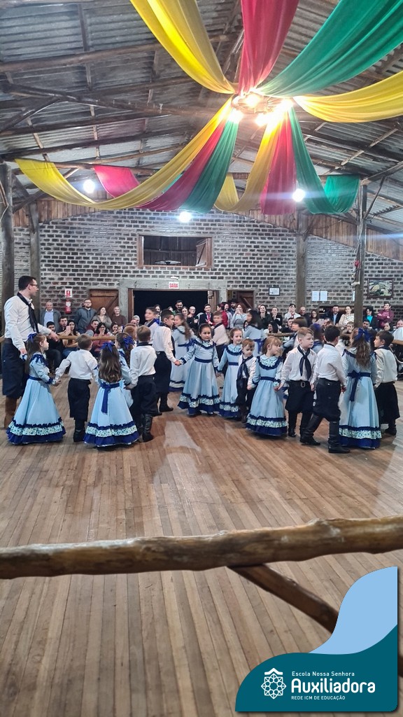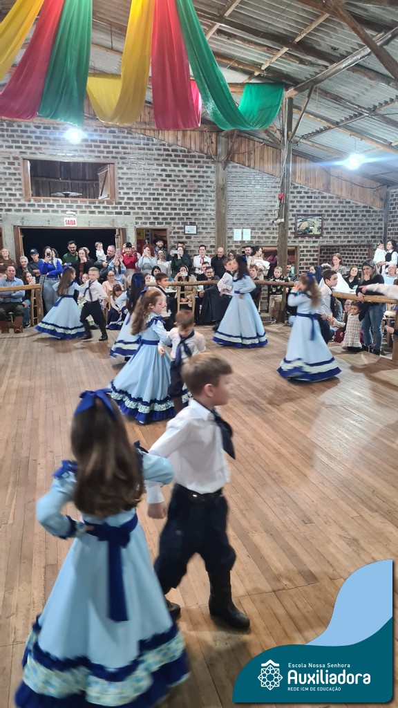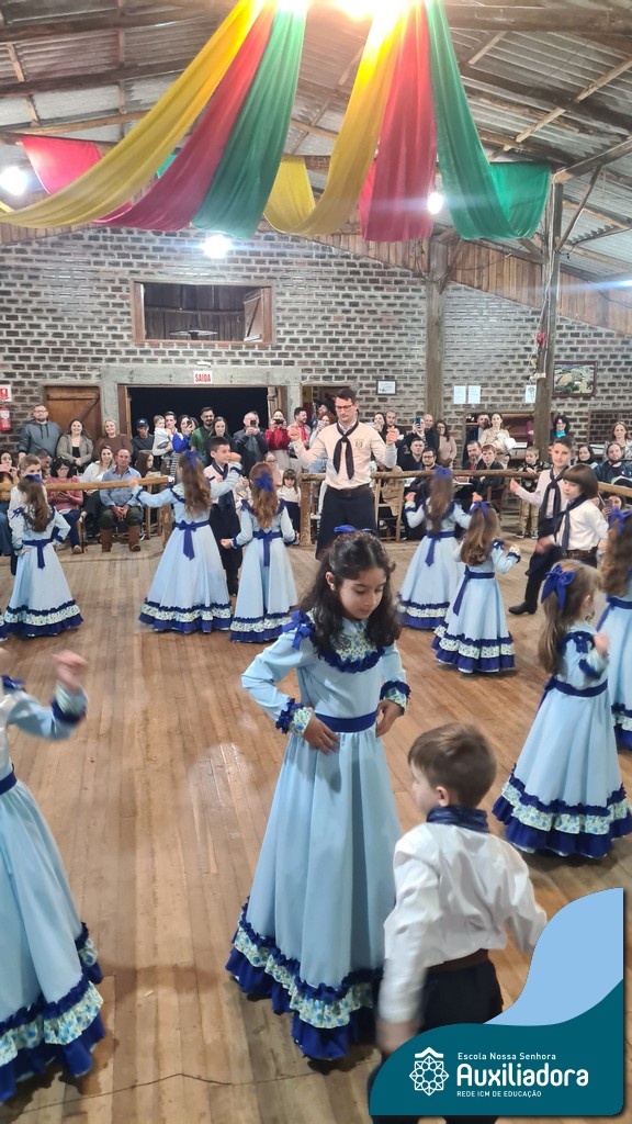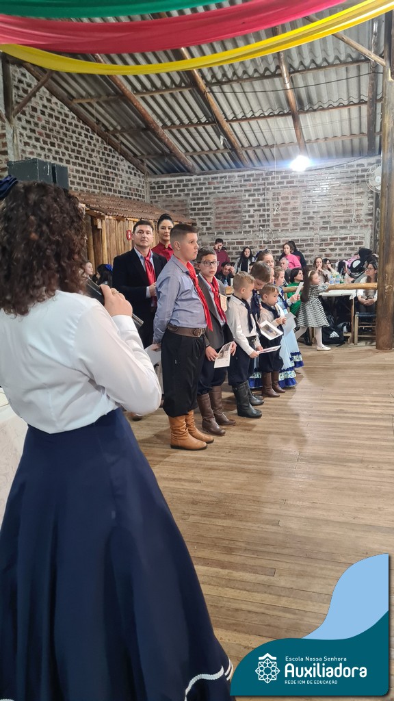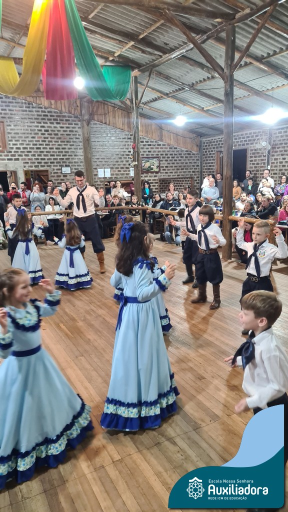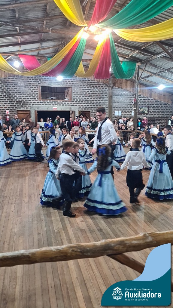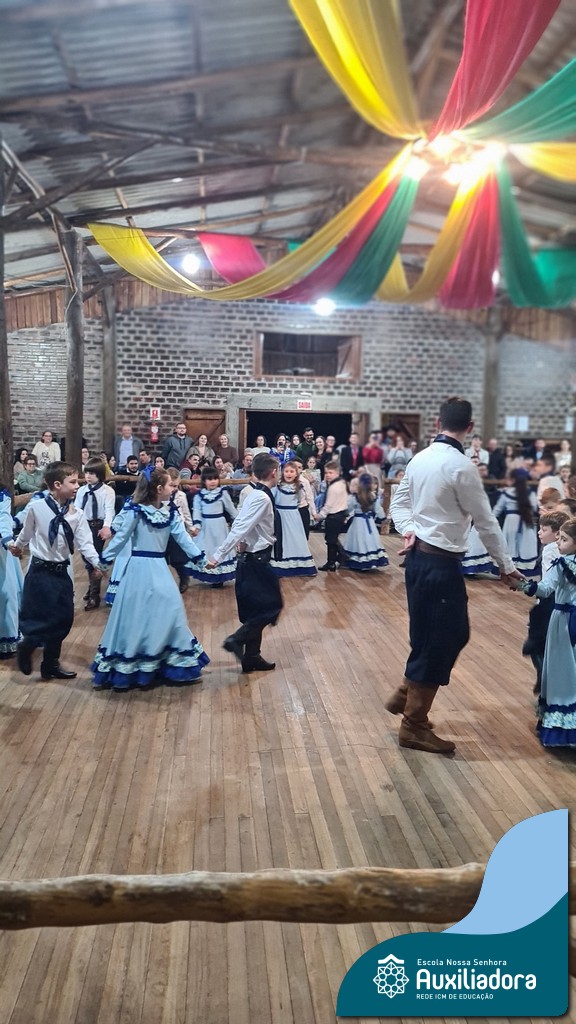 A noite foi marcada ainda pela pré-estreia da Invernada Pré-Mirim, coordenada pelo professor Ivan Augusto Rohrs, com apoio dos professores Edinéia Samua Piovesan, Bruno Ficanha Basso e Andreza Alves Martins. As crianças apresentaram as danças Caranguejo, Pezinho e Polonésia, encerrando com a tradicional Polonese junto aos pais. Um verdadeiro espetáculo de tradição, afeto e pertencimento, mostrando que o amor pela cultura gaúcha floresce desde cedo.