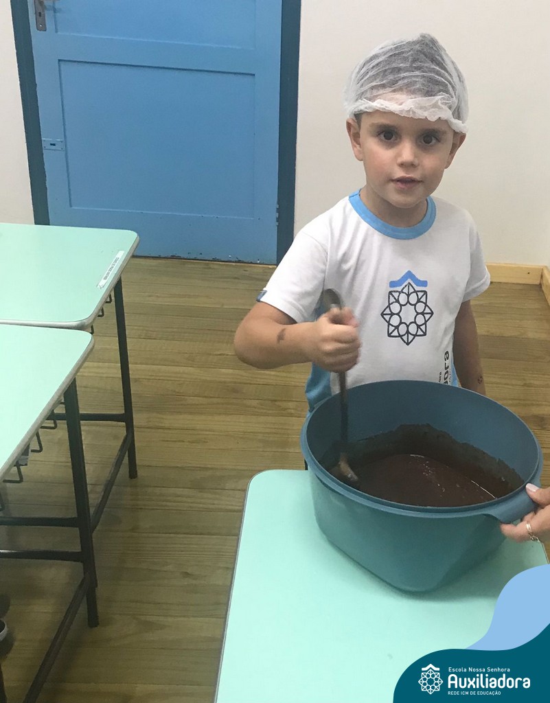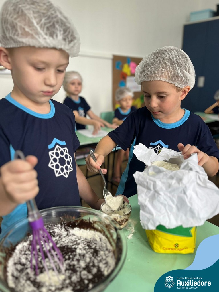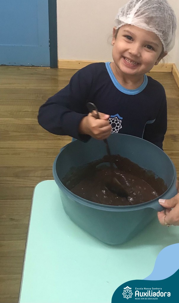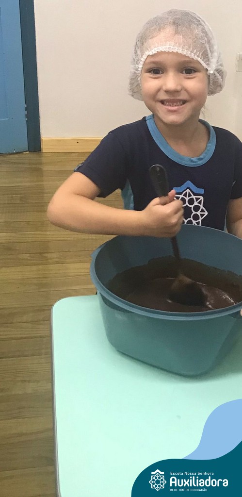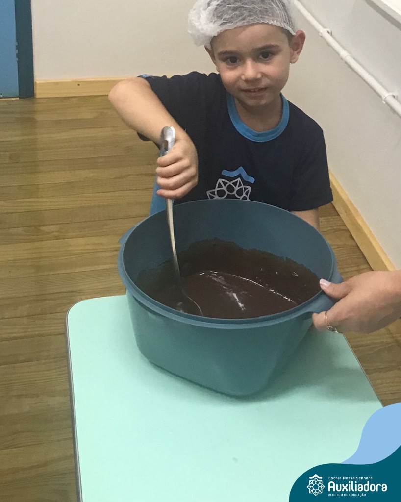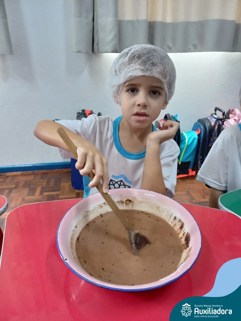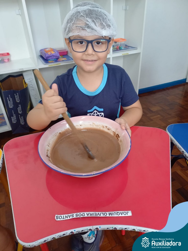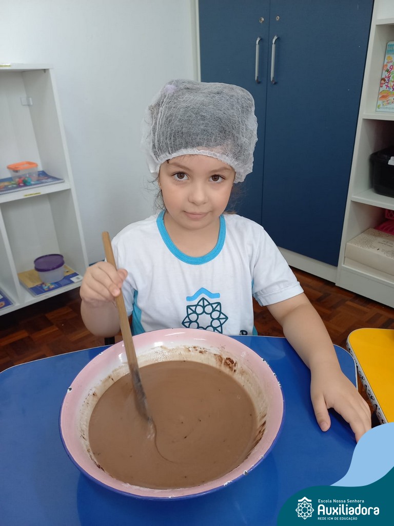 Em clima de Páscoa e confraternização, as crianças se envolveram em uma experiência de culinária muito significativa, fazendo um delicioso bolo de Cacau! Esta atividade não só ensina habilidades culinárias básicas, como também promove a criatividade e a colaboração. Realizaram a exploração sobre o Cacau, a separação e mistura dos ingredientes e, por fim o registro da receita em folha. Cada etapa foi uma oportunidade para aprender e se divertir juntos. Além disso, o resultado final foi um saboroso bolo, uma recompensa que todos puderam desfrutar em um lanche compartilhado, afinal Páscoa é partilha, amor e carinho uns com os outros.