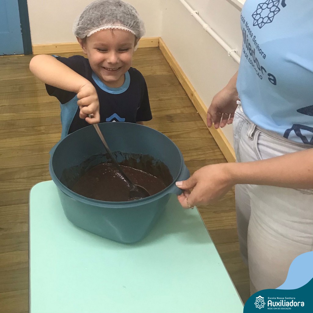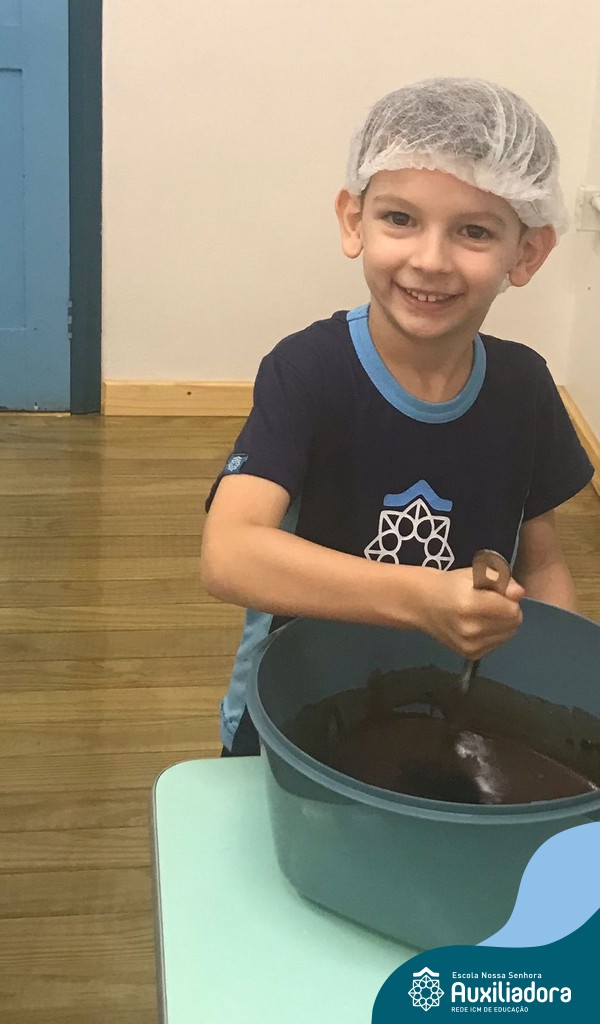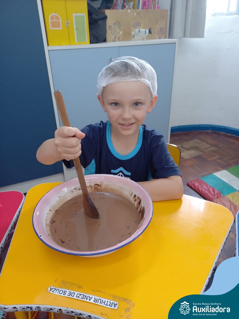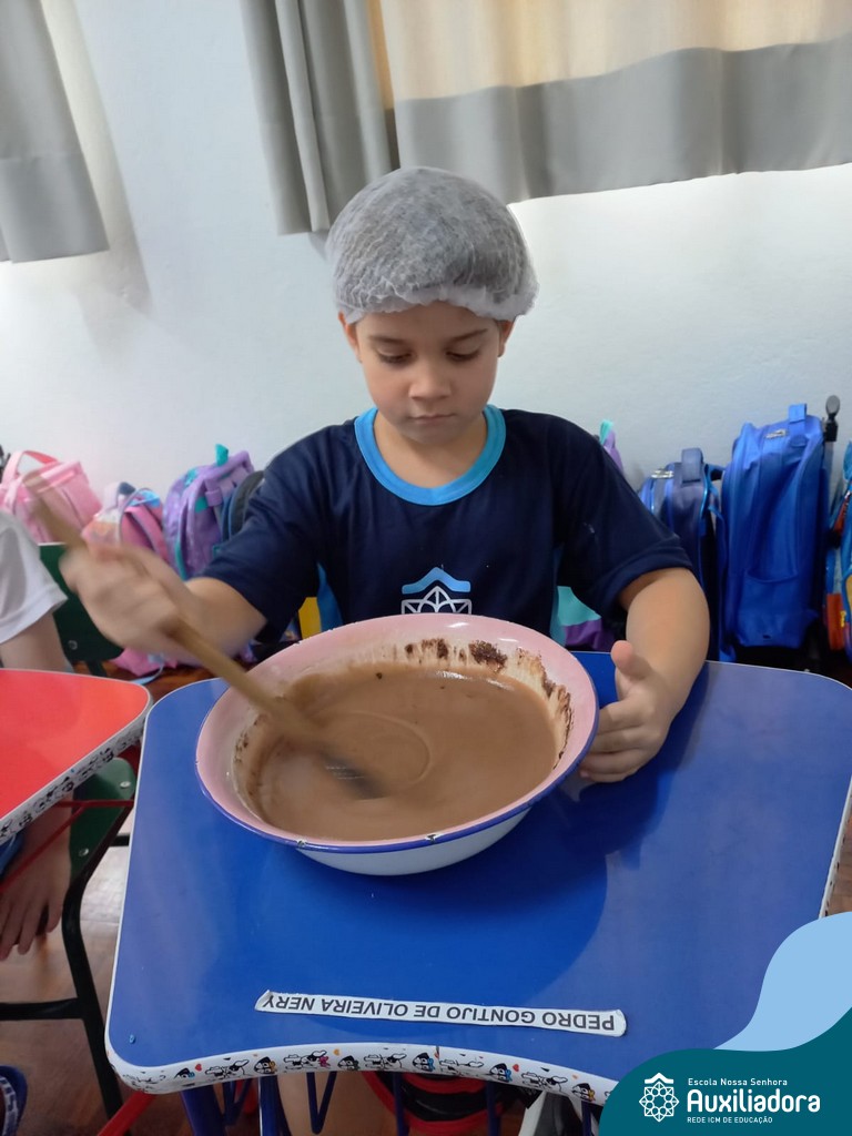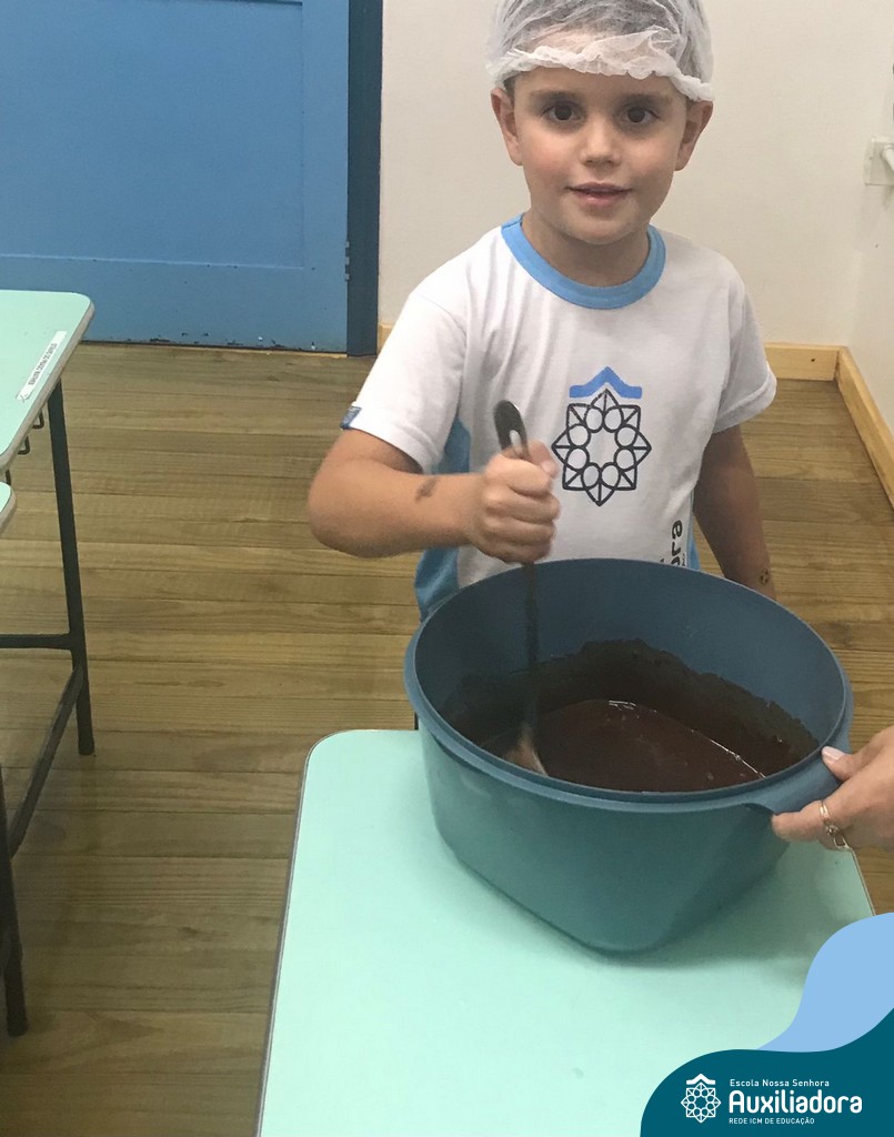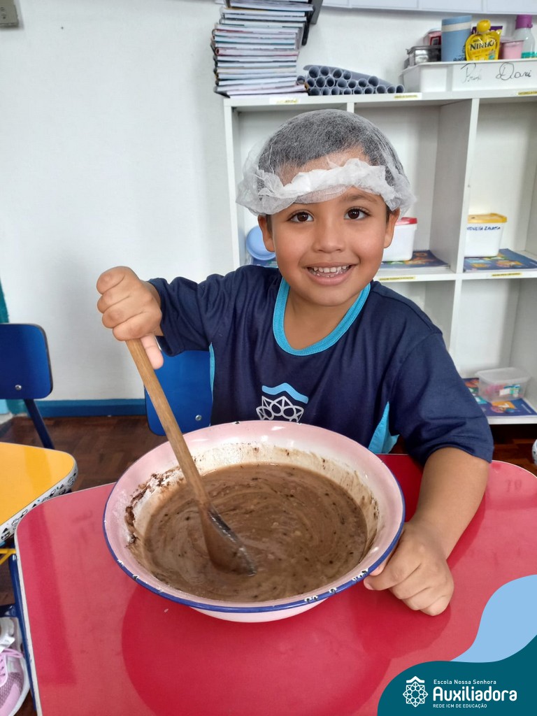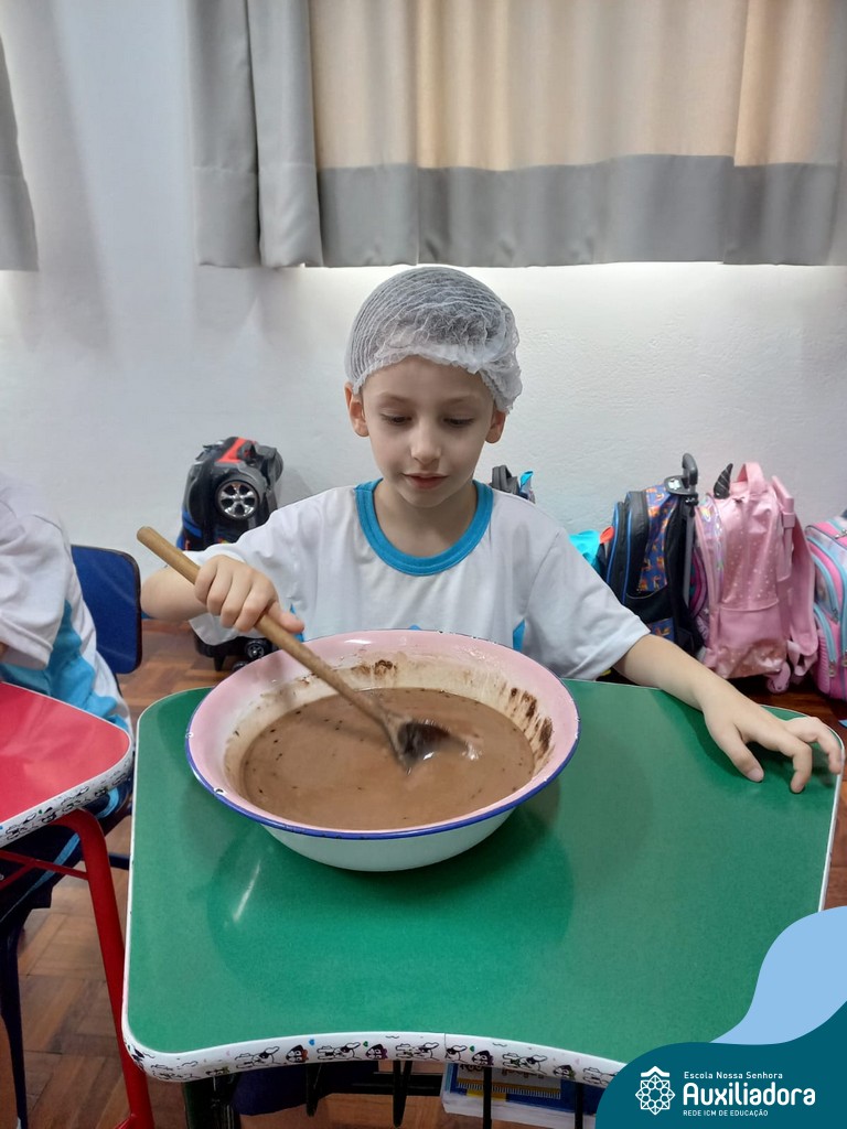 Em clima de Páscoa e confraternização, as crianças se envolveram em uma experiência de culinária muito significativa, fazendo um delicioso bolo de Cacau! Esta atividade não só ensina habilidades culinárias básicas, como também promove a criatividade e a colaboração. Realizaram a exploração sobre o Cacau, a separação e mistura dos ingredientes e, por fim o registro da receita em folha. Cada etapa foi uma oportunidade para aprender e se divertir juntos. Além disso, o resultado final foi um saboroso bolo, uma recompensa que todos puderam desfrutar em um lanche compartilhado, afinal Páscoa é partilha, amor e carinho uns com os outros.