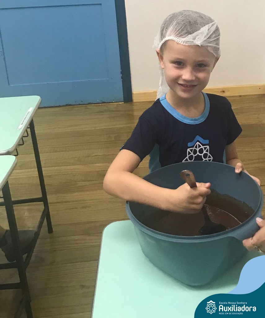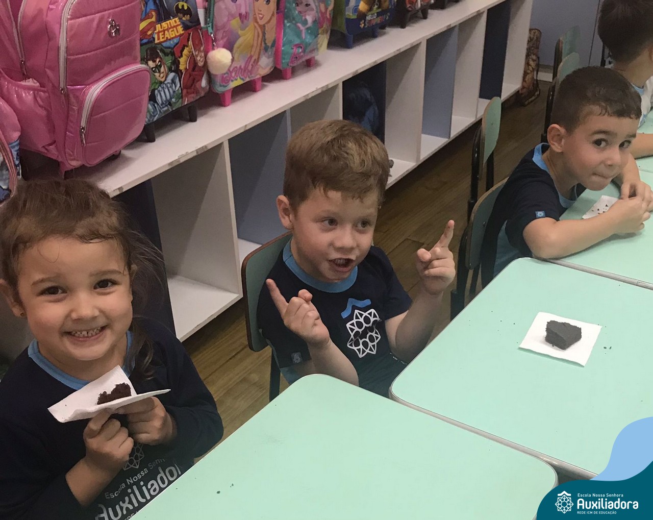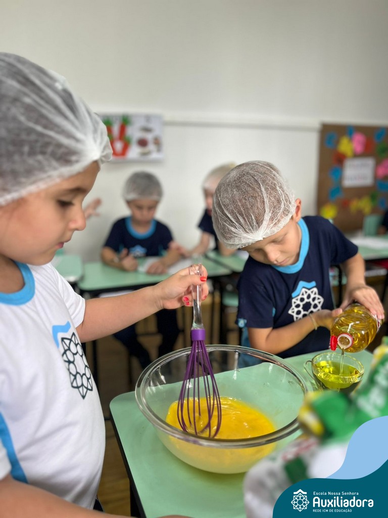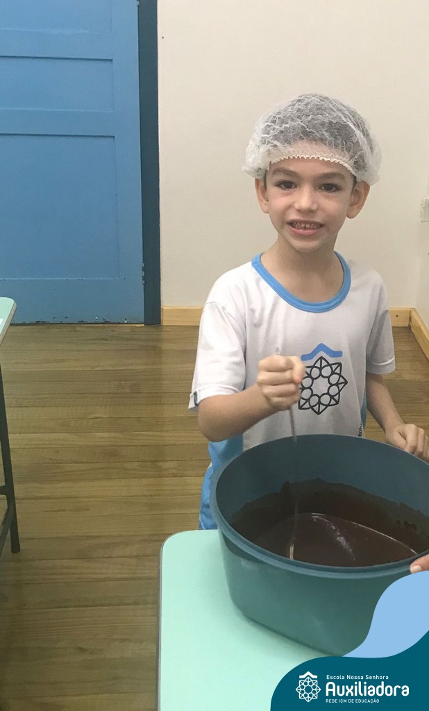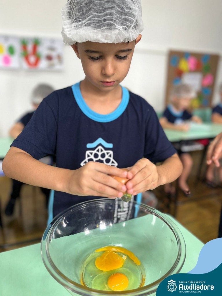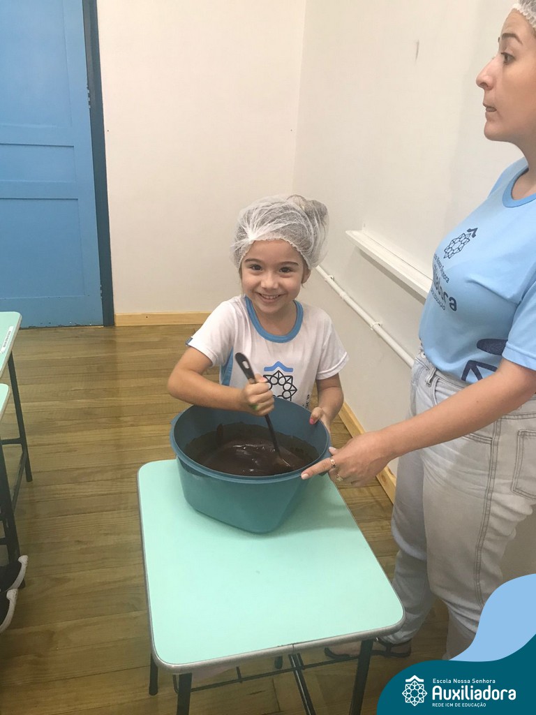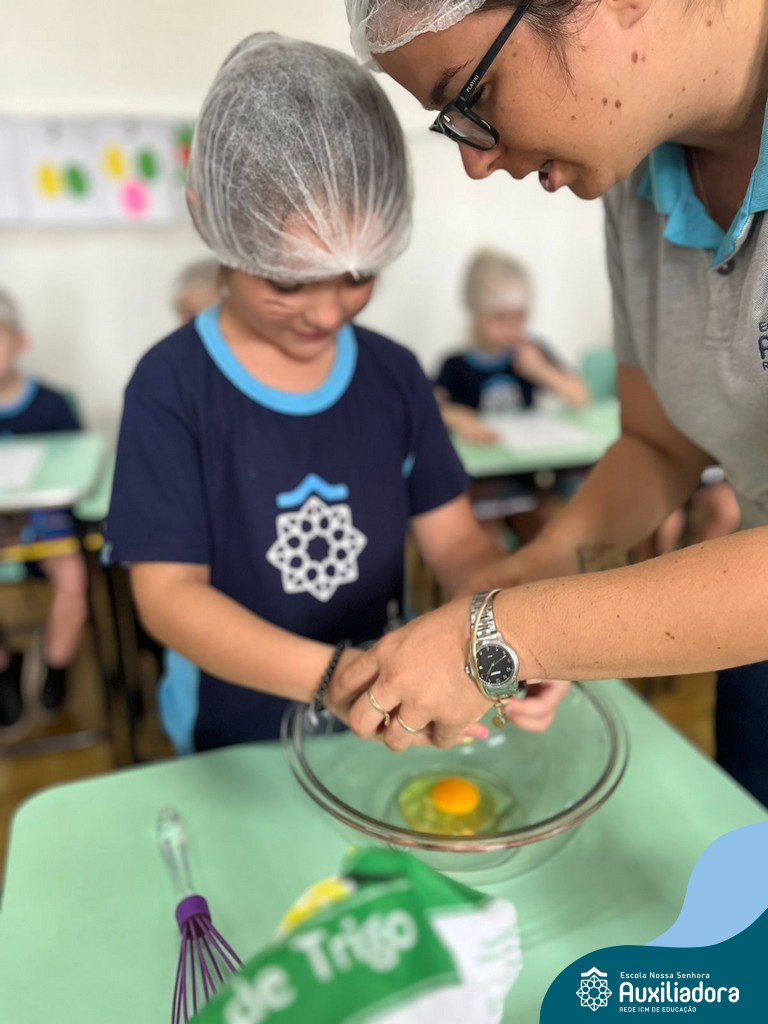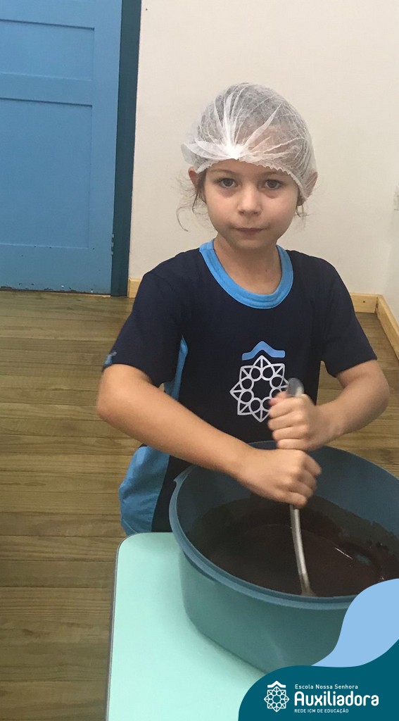 Em clima de Páscoa e confraternização, as crianças se envolveram em uma experiência de culinária muito significativa, fazendo um delicioso bolo de Cacau! Esta atividade não só ensina habilidades culinárias básicas, como também promove a criatividade e a colaboração. Realizaram a exploração sobre o Cacau, a separação e mistura dos ingredientes e, por fim o registro da receita em folha. Cada etapa foi uma oportunidade para aprender e se divertir juntos. Além disso, o resultado final foi um saboroso bolo, uma recompensa que todos puderam desfrutar em um lanche compartilhado, afinal Páscoa é partilha, amor e carinho uns com os outros.
