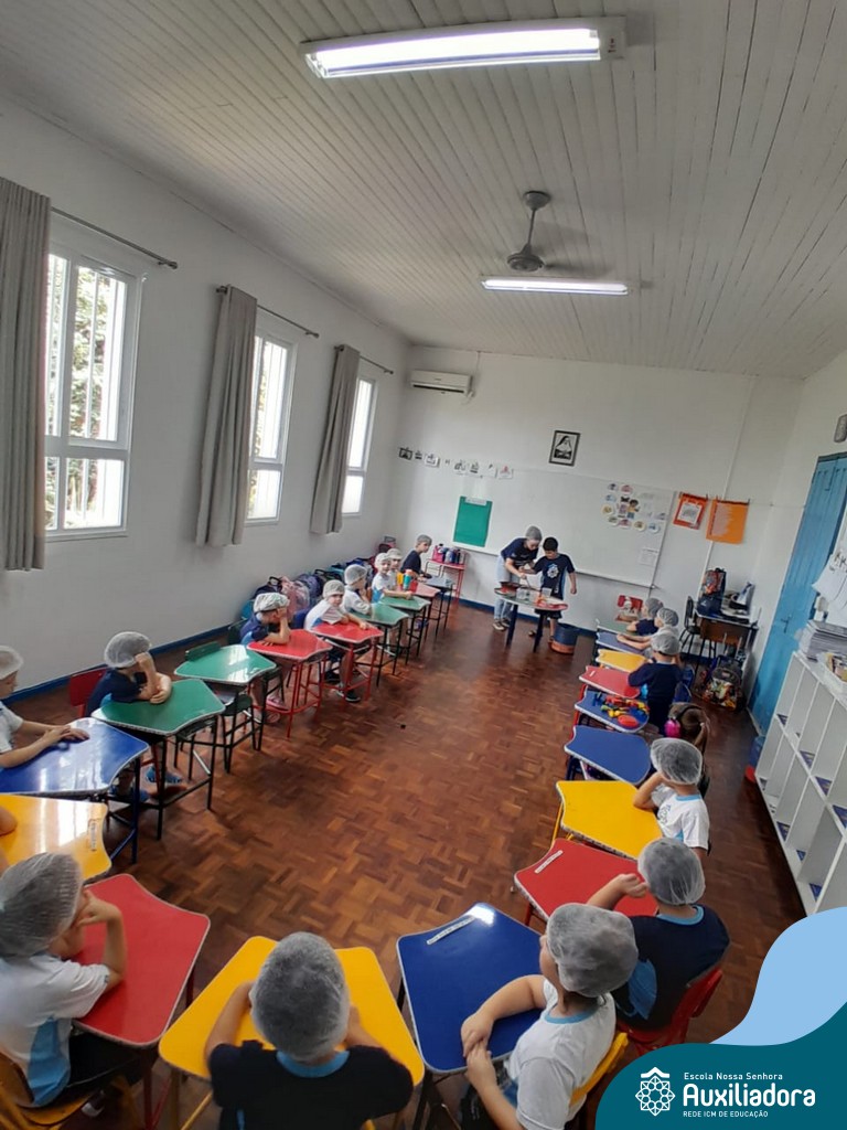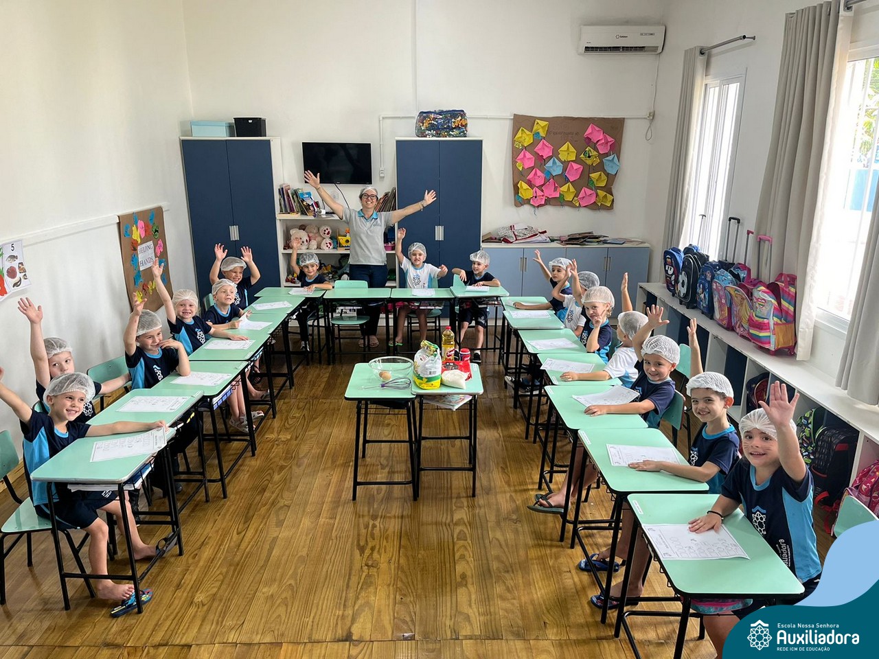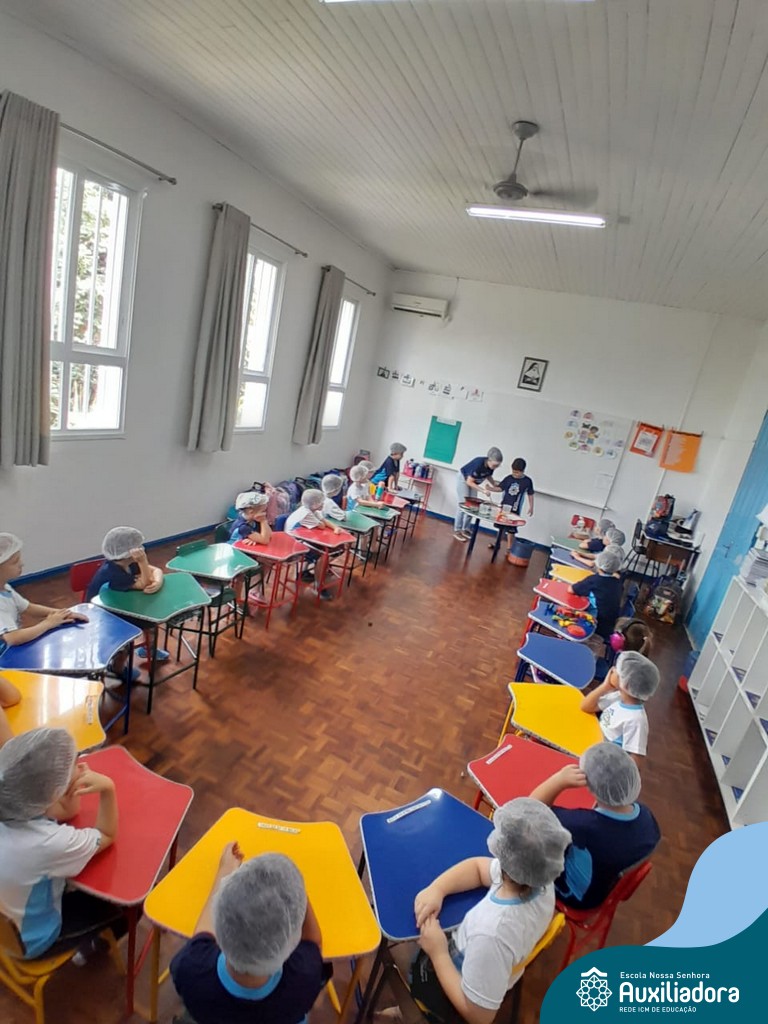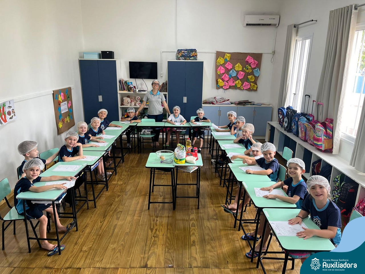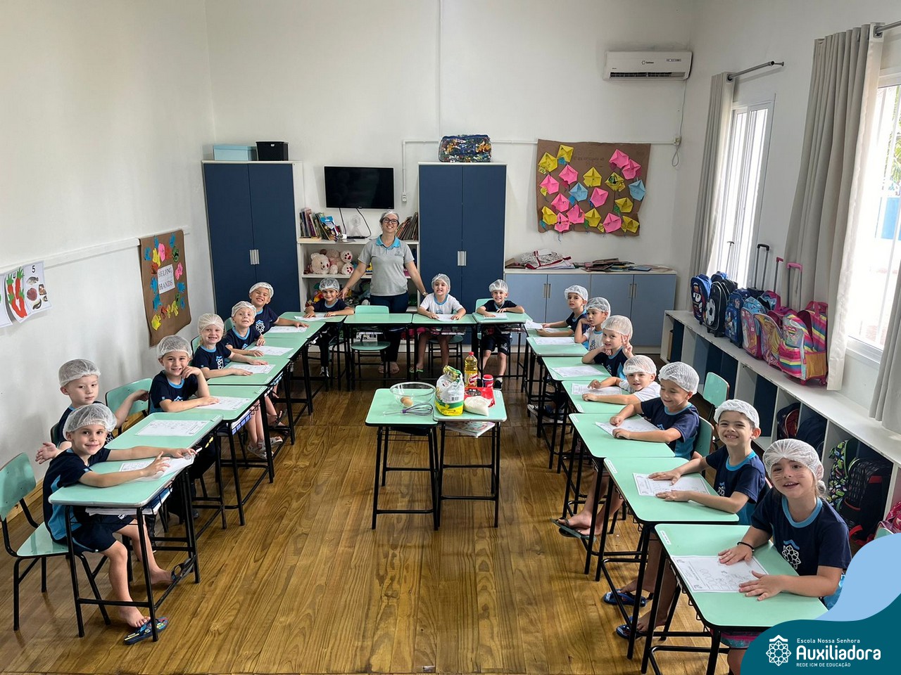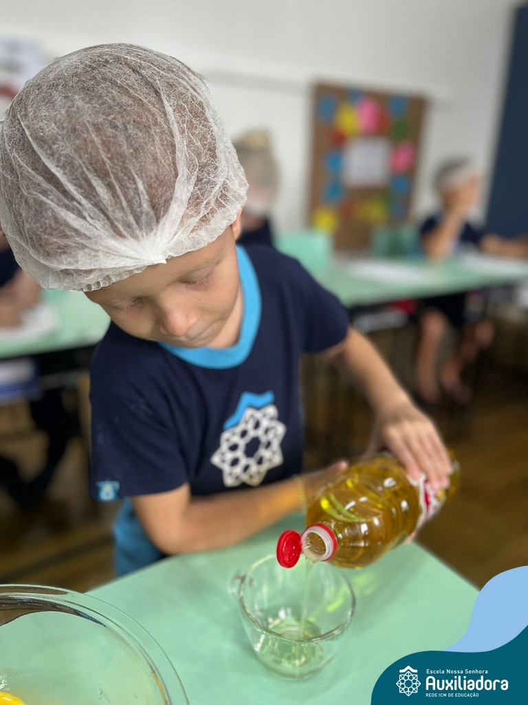 Em clima de Páscoa e confraternização, as crianças se envolveram em uma experiência de culinária muito significativa, fazendo um delicioso bolo de Cacau! Esta atividade não só ensina habilidades culinárias básicas, como também promove a criatividade e a colaboração. Realizaram a exploração sobre o Cacau, a separação e mistura dos ingredientes e, por fim o registro da receita em folha. Cada etapa foi uma oportunidade para aprender e se divertir juntos. Além disso, o resultado final foi um saboroso bolo, uma recompensa que todos puderam desfrutar em um lanche compartilhado, afinal Páscoa é partilha, amor e carinho uns com os outros.