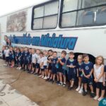 As turmas da Educação Infantil estão ampliando os conhecimentos sobre os meios de transportes. Para envolvê-los ainda mais neste tema, receberam na escola um ônibus muito especial, dentro dele uma maquete de ferrovia e algumas características de nossa cidade.
