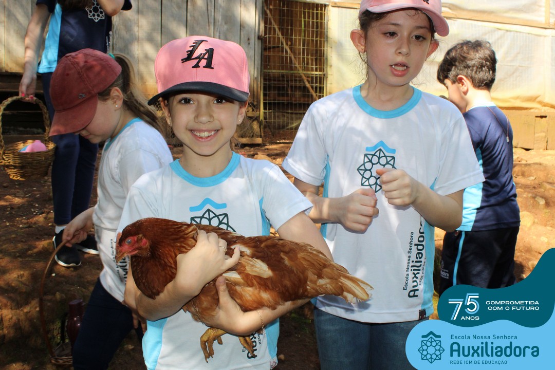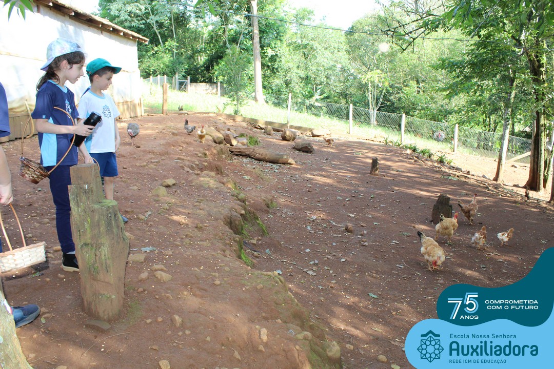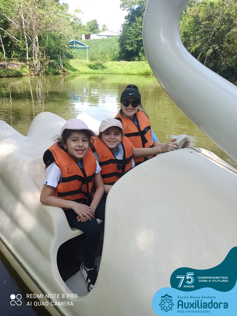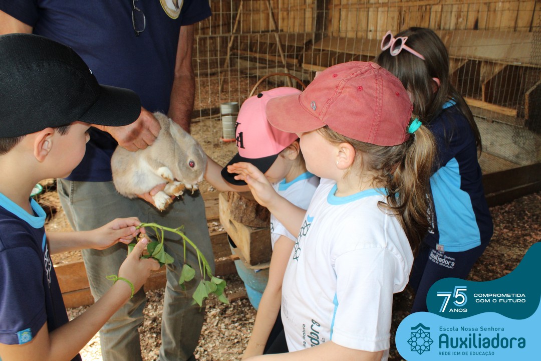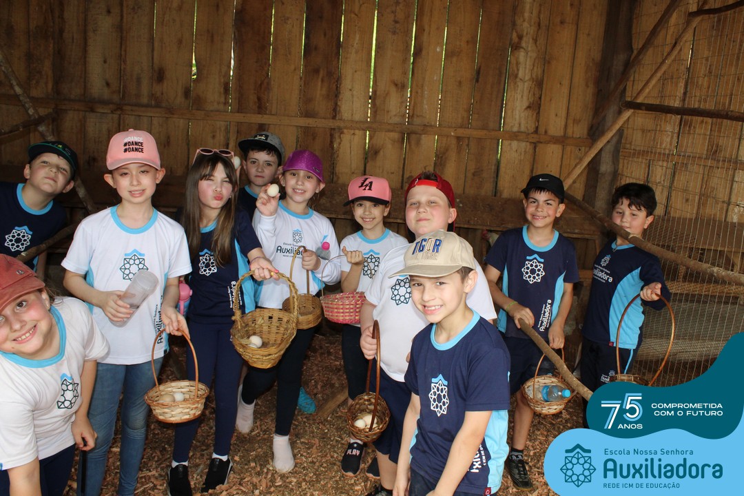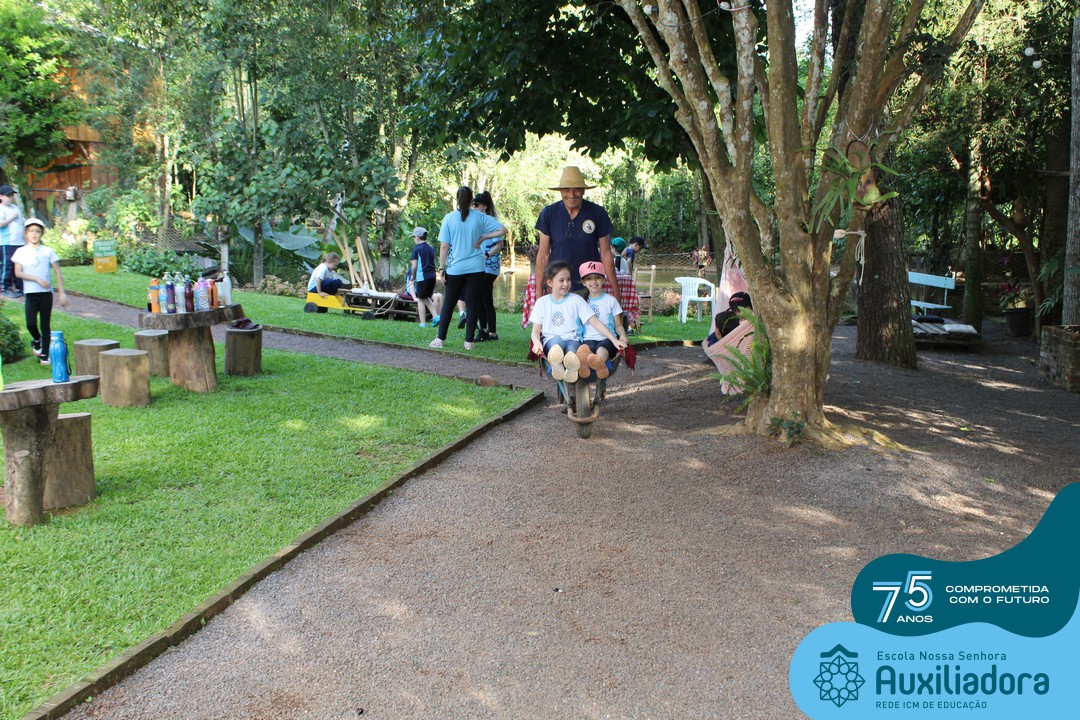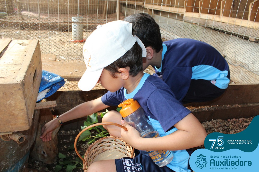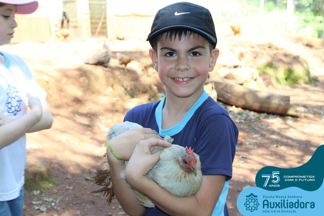 Entre os momentos de diversão, as crianças fizeram a coleta de ovos no galinheiro, interagiram com animais, fizeram uma trilha em meio à natureza, enquanto aprendiam sobre preservação e ecologia. Também não faltou risadas e alegria com brincadeiras de perna de pau, passeio de pedalinho e no carrinho, além de um piquenique para desfrutar da companhia dos colegas e professores.