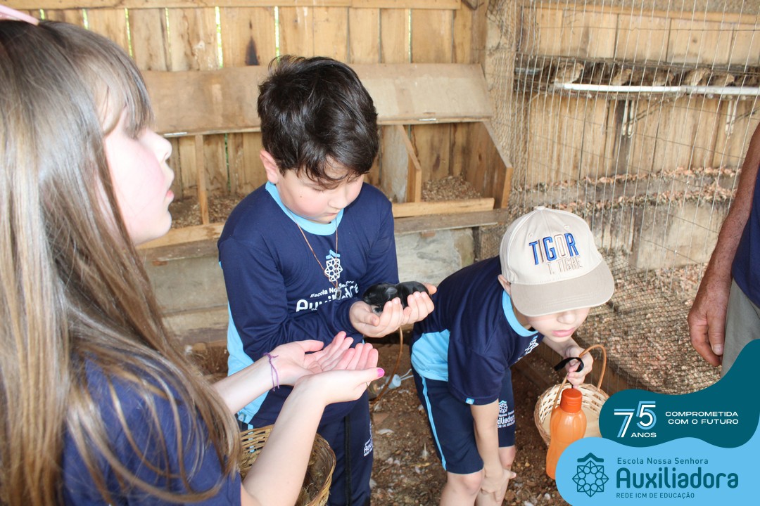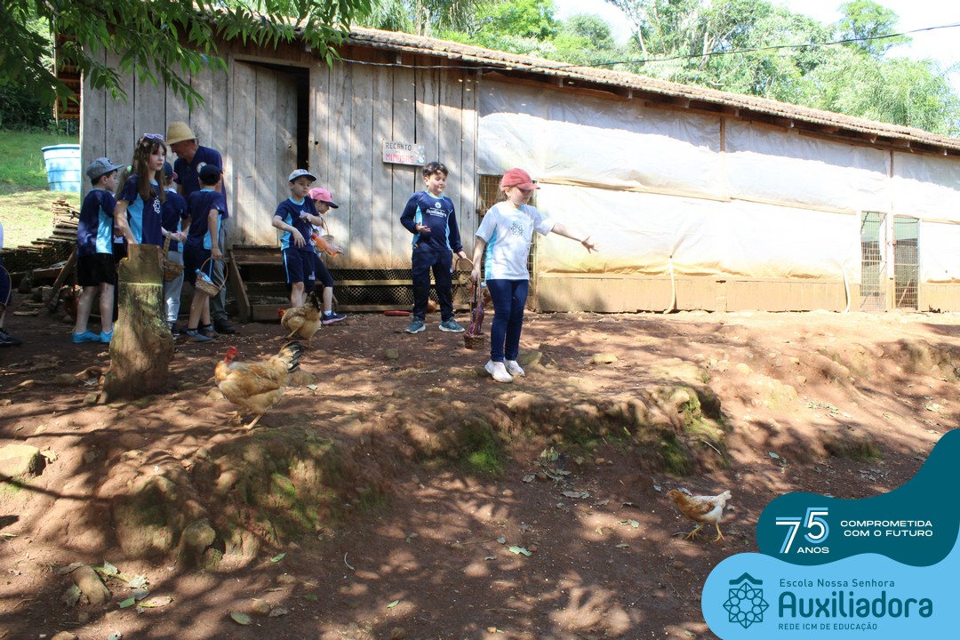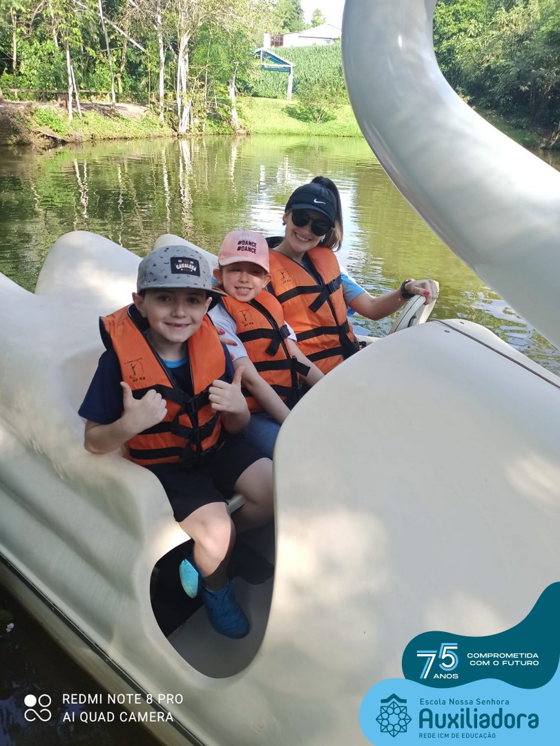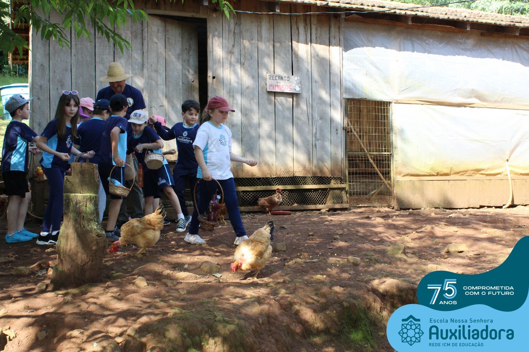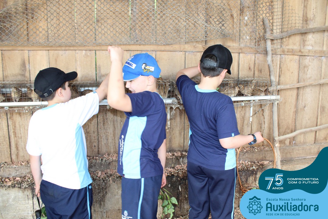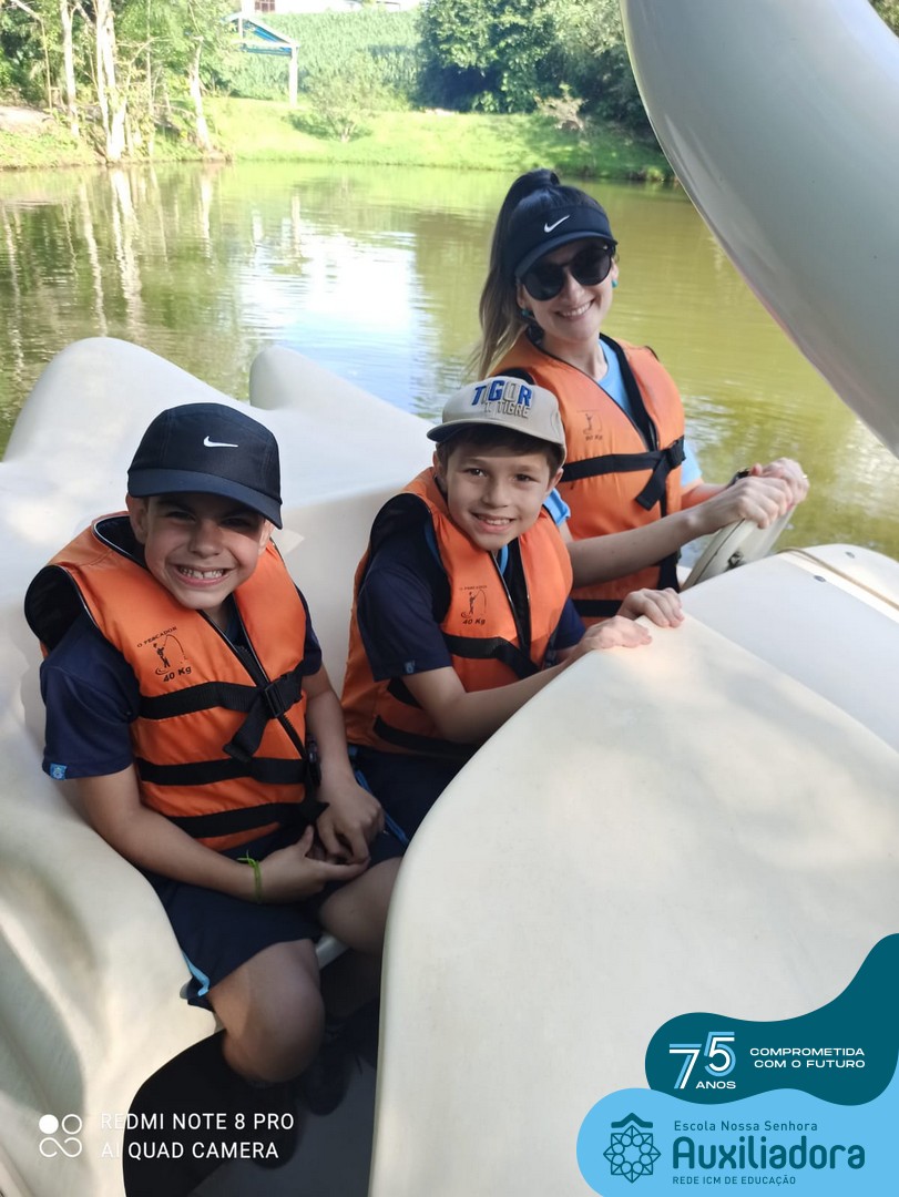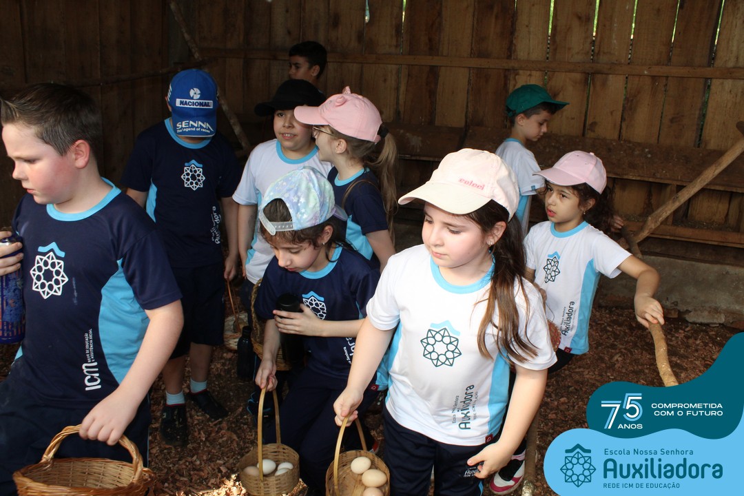Entre os momentos de diversão, as crianças fizeram a coleta de ovos no galinheiro, interagiram com animais, fizeram uma trilha em meio à natureza, enquanto aprendiam sobre preservação e ecologia. Também não faltou risadas e alegria com brincadeiras de perna de pau, passeio de pedalinho e no carrinho, além de um piquenique para desfrutar da companhia dos colegas e professores.
