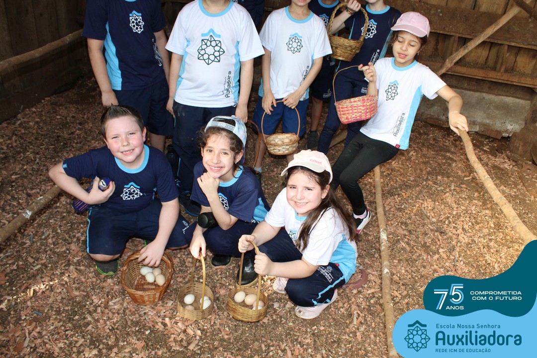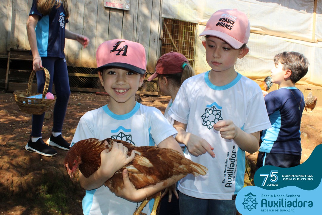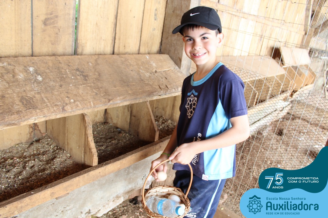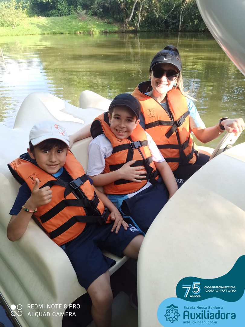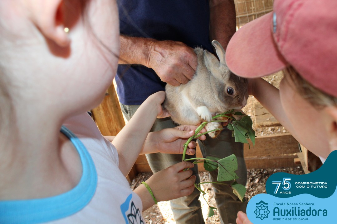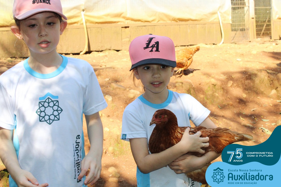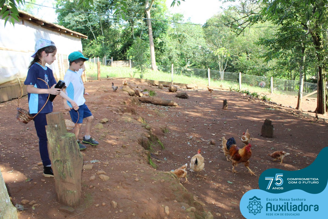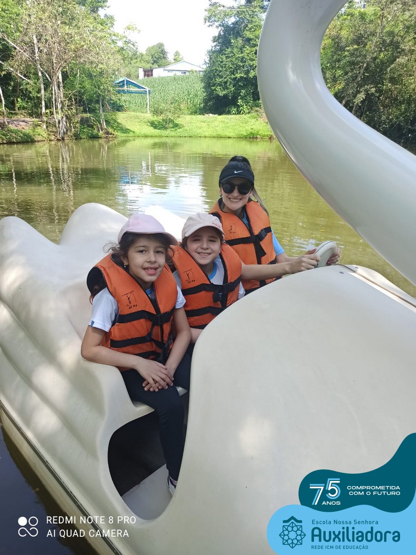 Entre os momentos de diversão, as crianças fizeram a coleta de ovos no galinheiro, interagiram com animais, fizeram uma trilha em meio à natureza, enquanto aprendiam sobre preservação e ecologia. Também não faltou risadas e alegria com brincadeiras de perna de pau, passeio de pedalinho e no carrinho, além de um piquenique para desfrutar da companhia dos colegas e professores.