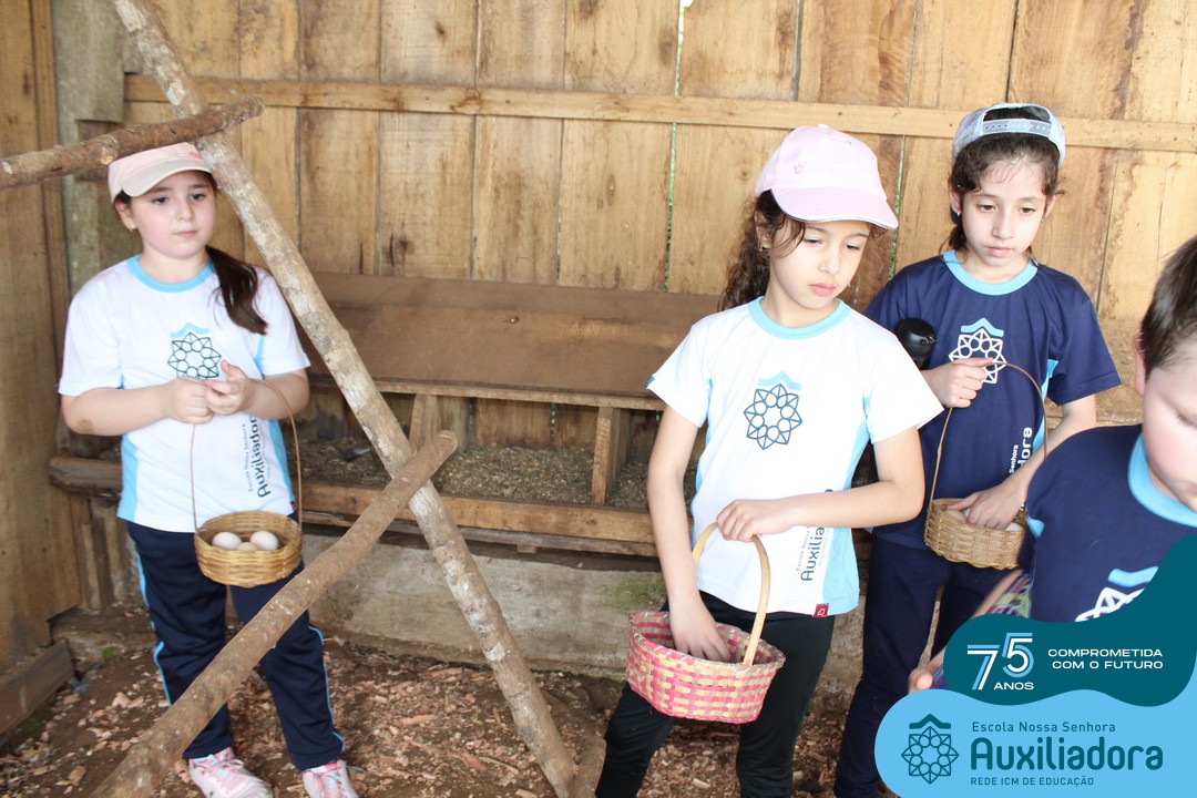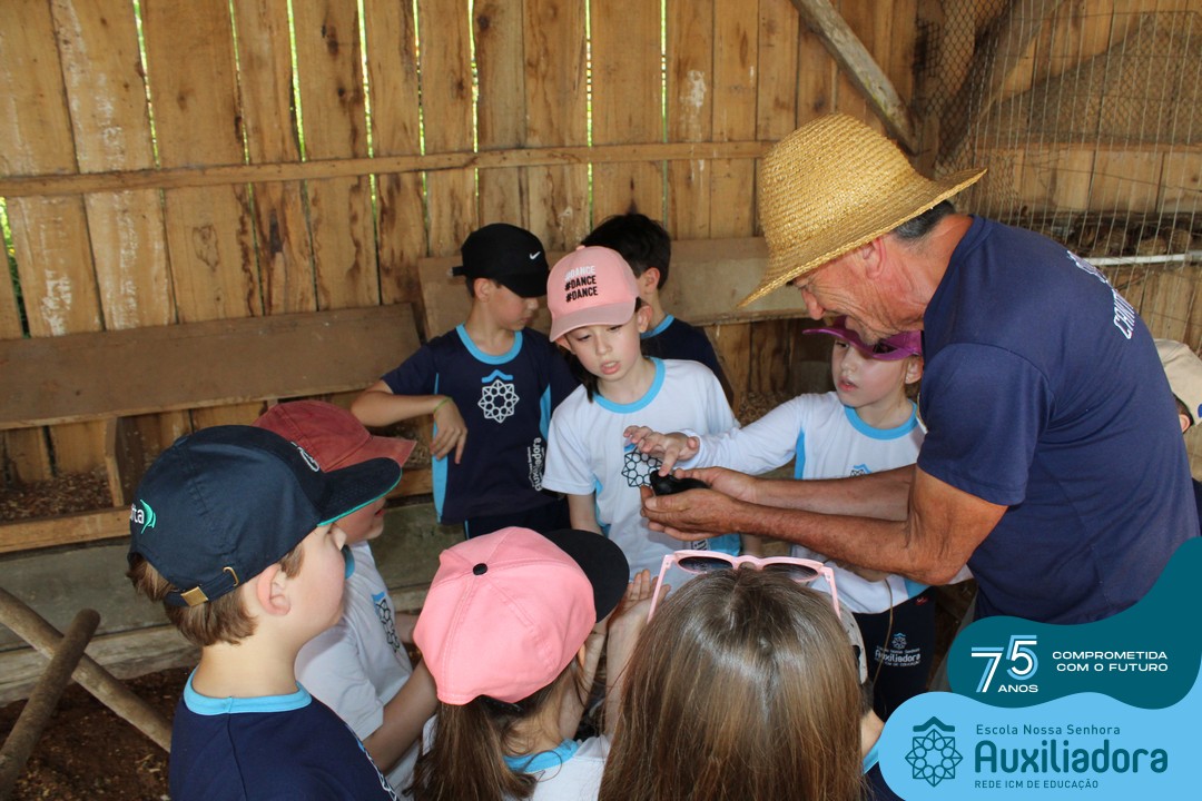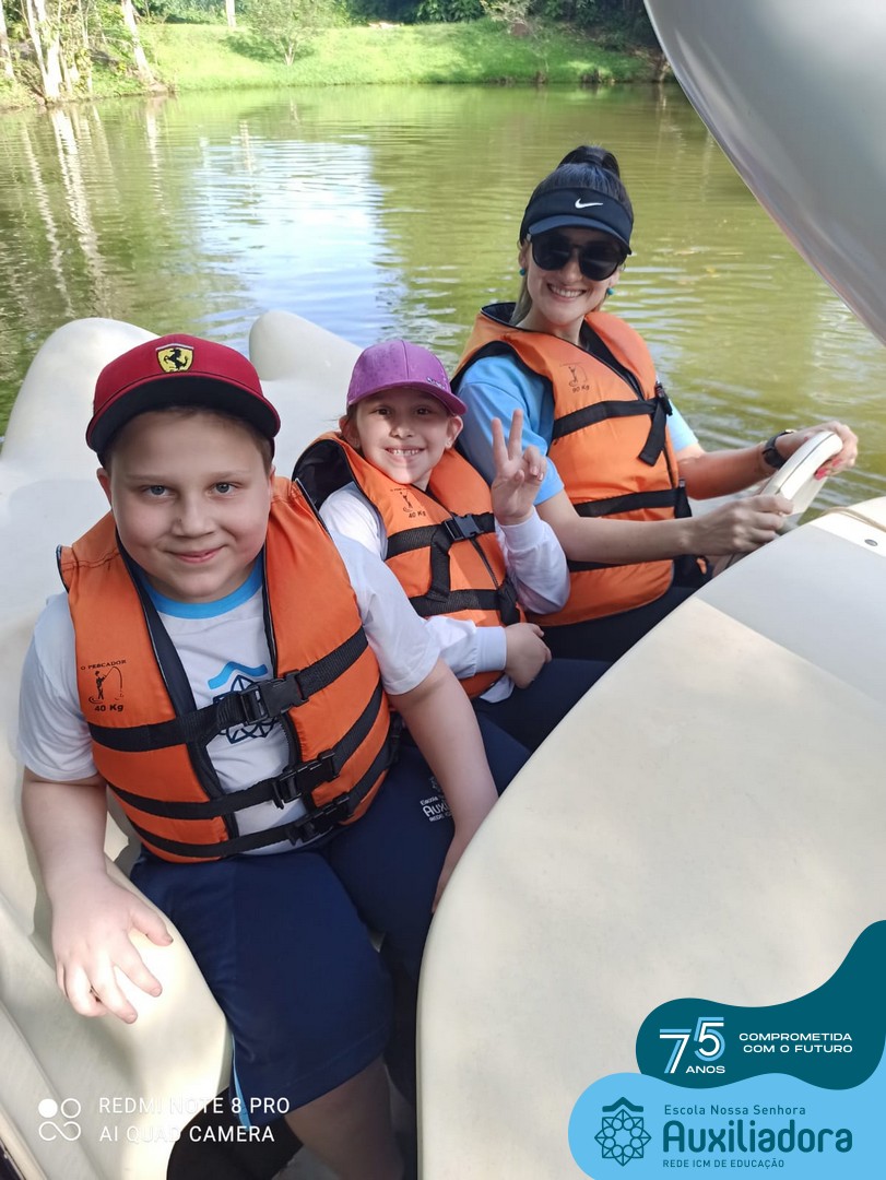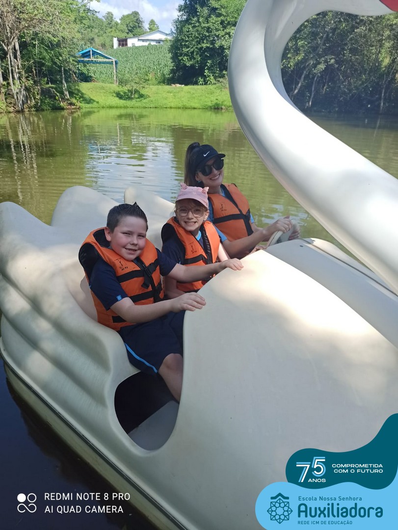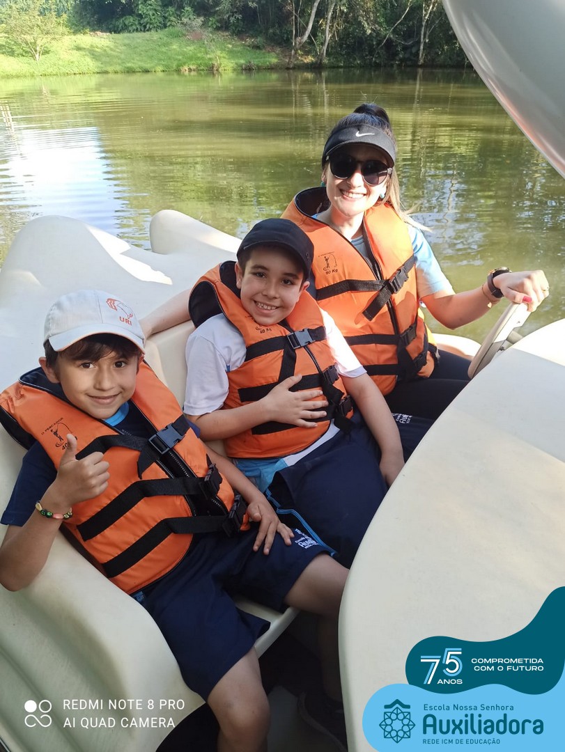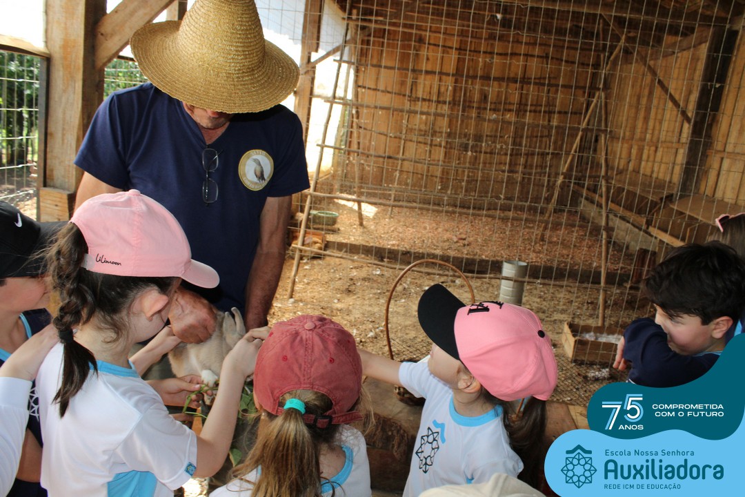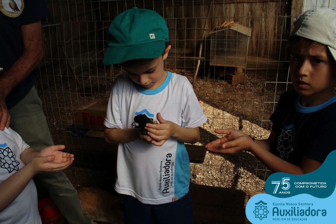 Entre os momentos de diversão, as crianças fizeram a coleta de ovos no galinheiro, interagiram com animais, fizeram uma trilha em meio à natureza, enquanto aprendiam sobre preservação e ecologia. Também não faltou risadas e alegria com brincadeiras de perna de pau, passeio de pedalinho e no carrinho, além de um piquenique para desfrutar da companhia dos colegas e professores.