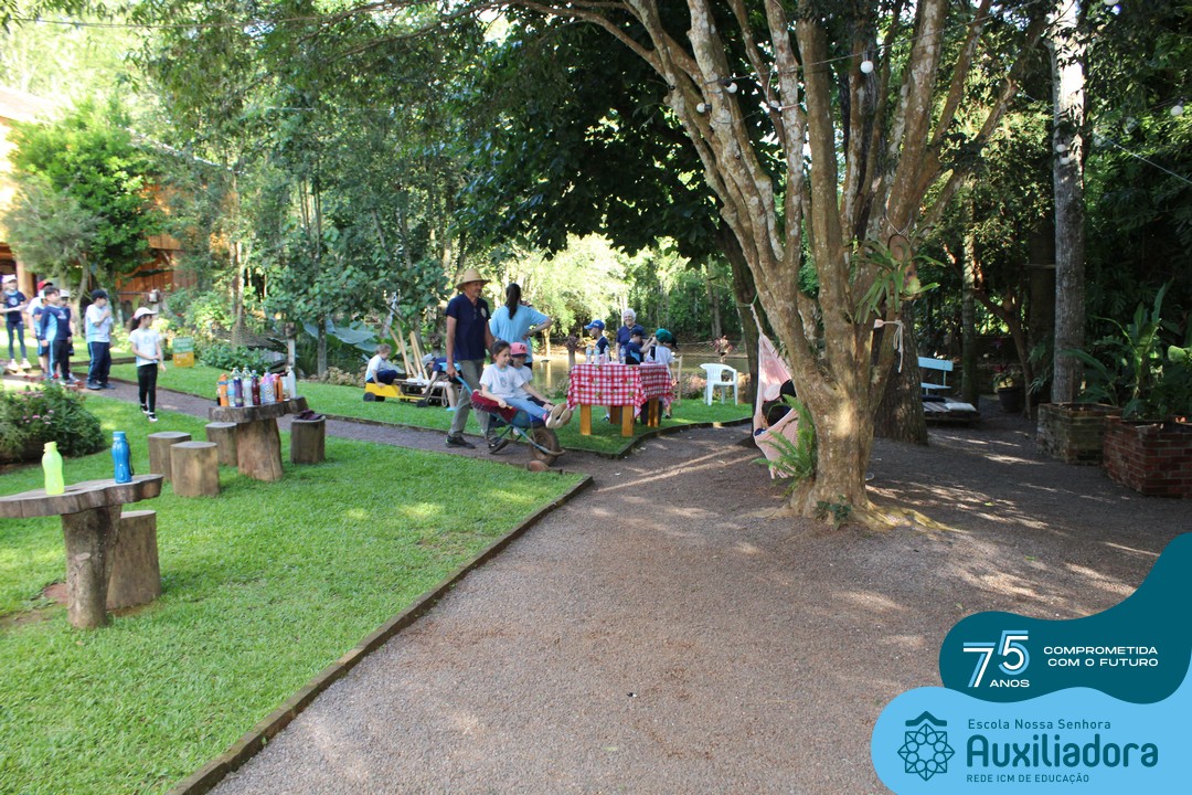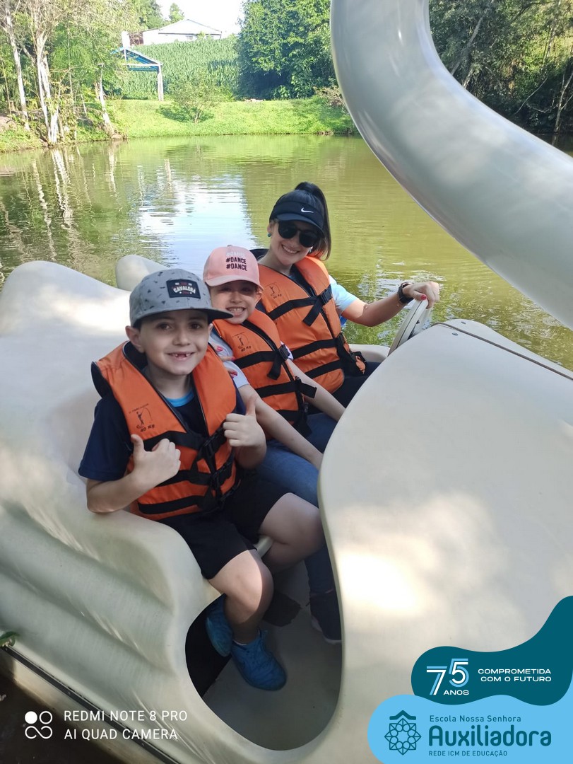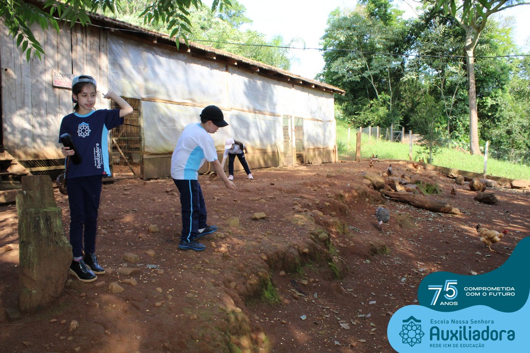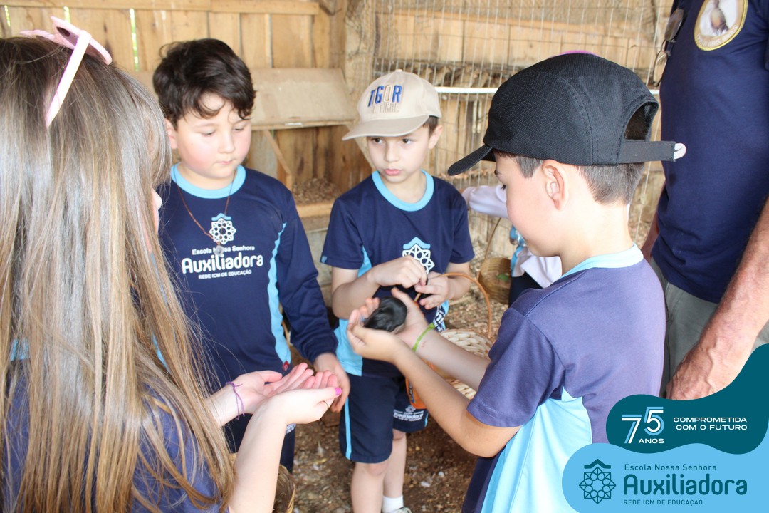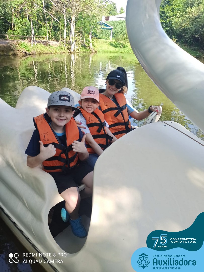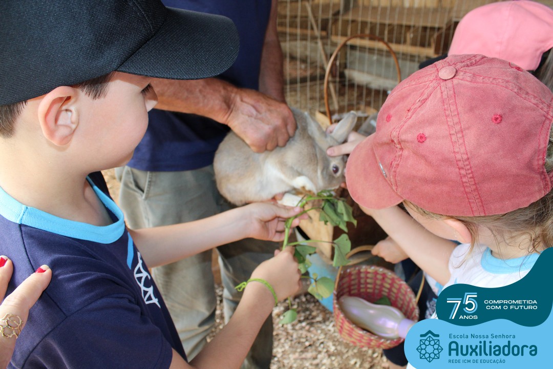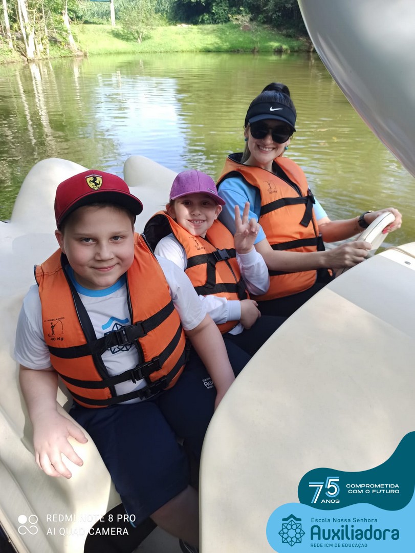 Entre os momentos de diversão, as crianças fizeram a coleta de ovos no galinheiro, interagiram com animais, fizeram uma trilha em meio à natureza, enquanto aprendiam sobre preservação e ecologia. Também não faltou risadas e alegria com brincadeiras de perna de pau, passeio de pedalinho e no carrinho, além de um piquenique para desfrutar da companhia dos colegas e professores.