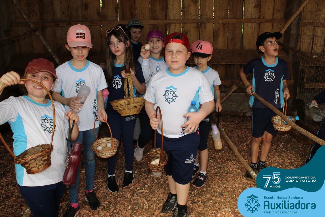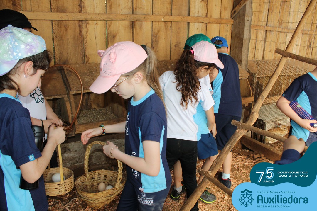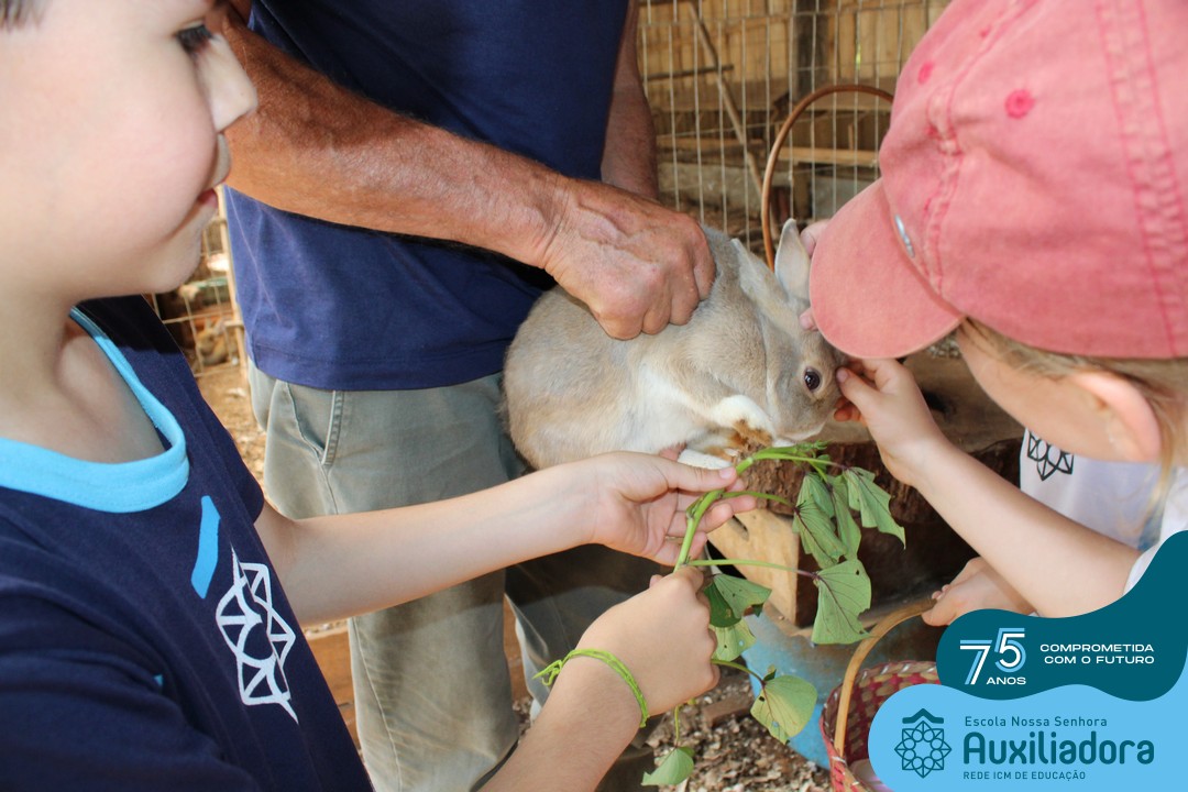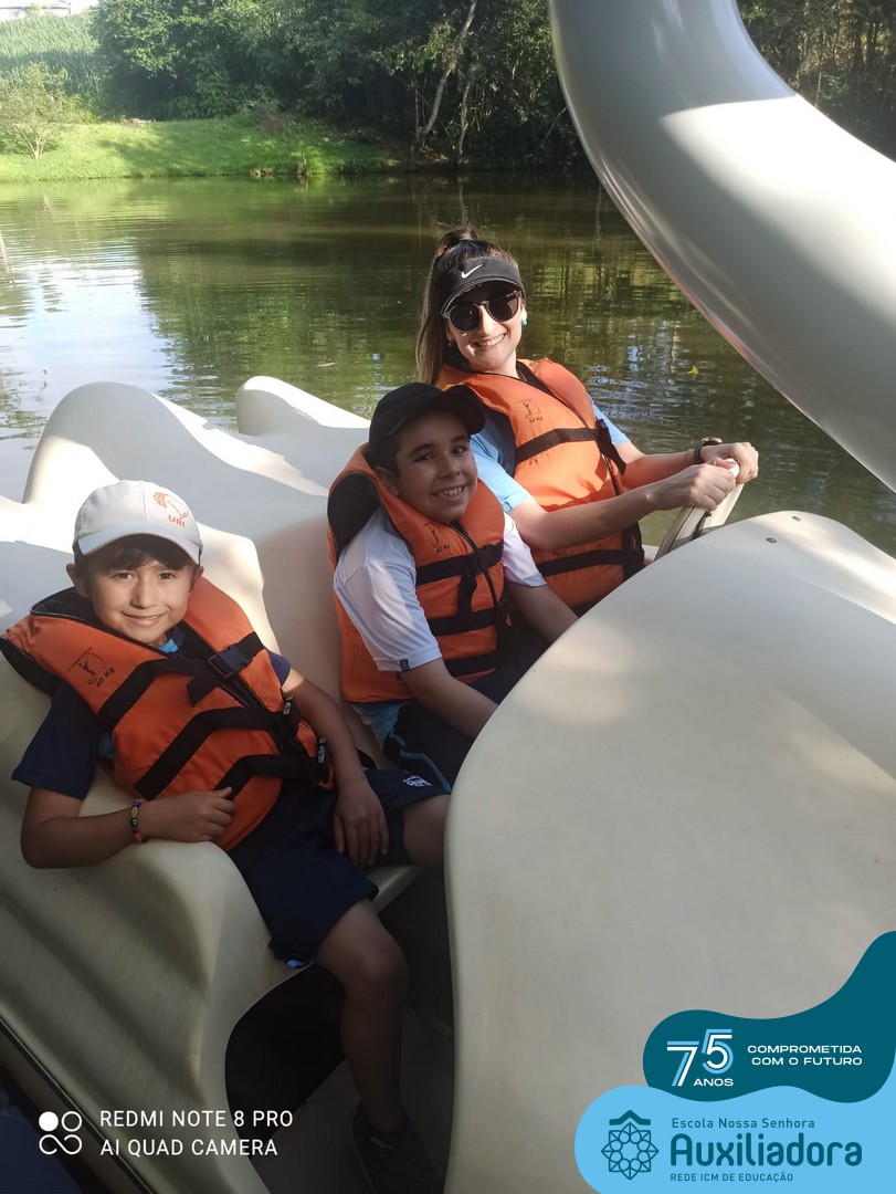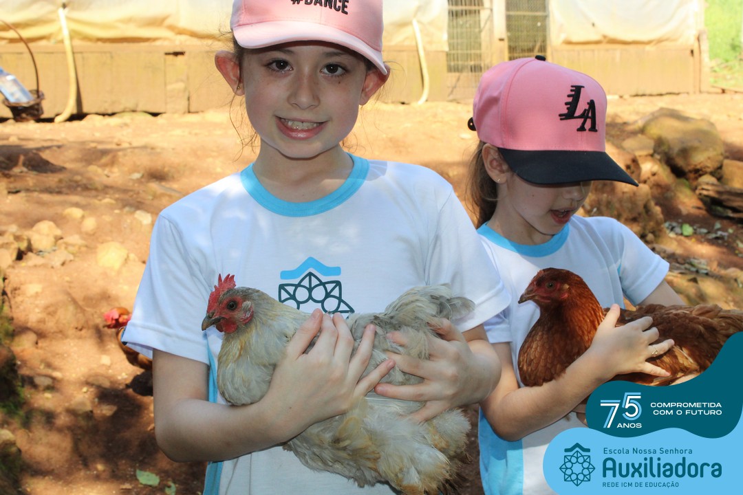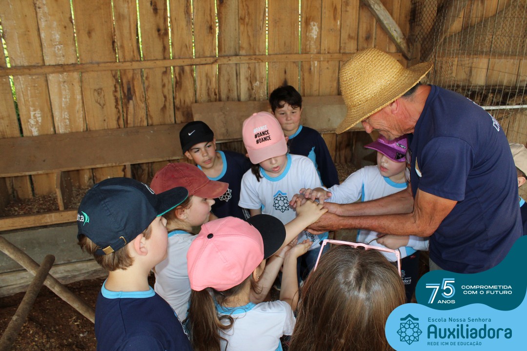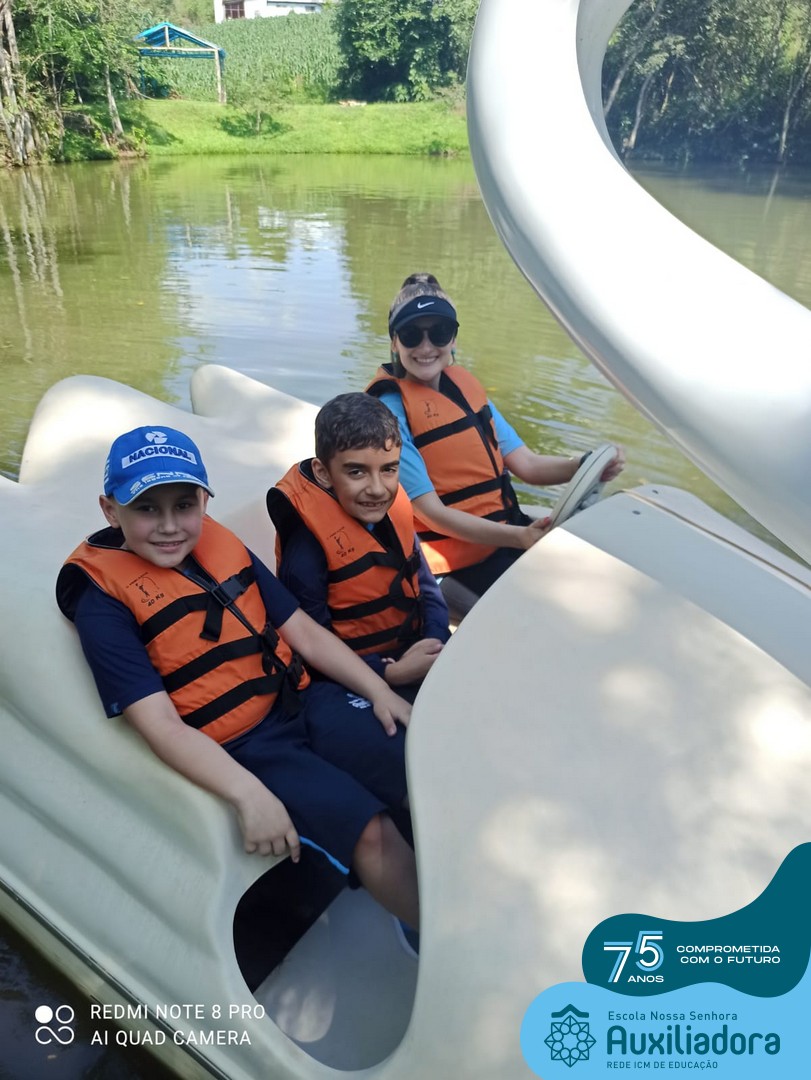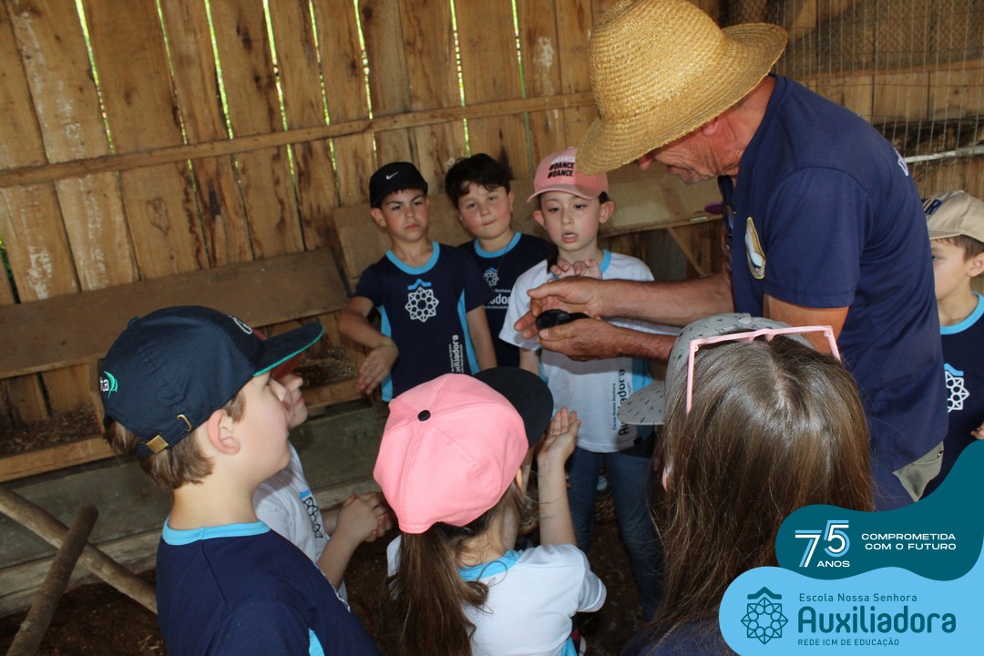 Entre os momentos de diversão, as crianças fizeram a coleta de ovos no galinheiro, interagiram com animais, fizeram uma trilha em meio à natureza, enquanto aprendiam sobre preservação e ecologia. Também não faltou risadas e alegria com brincadeiras de perna de pau, passeio de pedalinho e no carrinho, além de um piquenique para desfrutar da companhia dos colegas e professores.