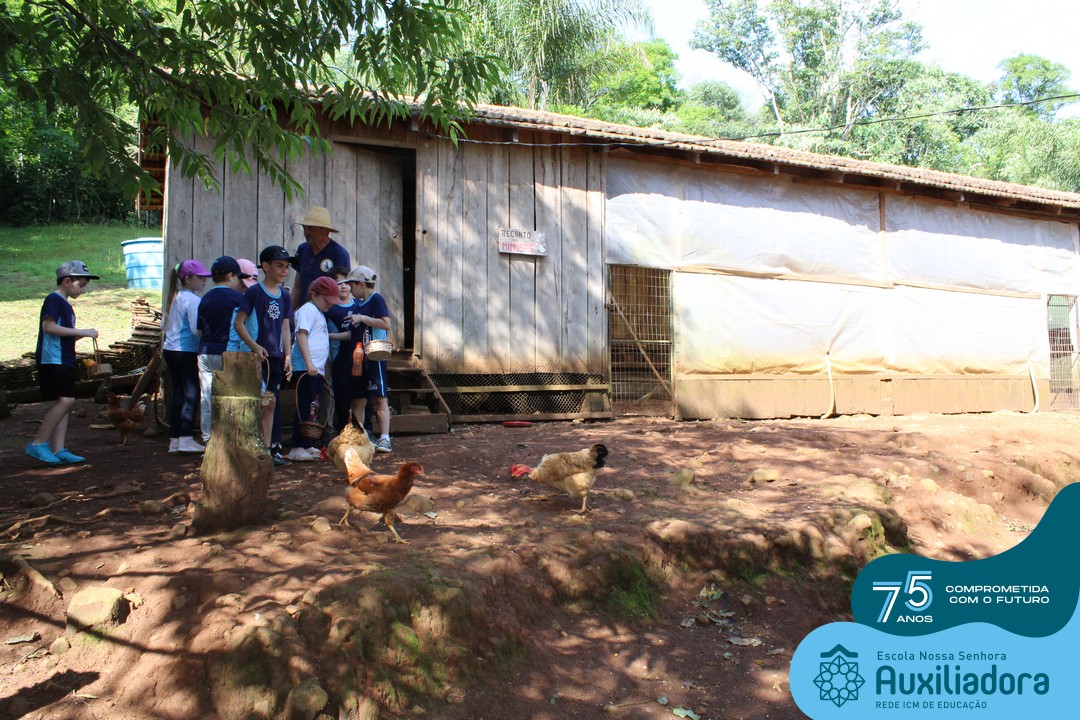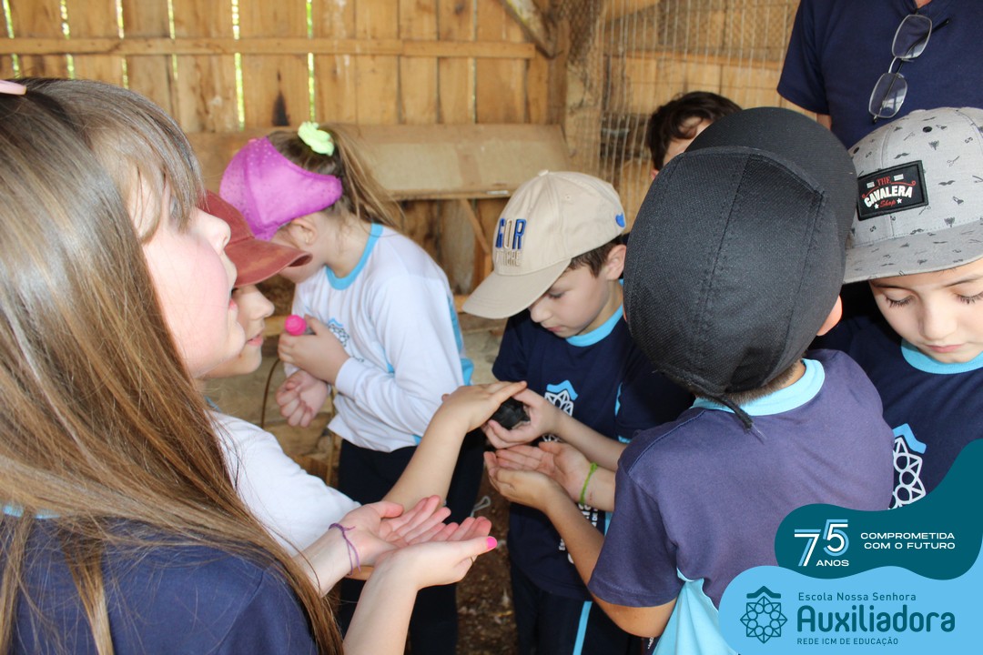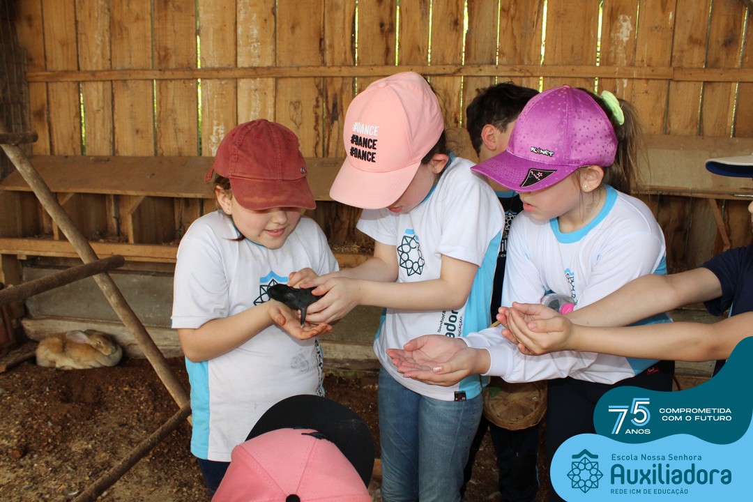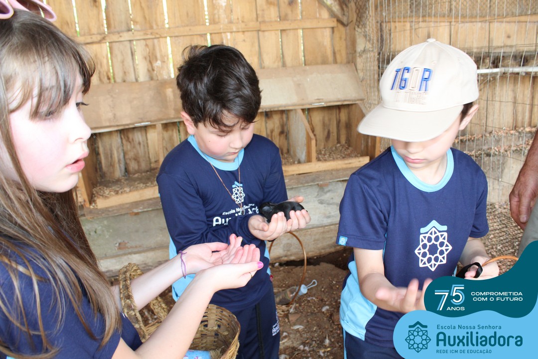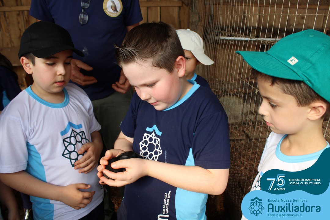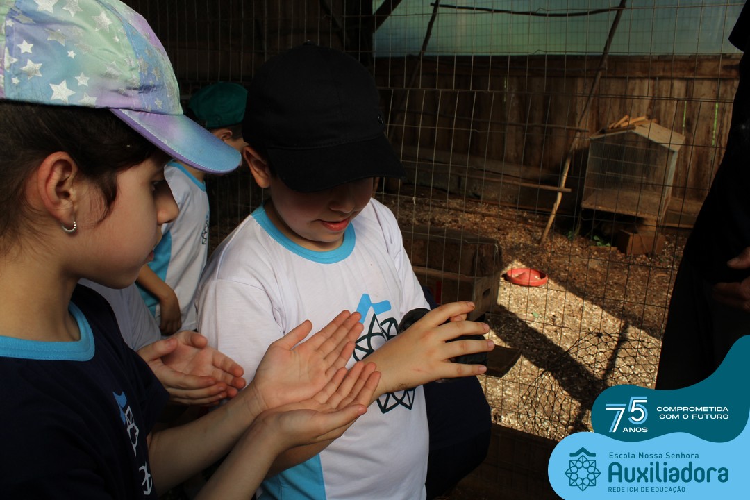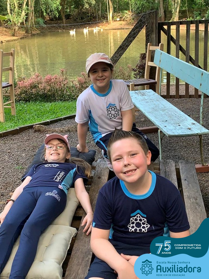 Entre os momentos de diversão, as crianças fizeram a coleta de ovos no galinheiro, interagiram com animais, fizeram uma trilha em meio à natureza, enquanto aprendiam sobre preservação e ecologia. Também não faltou risadas e alegria com brincadeiras de perna de pau, passeio de pedalinho e no carrinho, além de um piquenique para desfrutar da companhia dos colegas e professores.