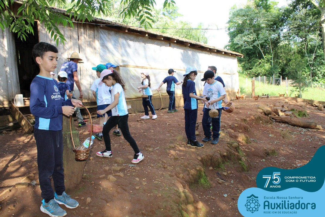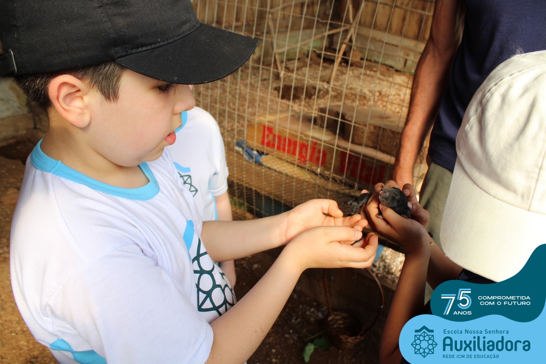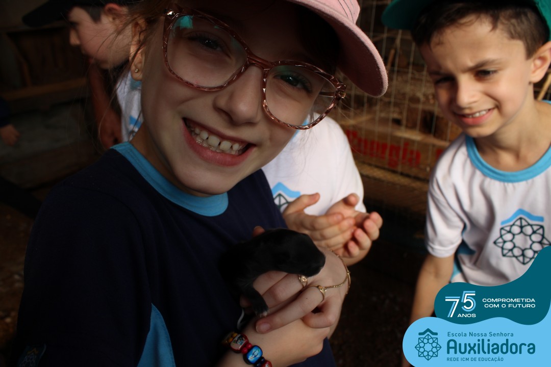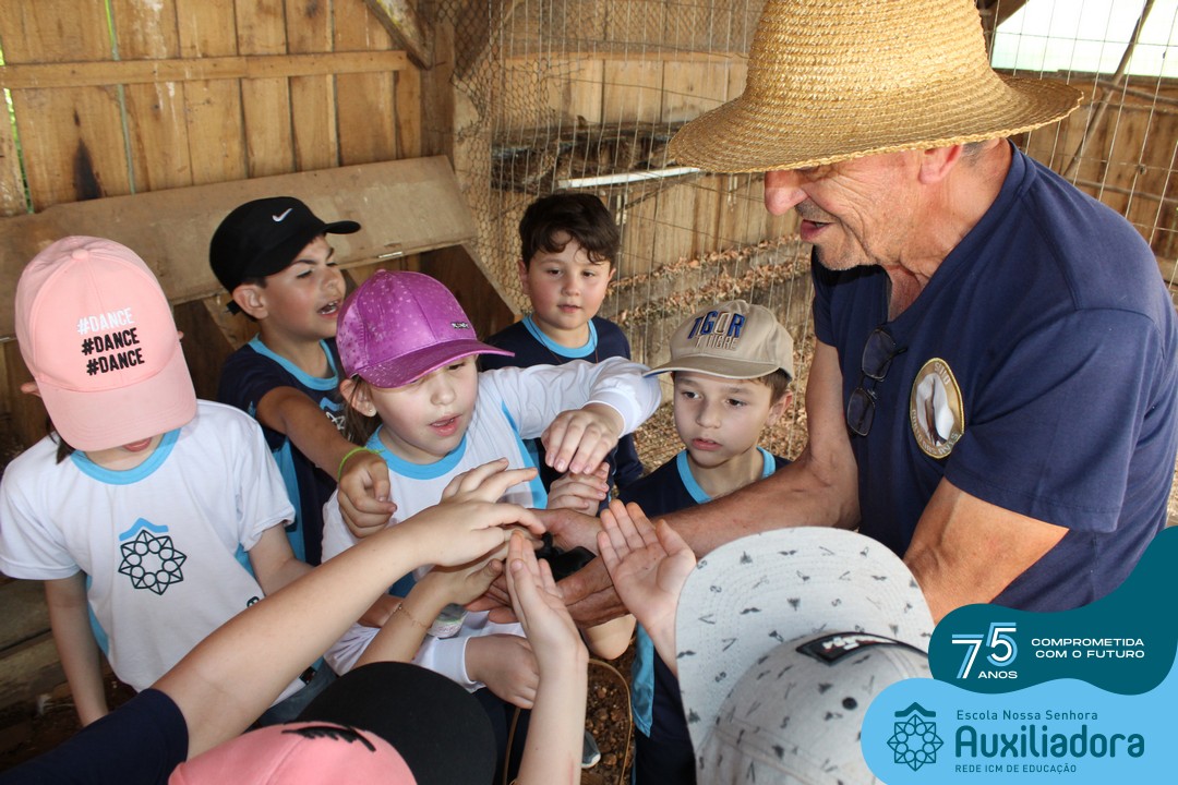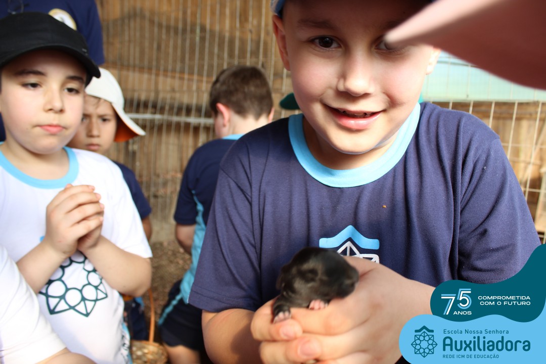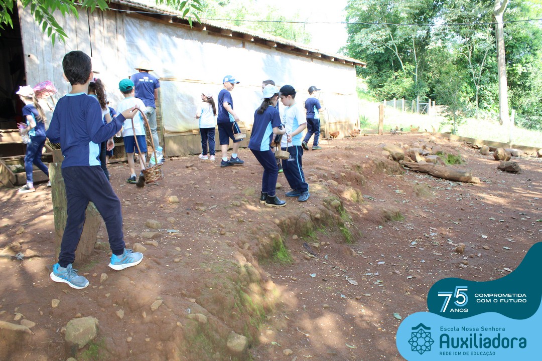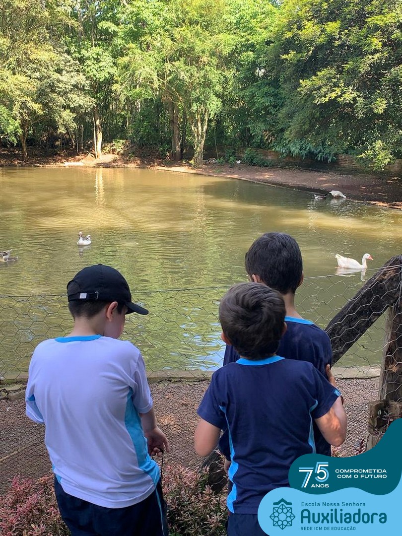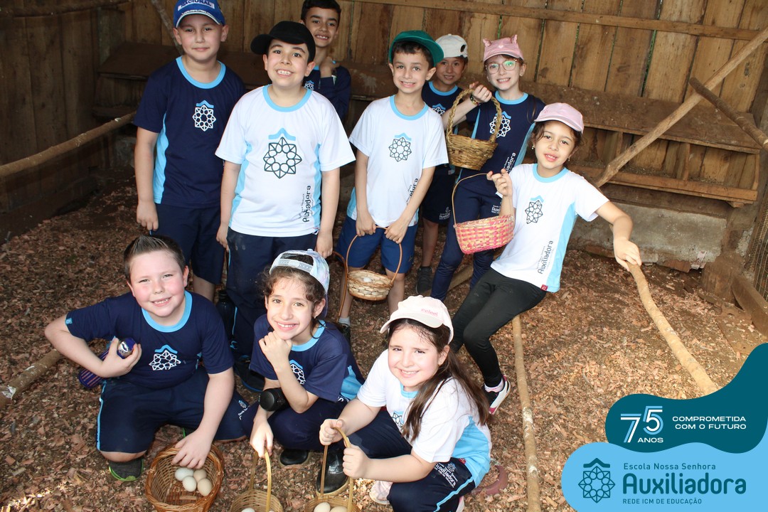 Entre os momentos de diversão, as crianças fizeram a coleta de ovos no galinheiro, interagiram com animais, fizeram uma trilha em meio à natureza, enquanto aprendiam sobre preservação e ecologia. Também não faltou risadas e alegria com brincadeiras de perna de pau, passeio de pedalinho e no carrinho, além de um piquenique para desfrutar da companhia dos colegas e professores.