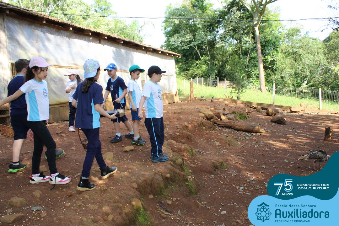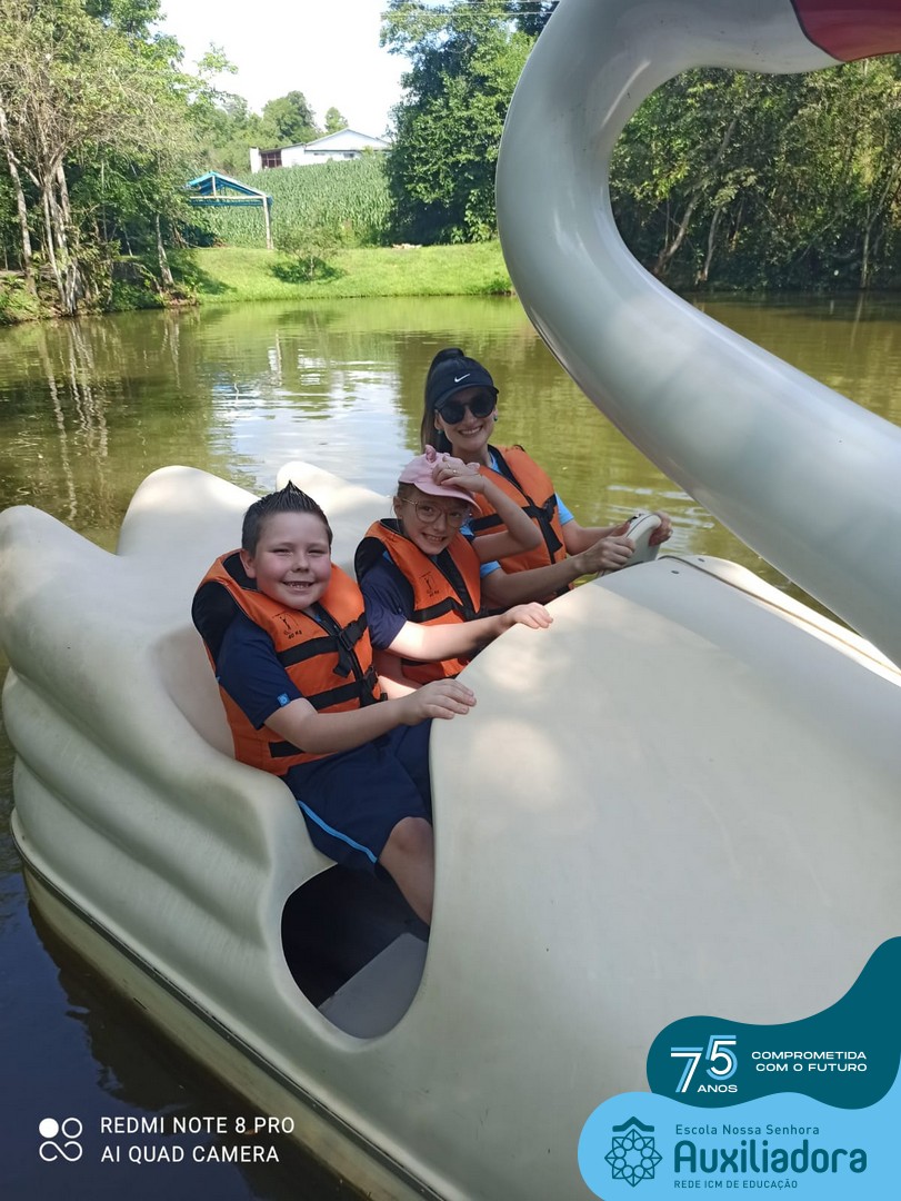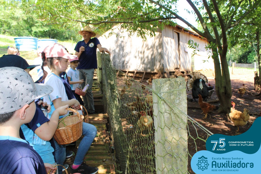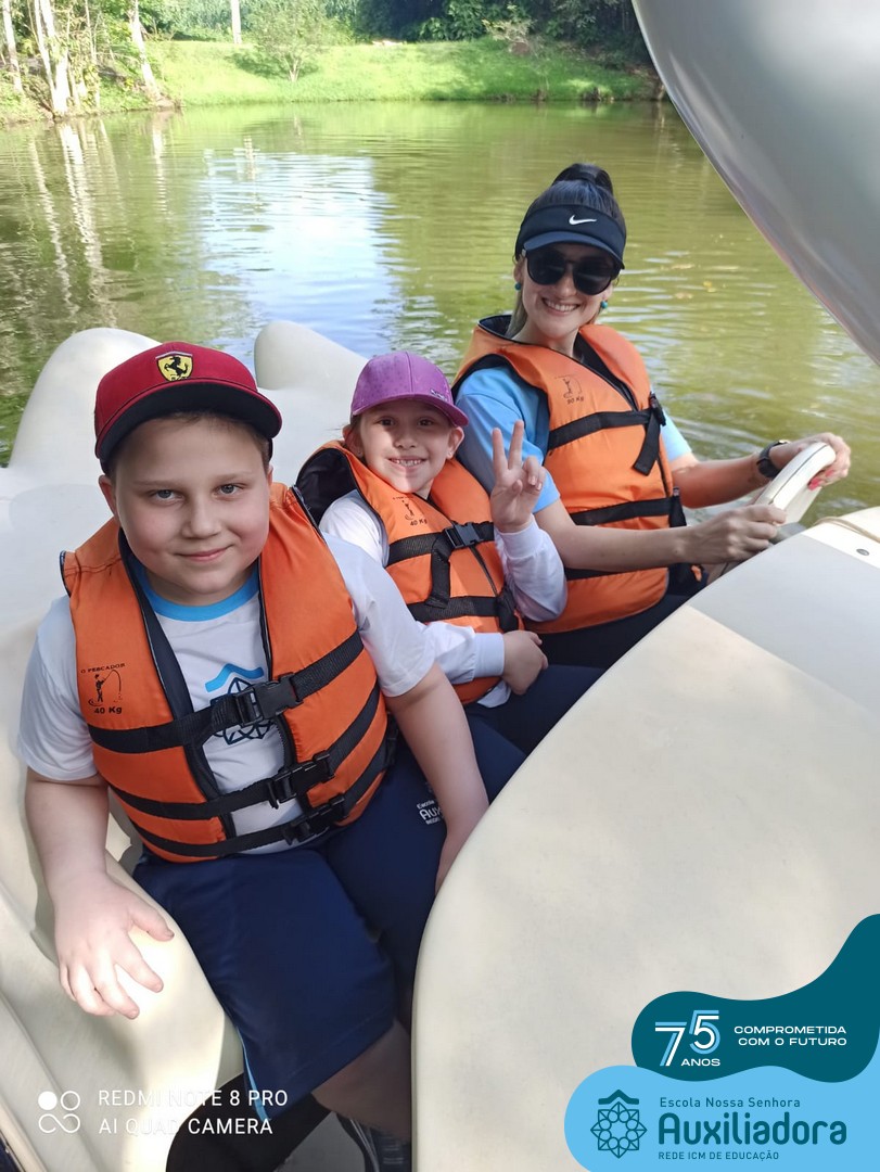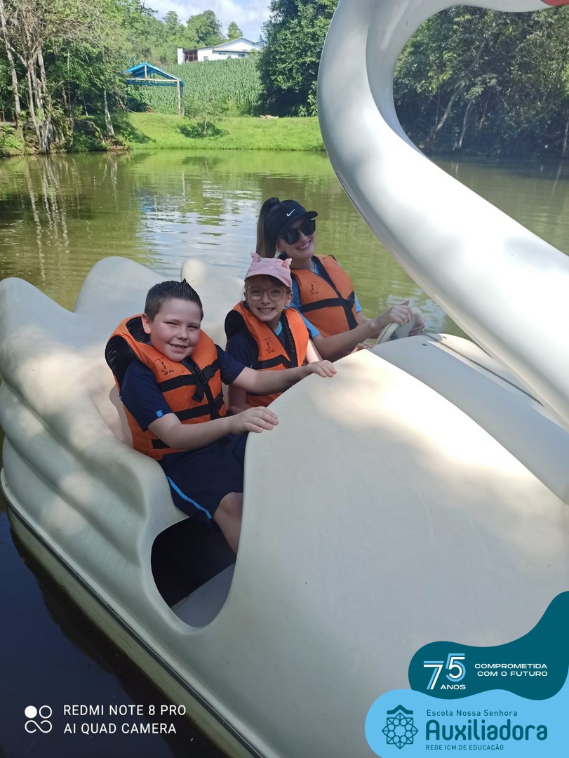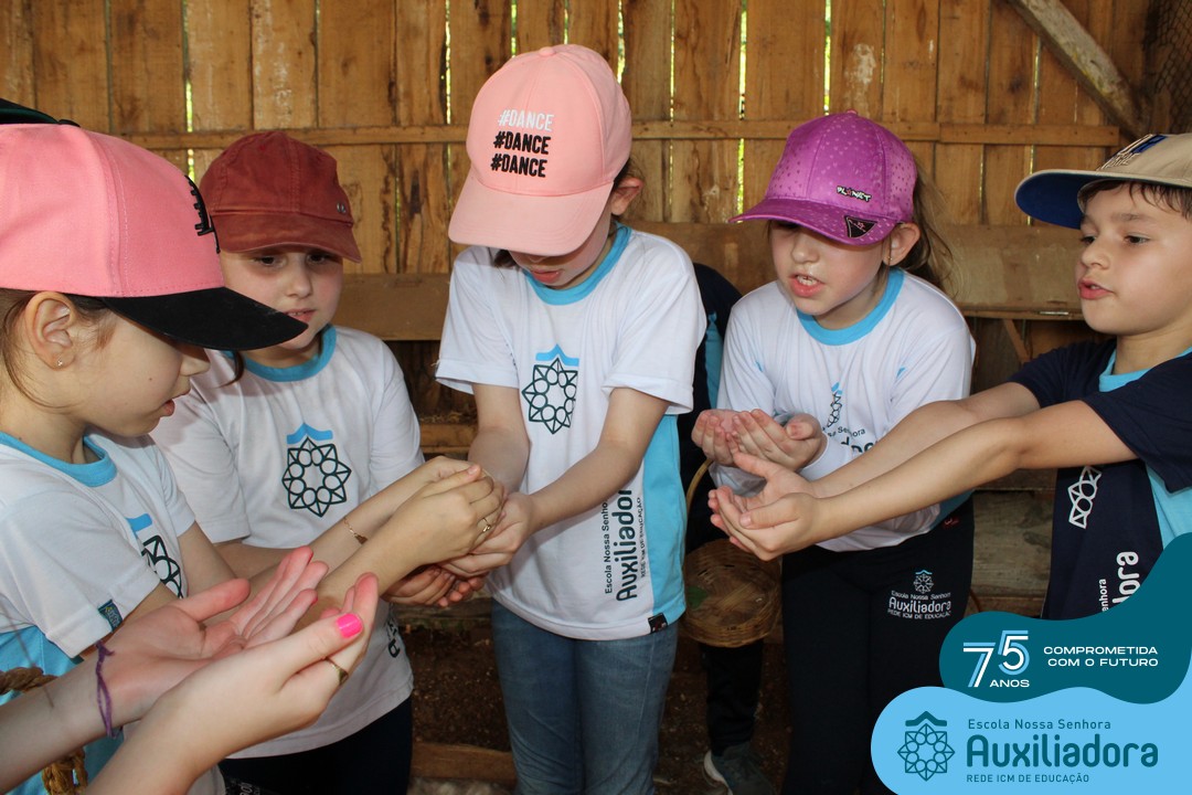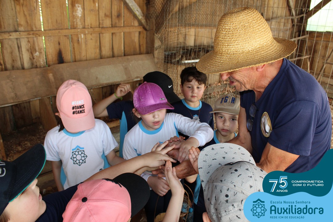 Entre os momentos de diversão, as crianças fizeram a coleta de ovos no galinheiro, interagiram com animais, fizeram uma trilha em meio à natureza, enquanto aprendiam sobre preservação e ecologia. Também não faltou risadas e alegria com brincadeiras de perna de pau, passeio de pedalinho e no carrinho, além de um piquenique para desfrutar da companhia dos colegas e professores.