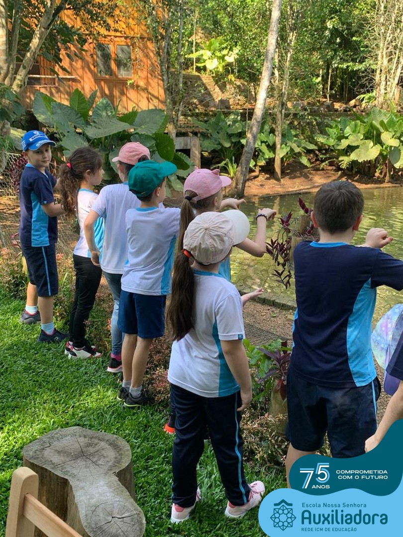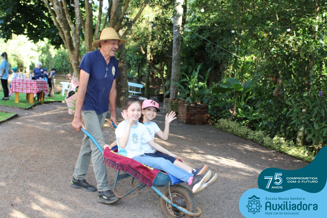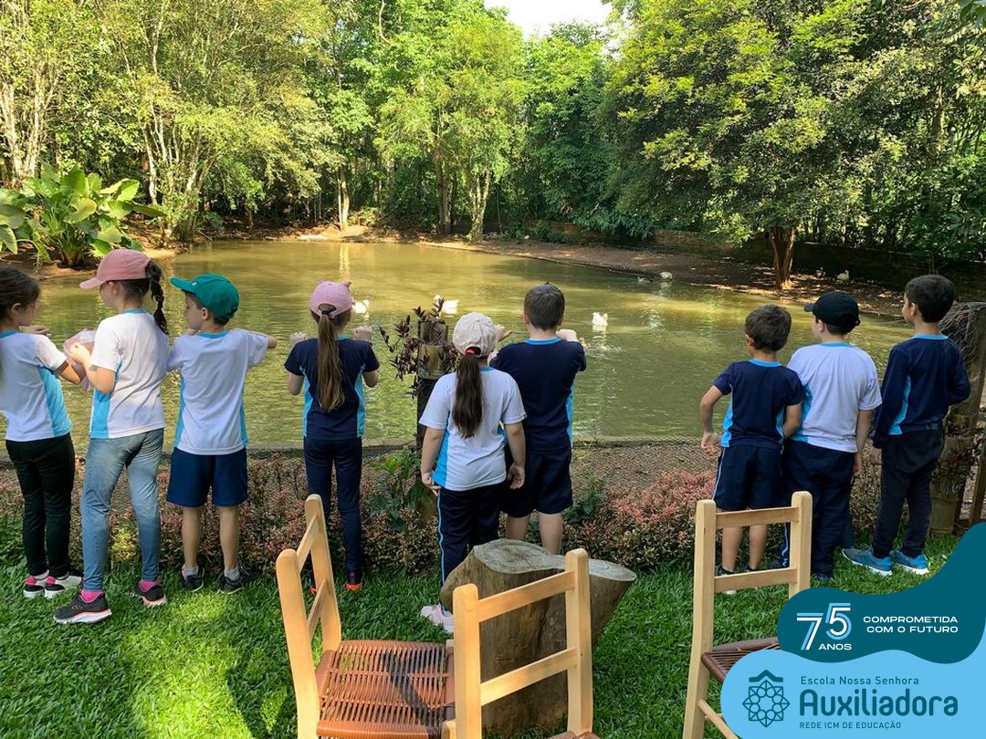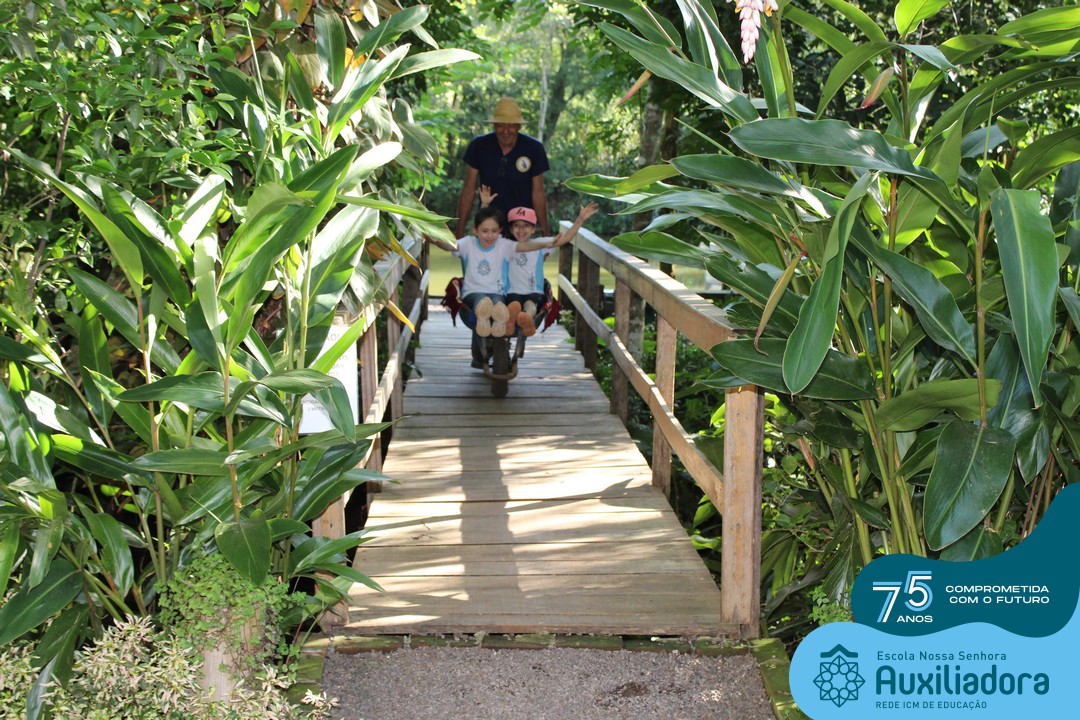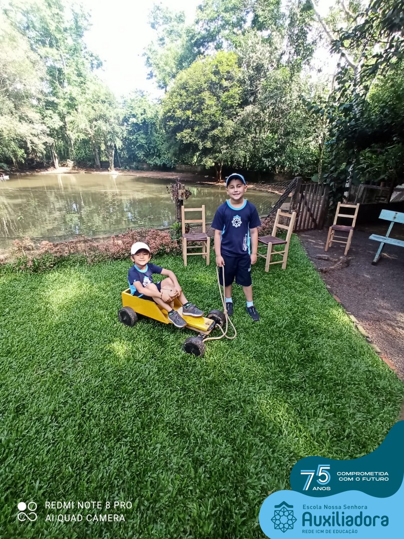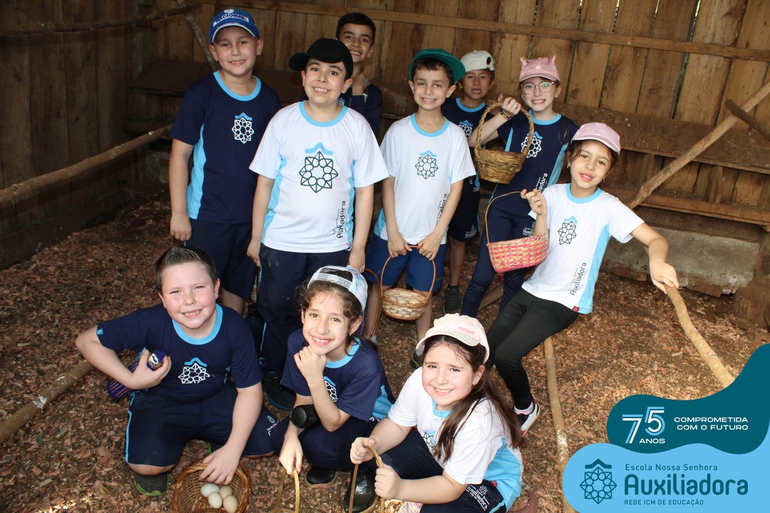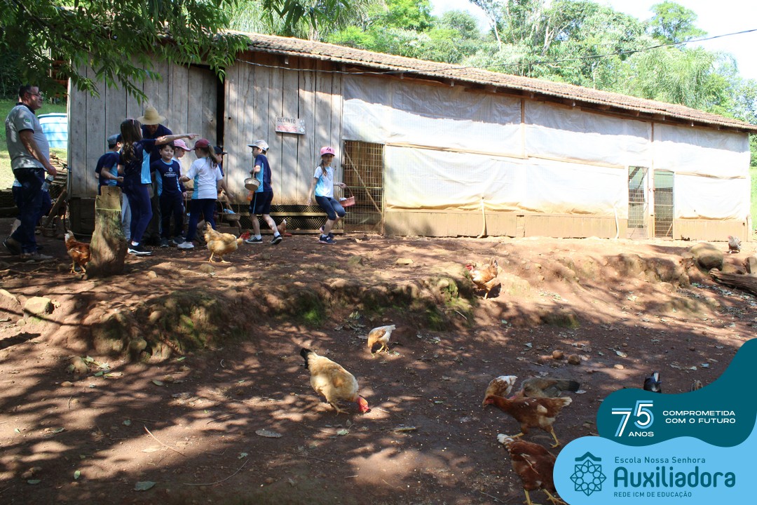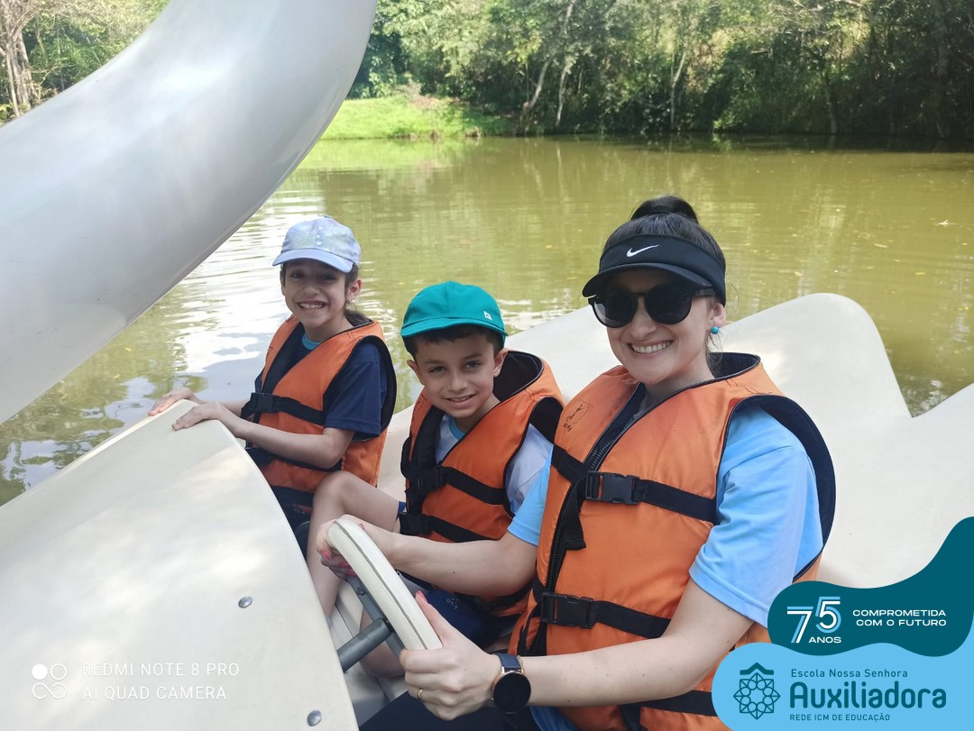 Entre os momentos de diversão, as crianças fizeram a coleta de ovos no galinheiro, interagiram com animais, fizeram uma trilha em meio à natureza, enquanto aprendiam sobre preservação e ecologia. Também não faltou risadas e alegria com brincadeiras de perna de pau, passeio de pedalinho e no carrinho, além de um piquenique para desfrutar da companhia dos colegas e professores.