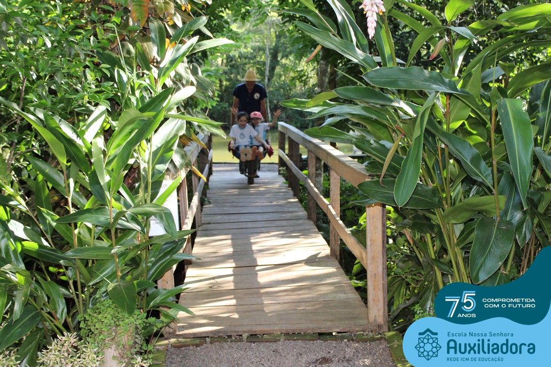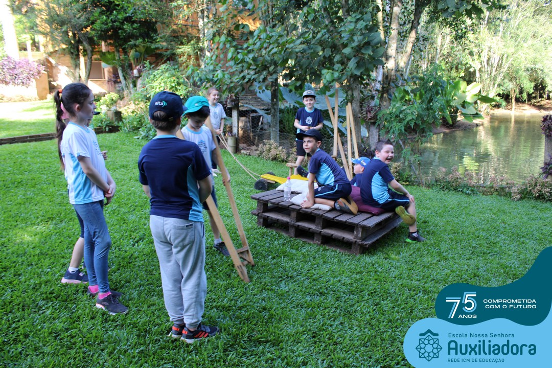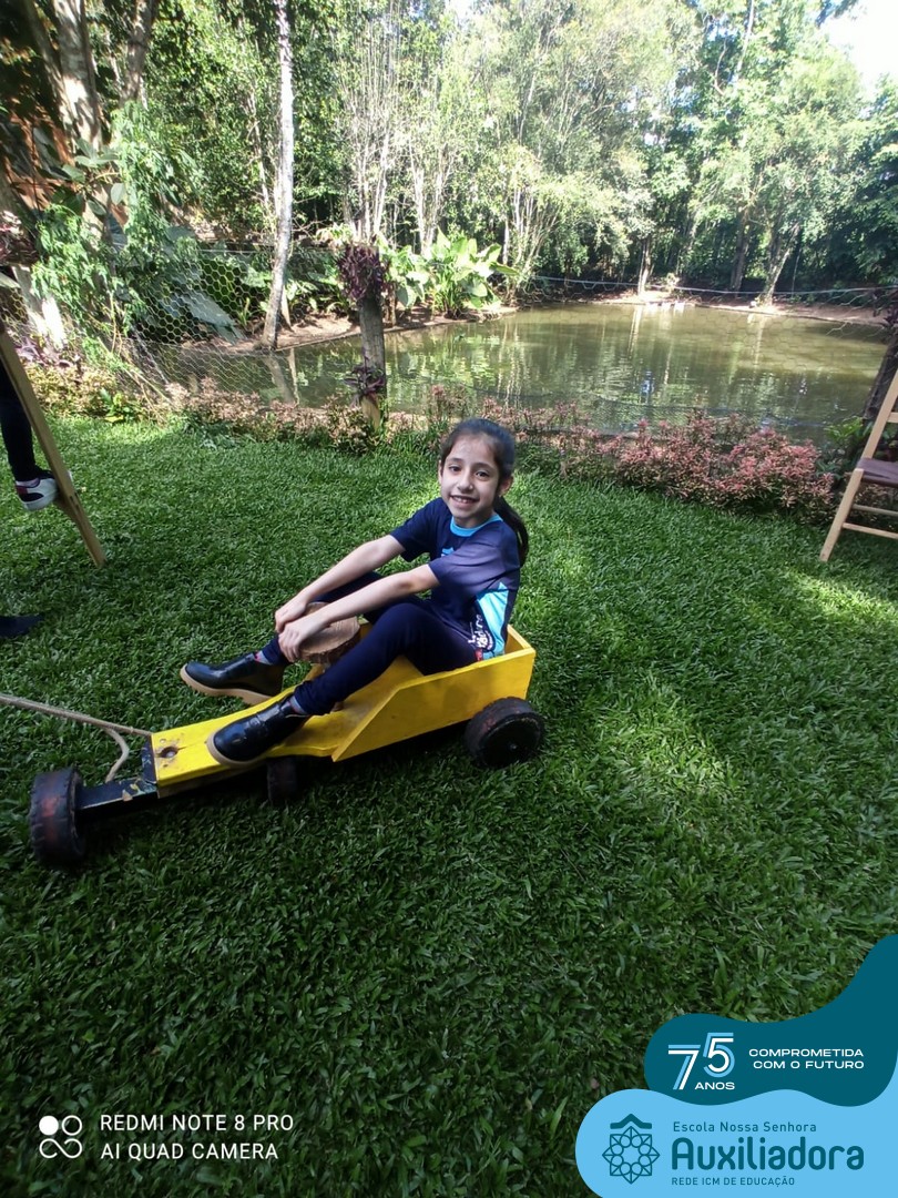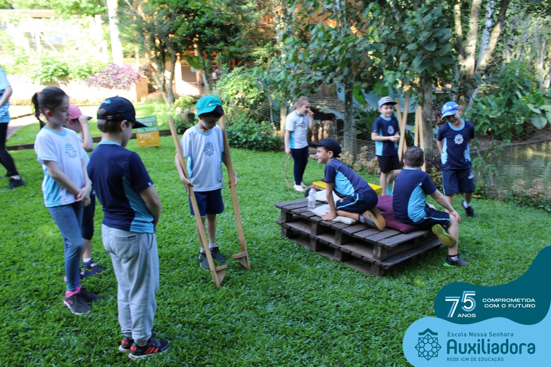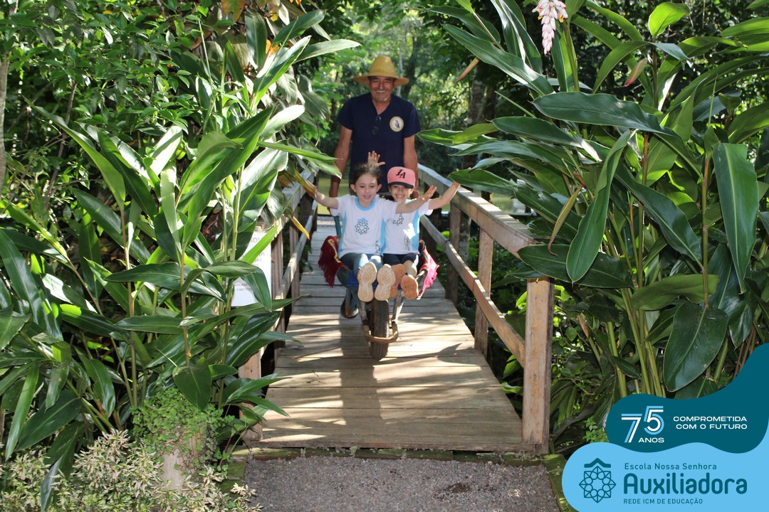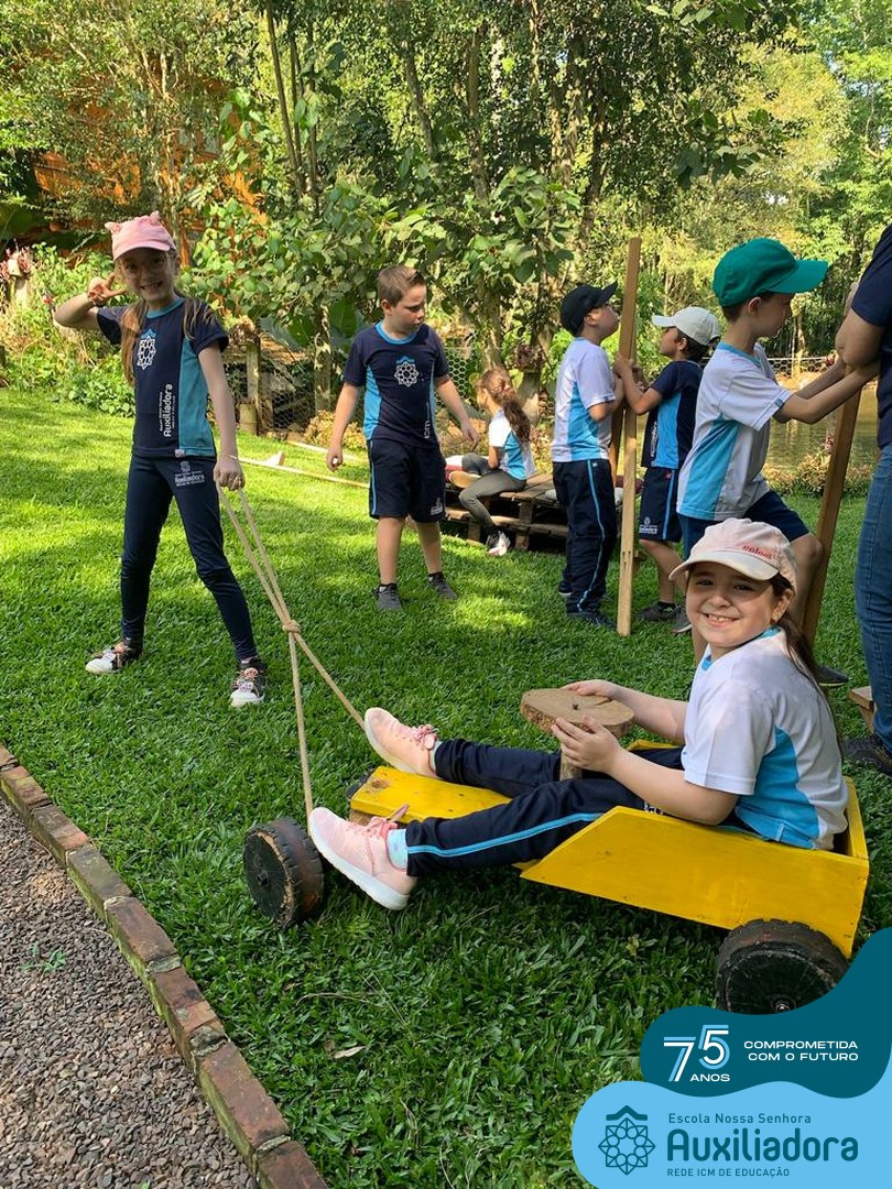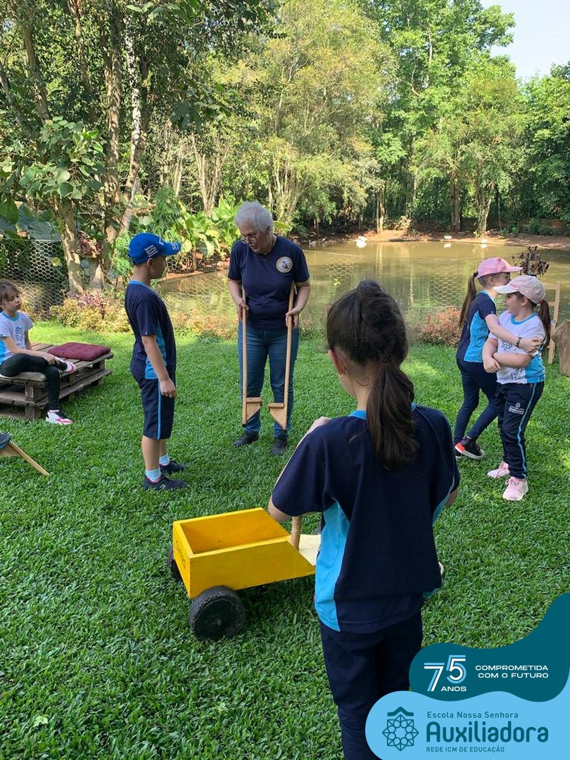Entre os momentos de diversão, as crianças fizeram a coleta de ovos no galinheiro, interagiram com animais, fizeram uma trilha em meio à natureza, enquanto aprendiam sobre preservação e ecologia. Também não faltou risadas e alegria com brincadeiras de perna de pau, passeio de pedalinho e no carrinho, além de um piquenique para desfrutar da companhia dos colegas e professores.