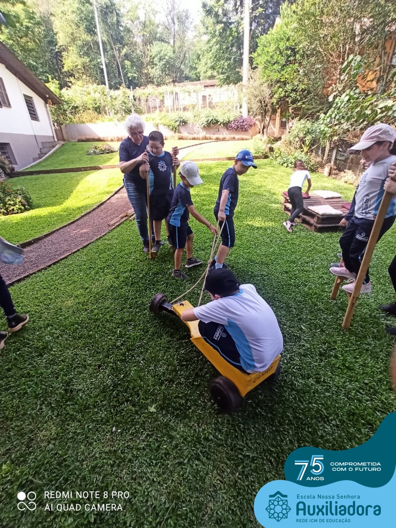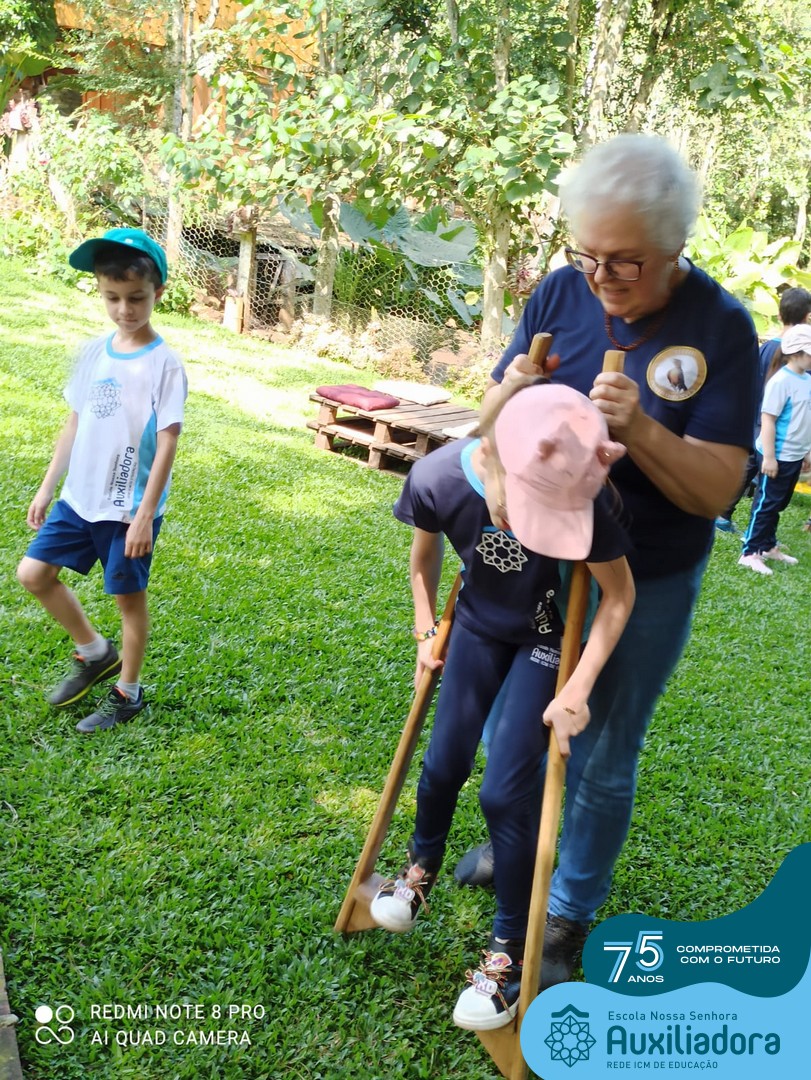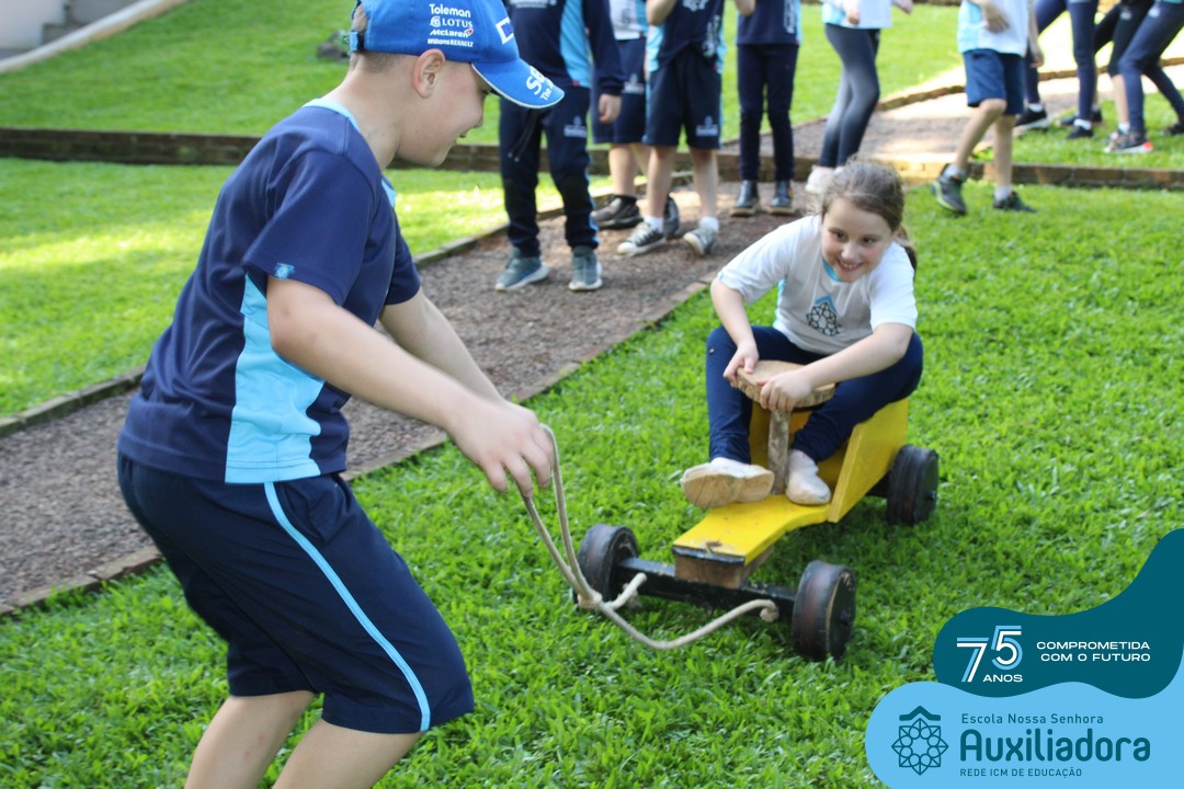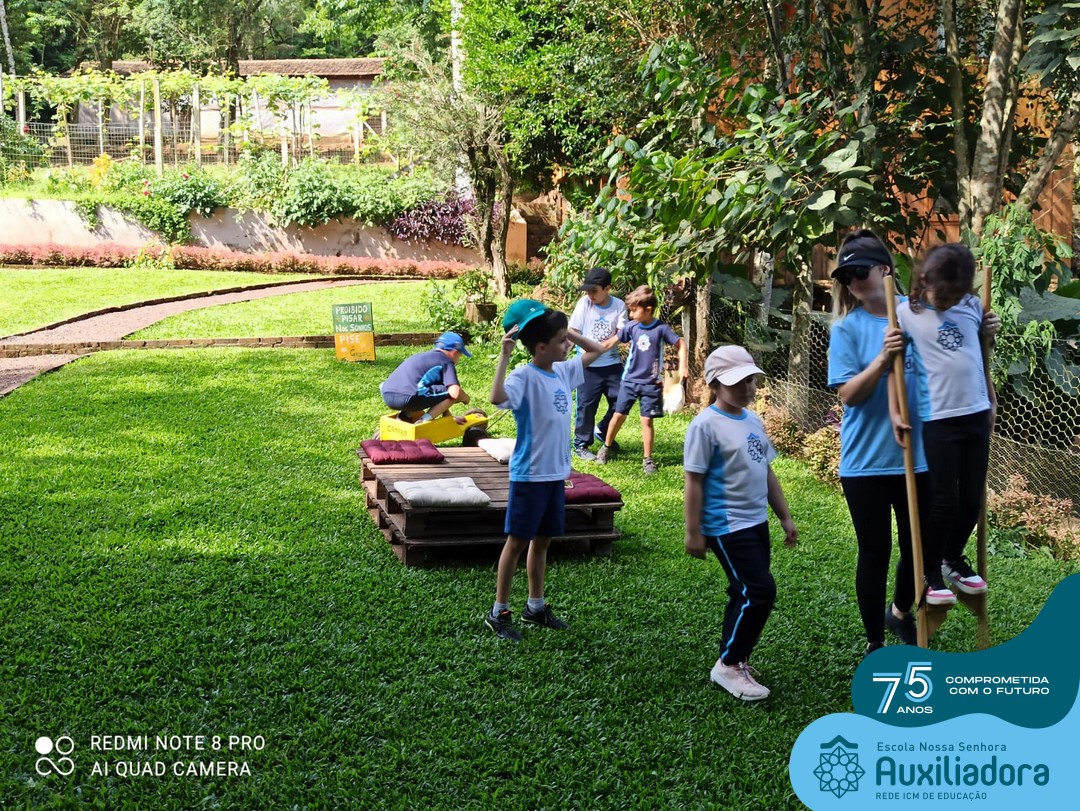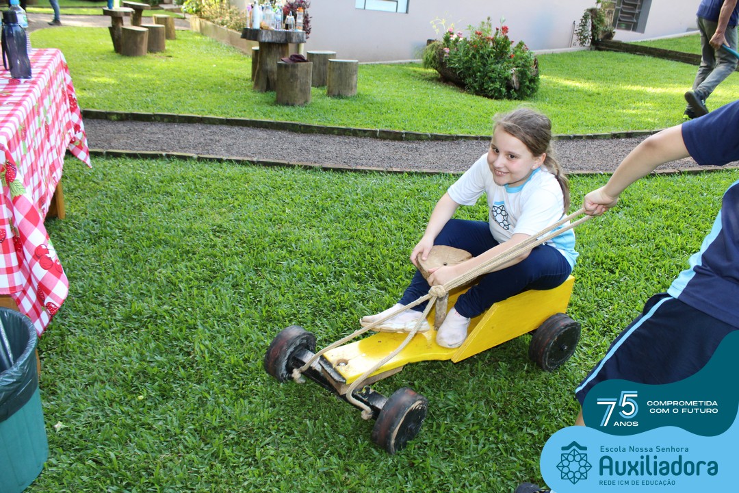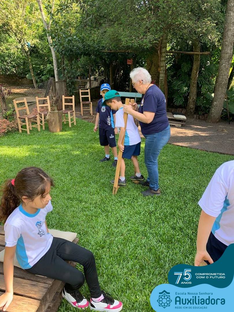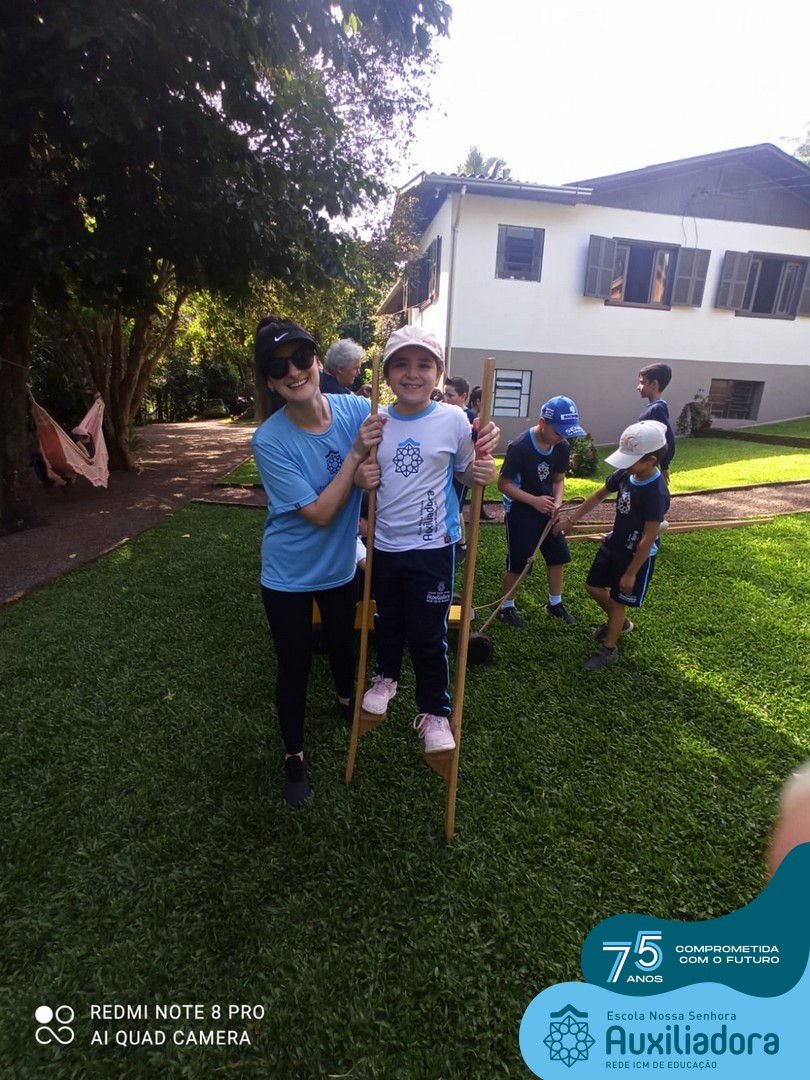 Entre os momentos de diversão, as crianças fizeram a coleta de ovos no galinheiro, interagiram com animais, fizeram uma trilha em meio à natureza, enquanto aprendiam sobre preservação e ecologia. Também não faltou risadas e alegria com brincadeiras de perna de pau, passeio de pedalinho e no carrinho, além de um piquenique para desfrutar da companhia dos colegas e professores.