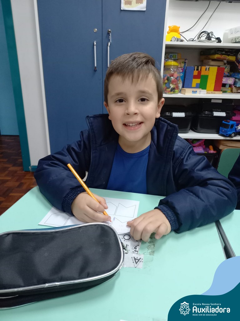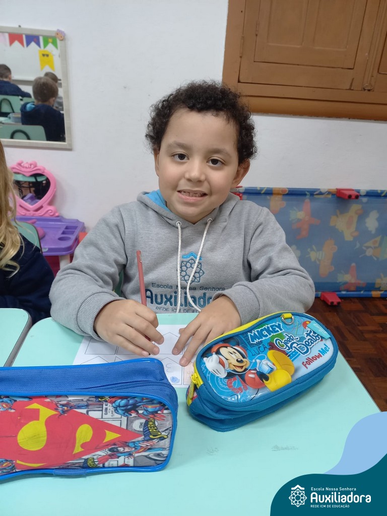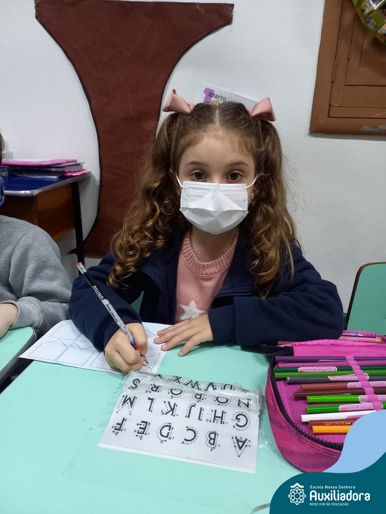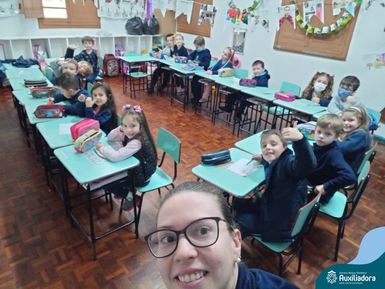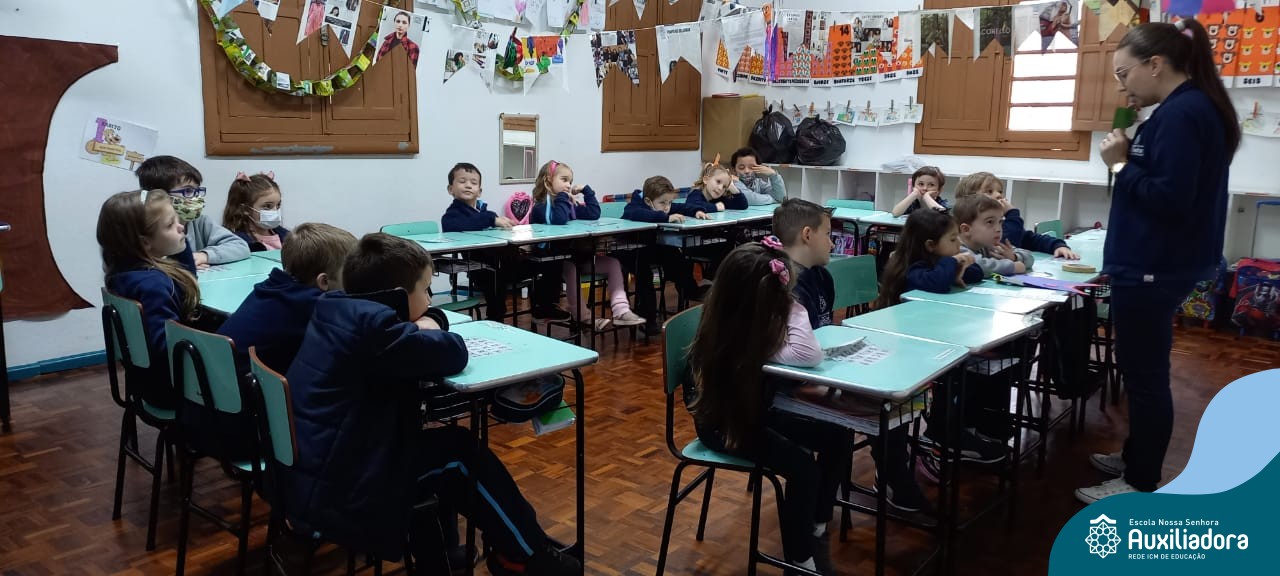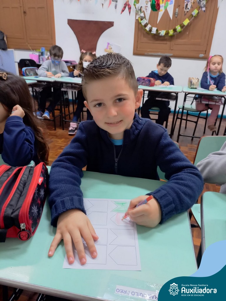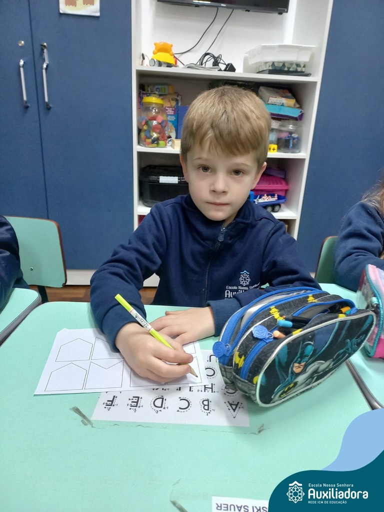 As turmas do Pré 2 trabalharam um poema junino, onde cada bandeirinha tinha sua cor e seu tema. Após ouvirem o poema, trabalhamos as letras iniciais das cores e sua sequência, bem como suas rimas.