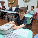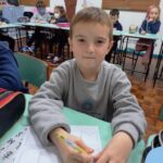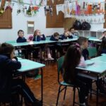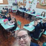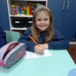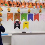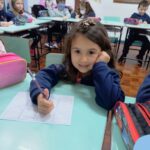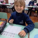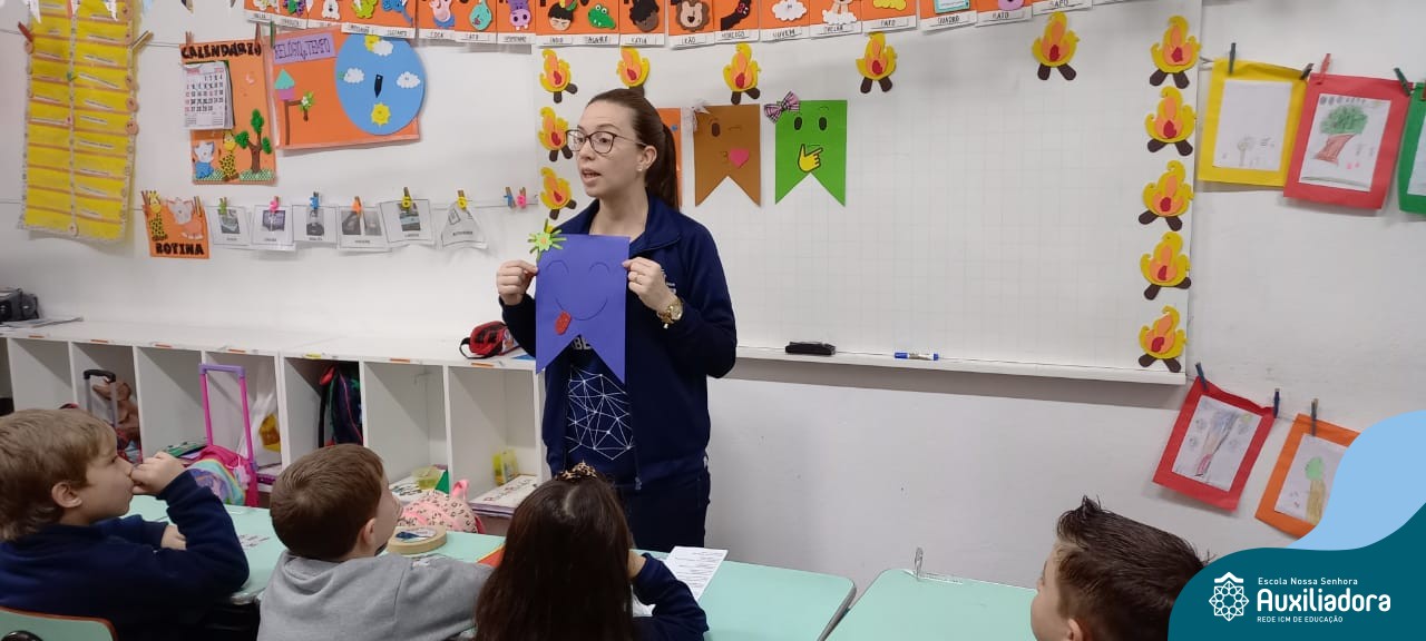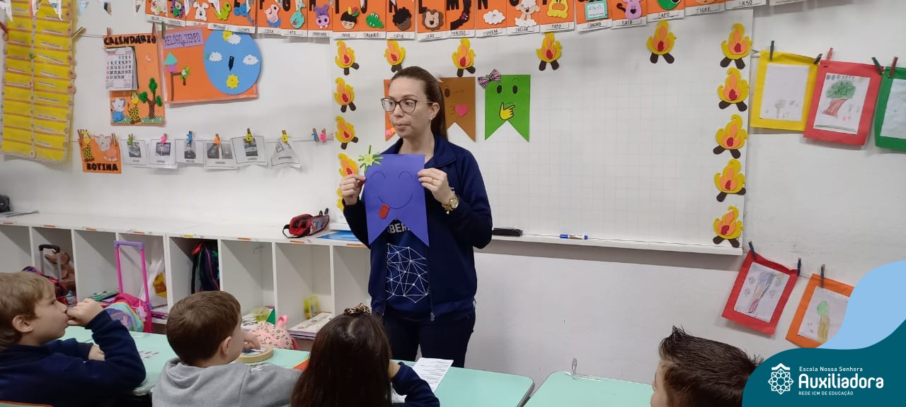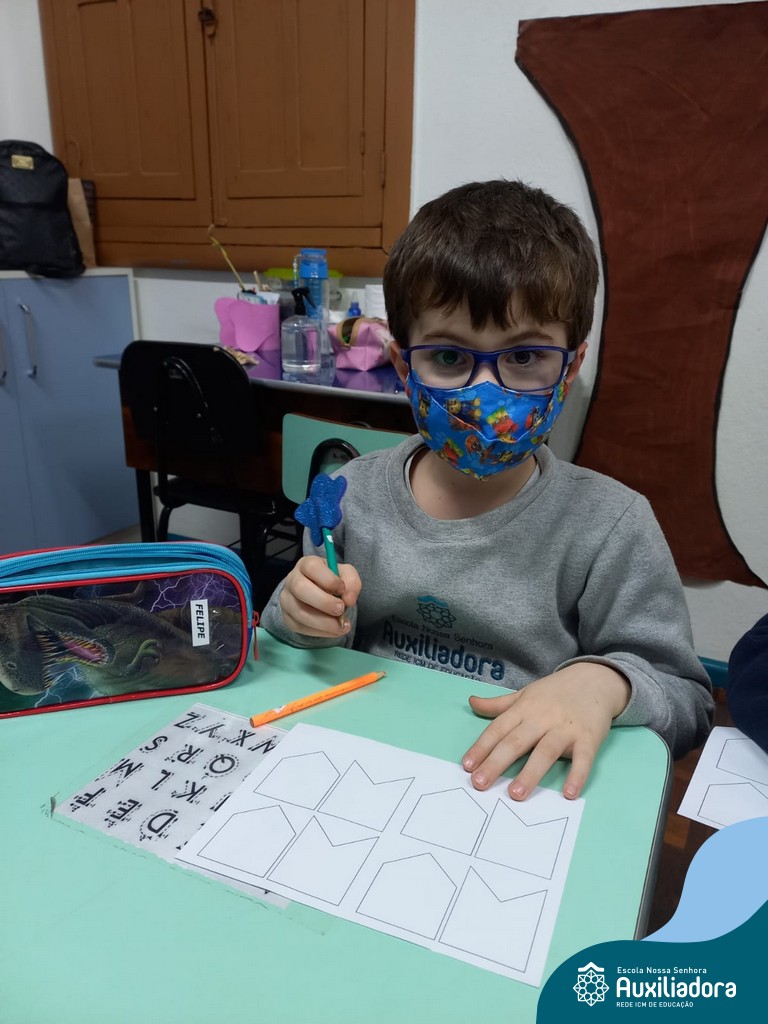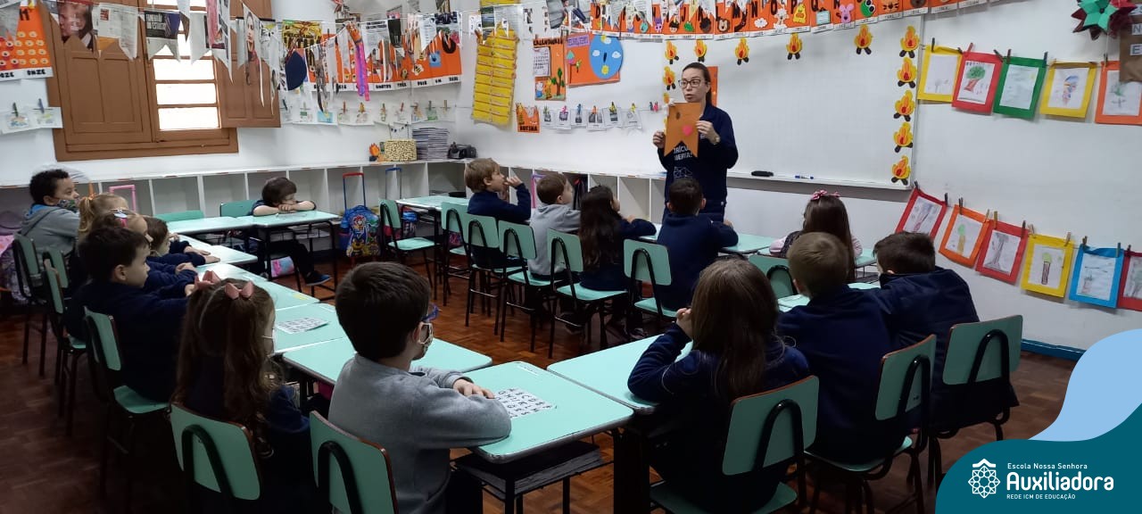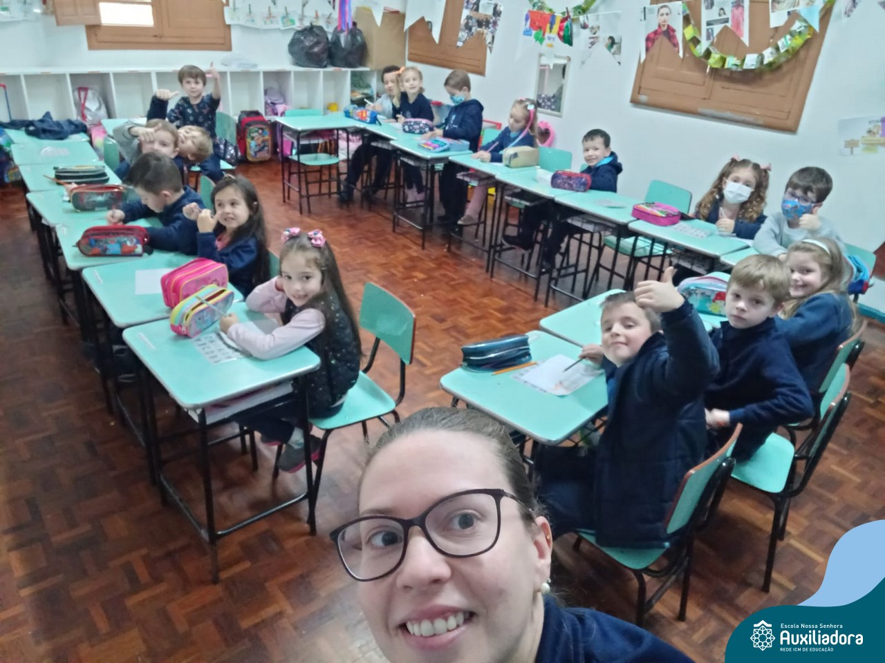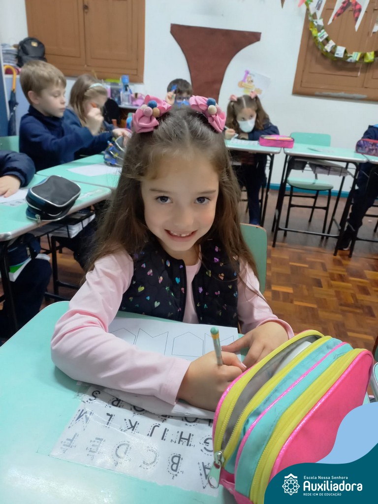 As turmas do Pré 2 trabalharam um poema junino, onde cada bandeirinha tinha sua cor e seu tema. Após ouvirem o poema, trabalhamos as letras iniciais das cores e sua sequência, bem como suas rimas.