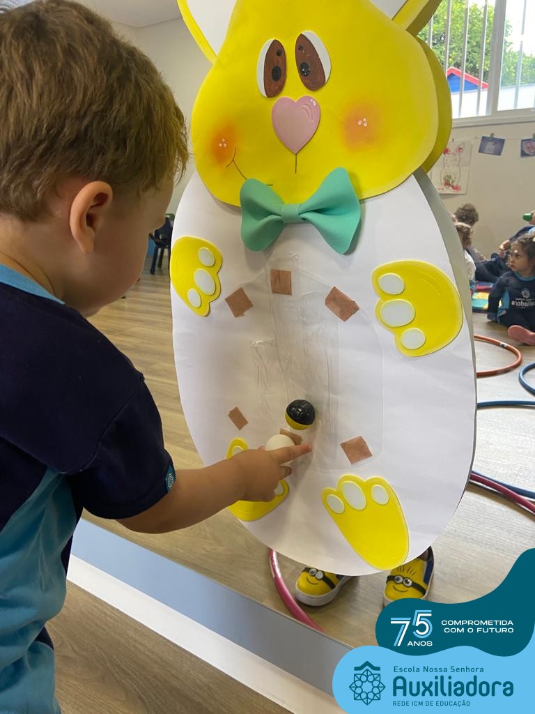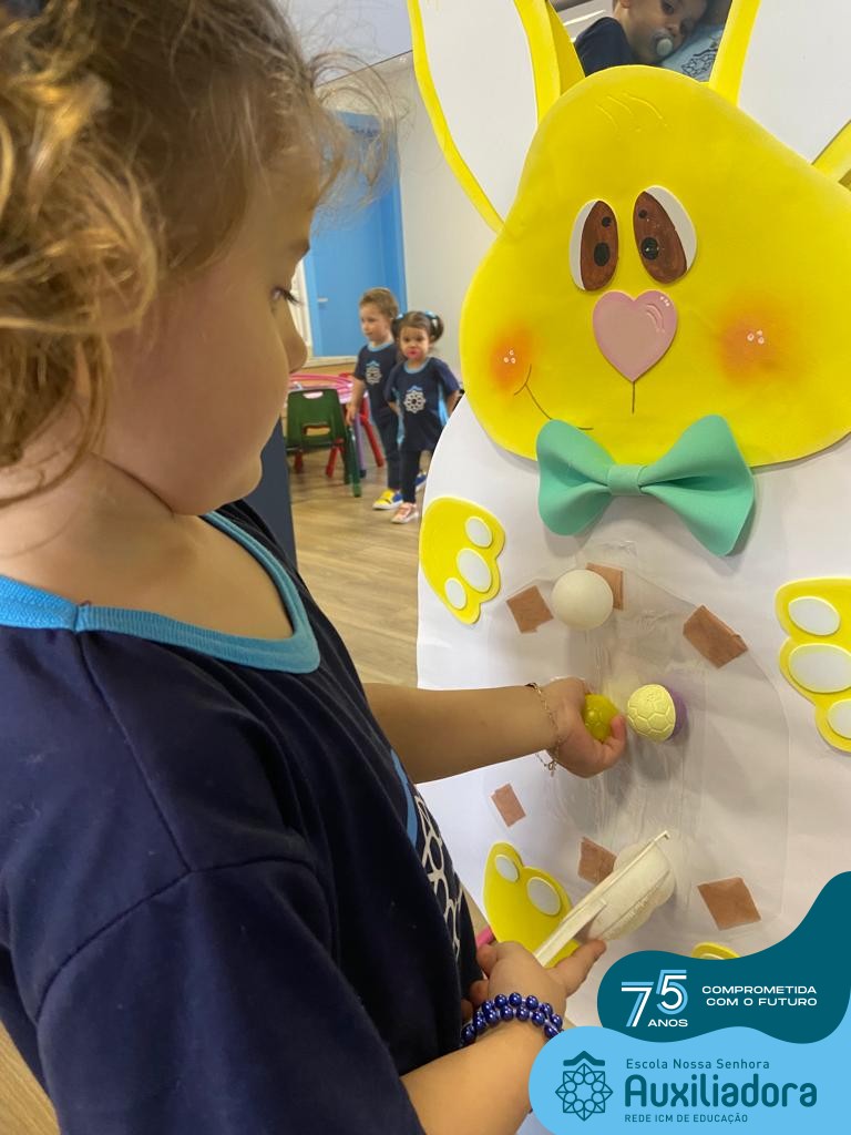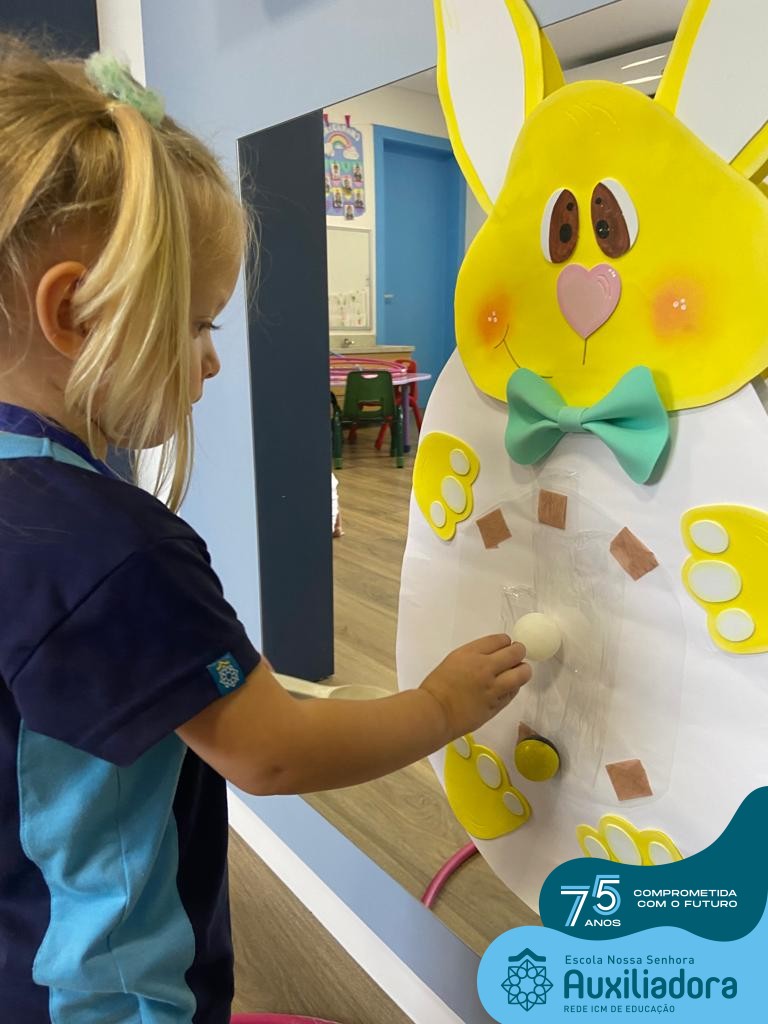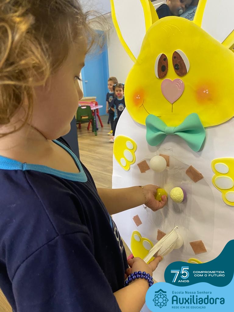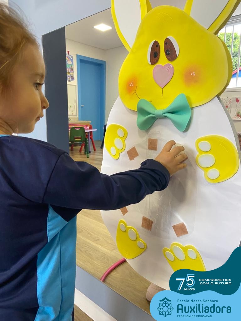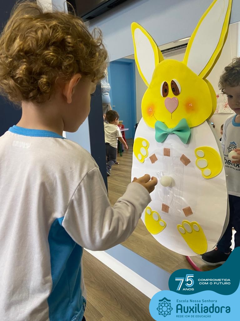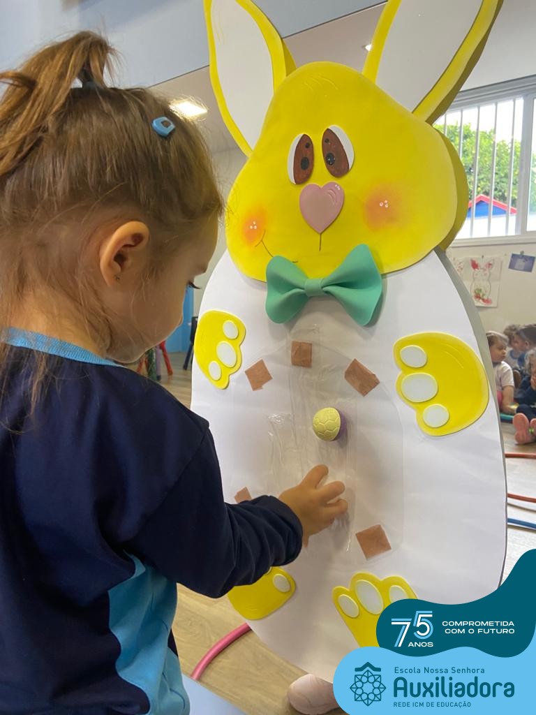 As turmas do Maternal 1, durante o projeto de Páscoa, refletiram sobre o verdadeiro significado desta data. A partir de atividades lúdicas, histórias, cantigas e brincadeiras foi oportunizado a vivência de valores, como a solidariedade e a fraternidade entre as crianças.