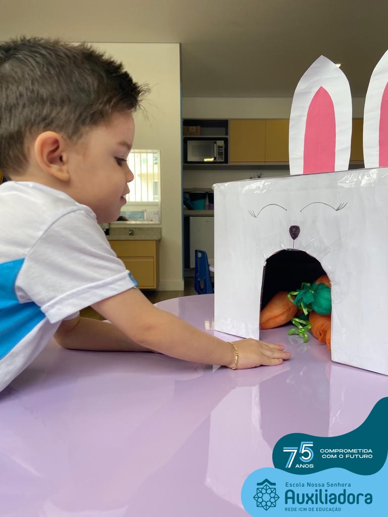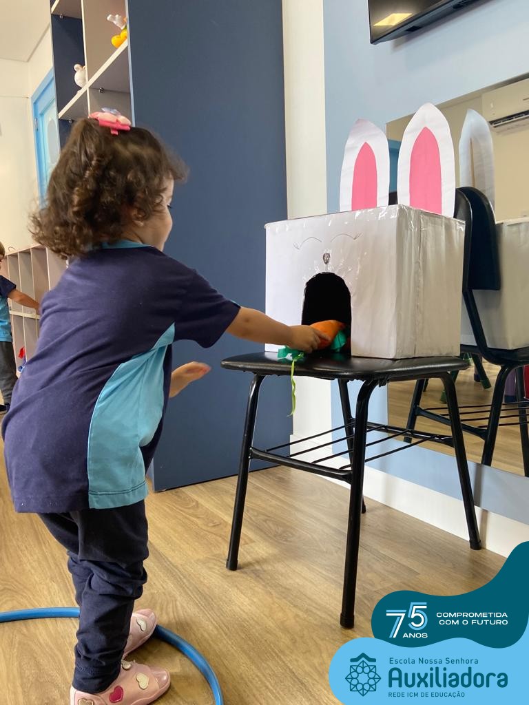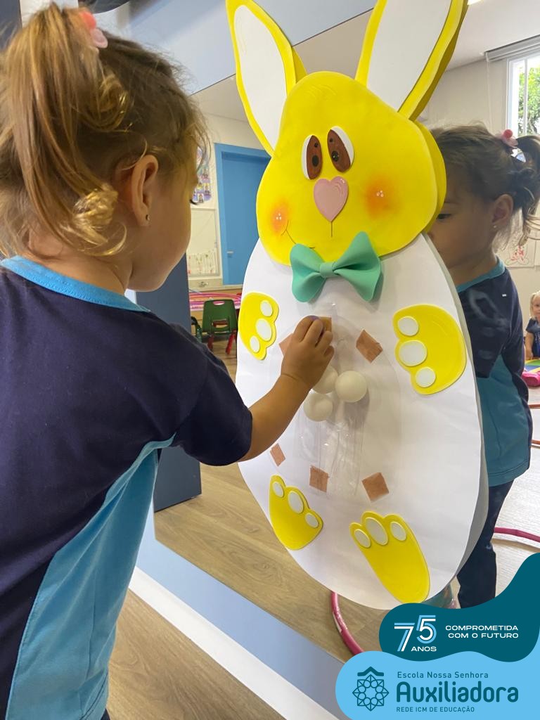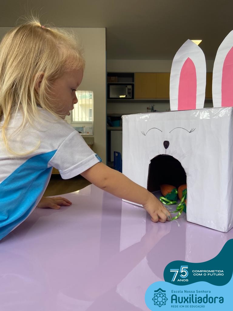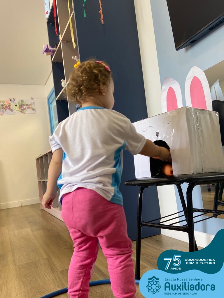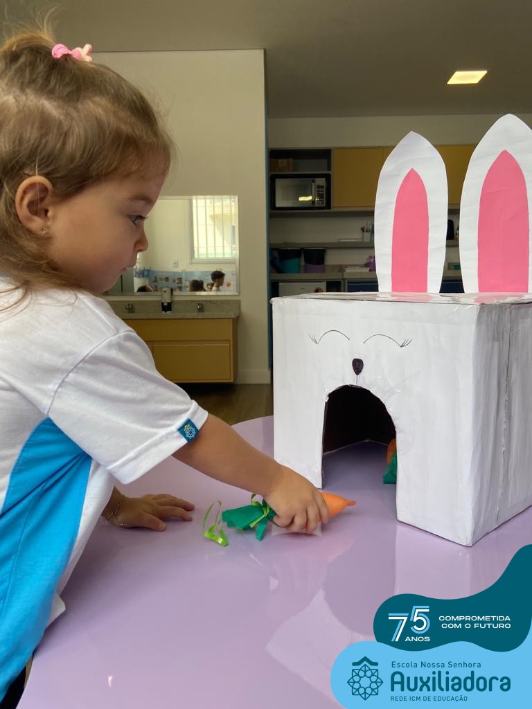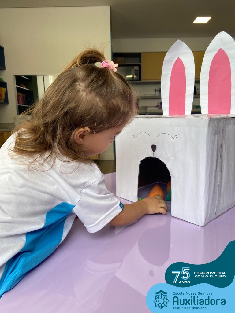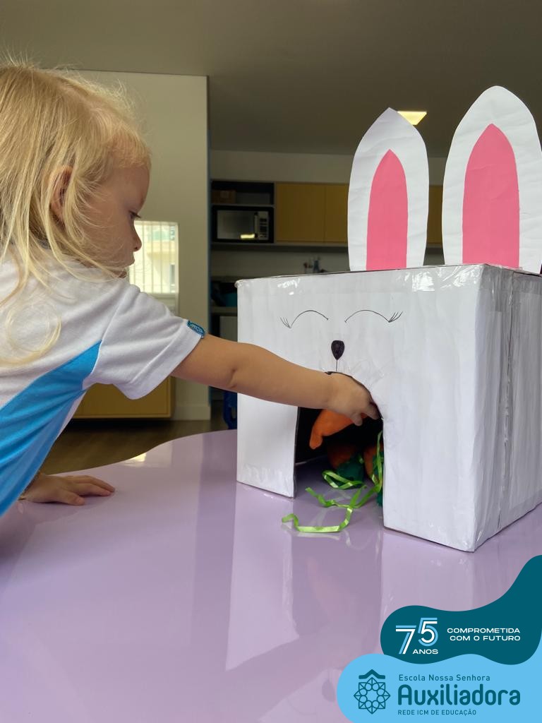 As turmas do Maternal 1, durante o projeto de Páscoa, refletiram sobre o verdadeiro significado desta data. A partir de atividades lúdicas, histórias, cantigas e brincadeiras foi oportunizado a vivência de valores, como a solidariedade e a fraternidade entre as crianças.