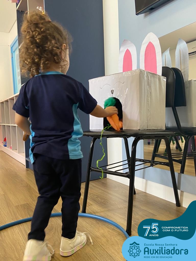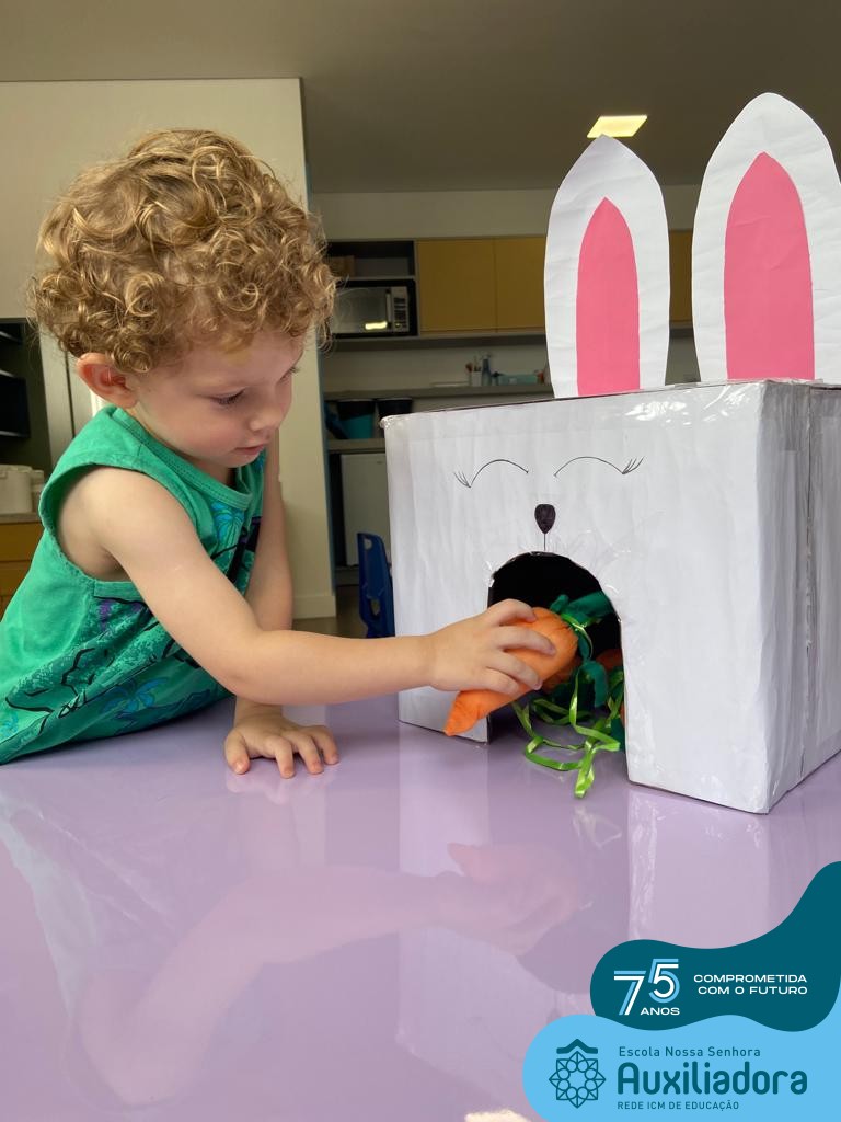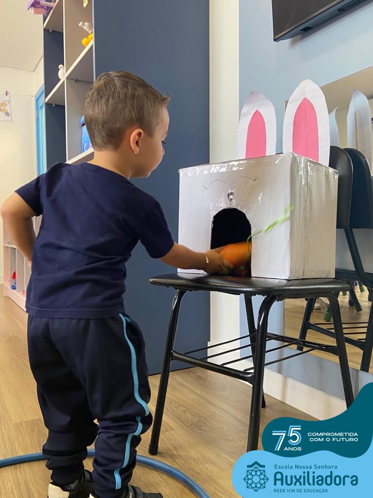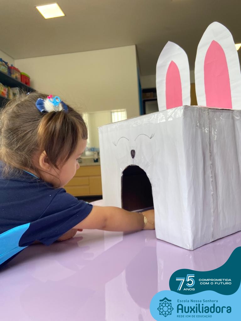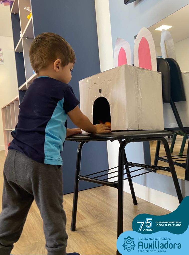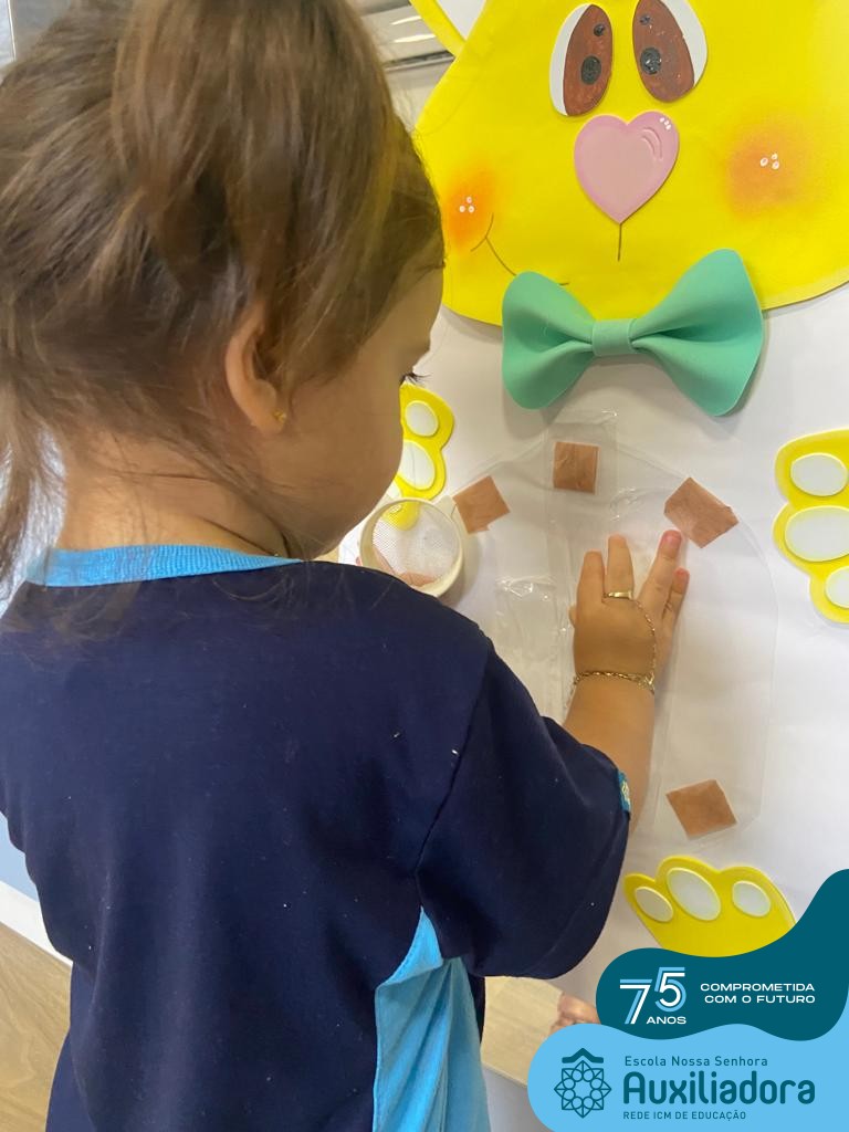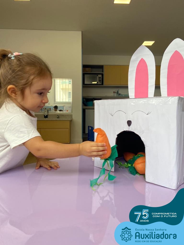 As turmas do Maternal 1, durante o projeto de Páscoa, refletiram sobre o verdadeiro significado desta data. A partir de atividades lúdicas, histórias, cantigas e brincadeiras foi oportunizado a vivência de valores, como a solidariedade e a fraternidade entre as crianças.