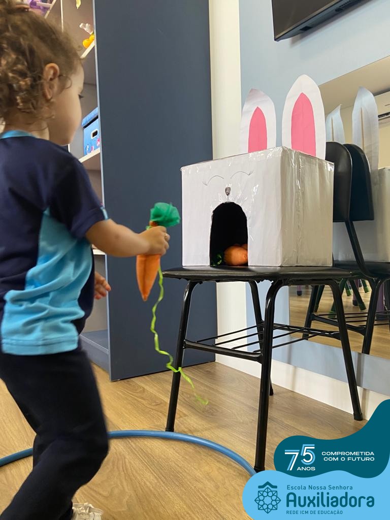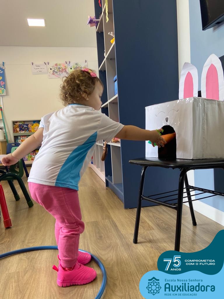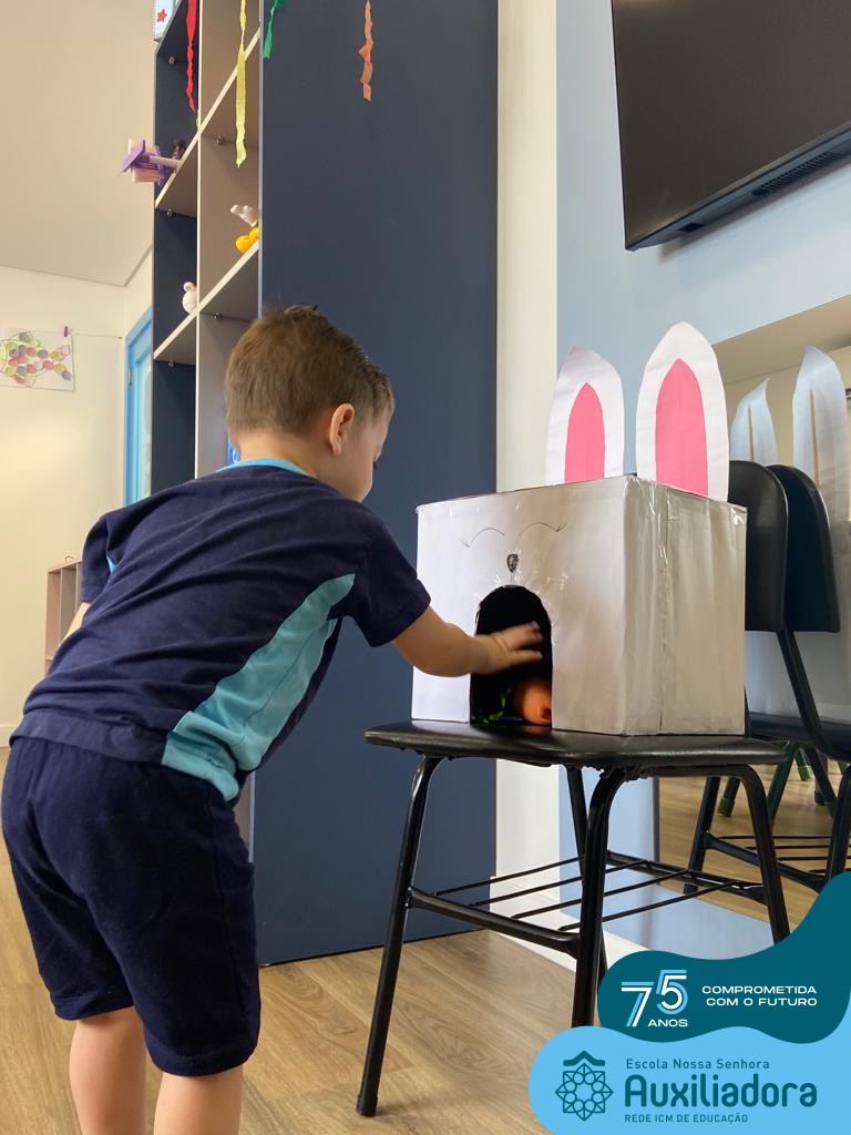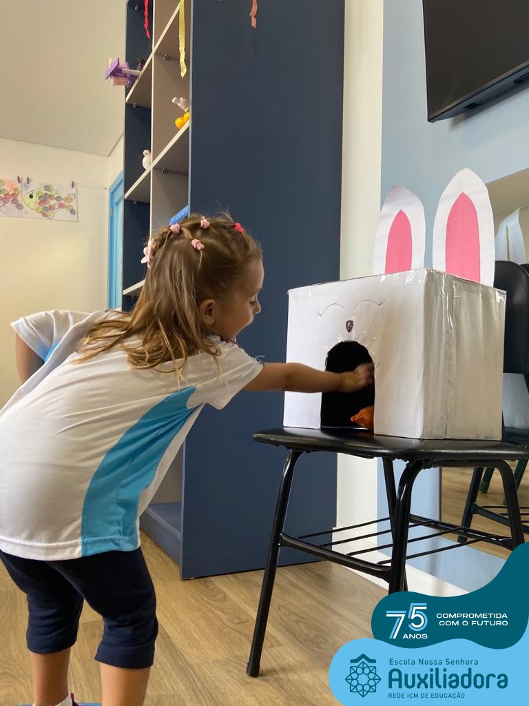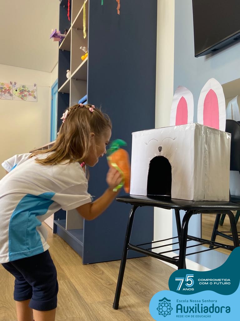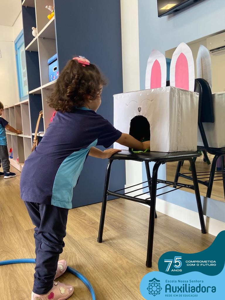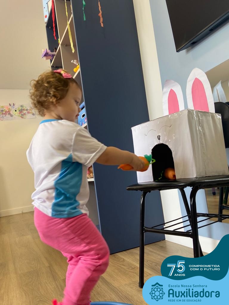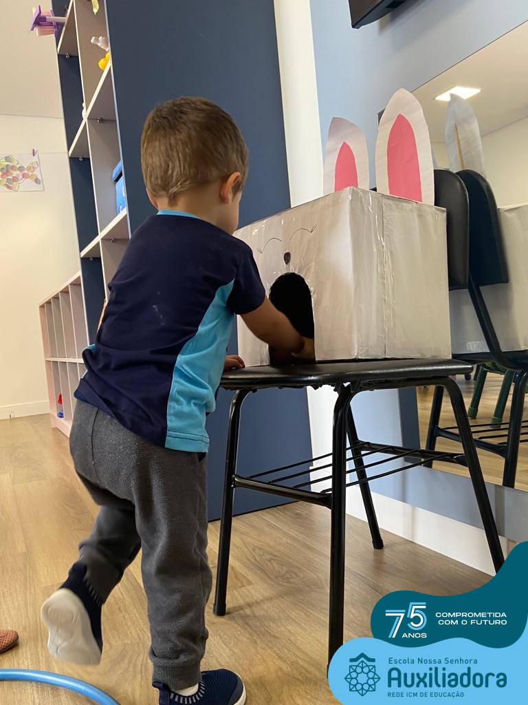 As turmas do Maternal 1, durante o projeto de Páscoa, refletiram sobre o verdadeiro significado desta data. A partir de atividades lúdicas, histórias, cantigas e brincadeiras foi oportunizado a vivência de valores, como a solidariedade e a fraternidade entre as crianças.