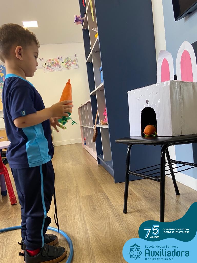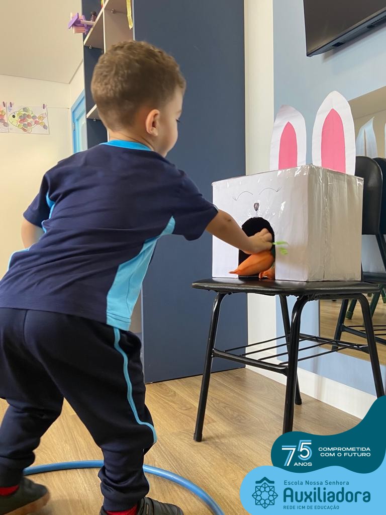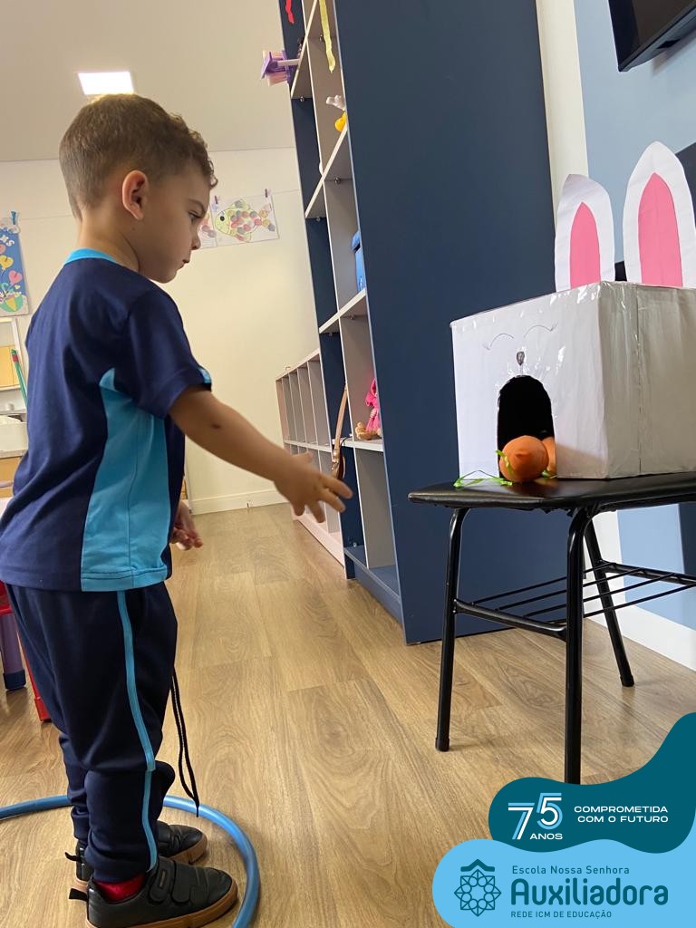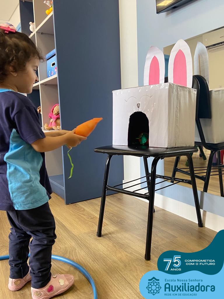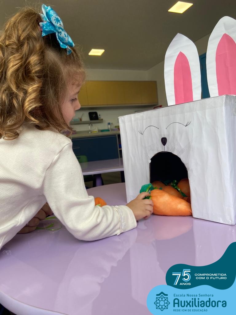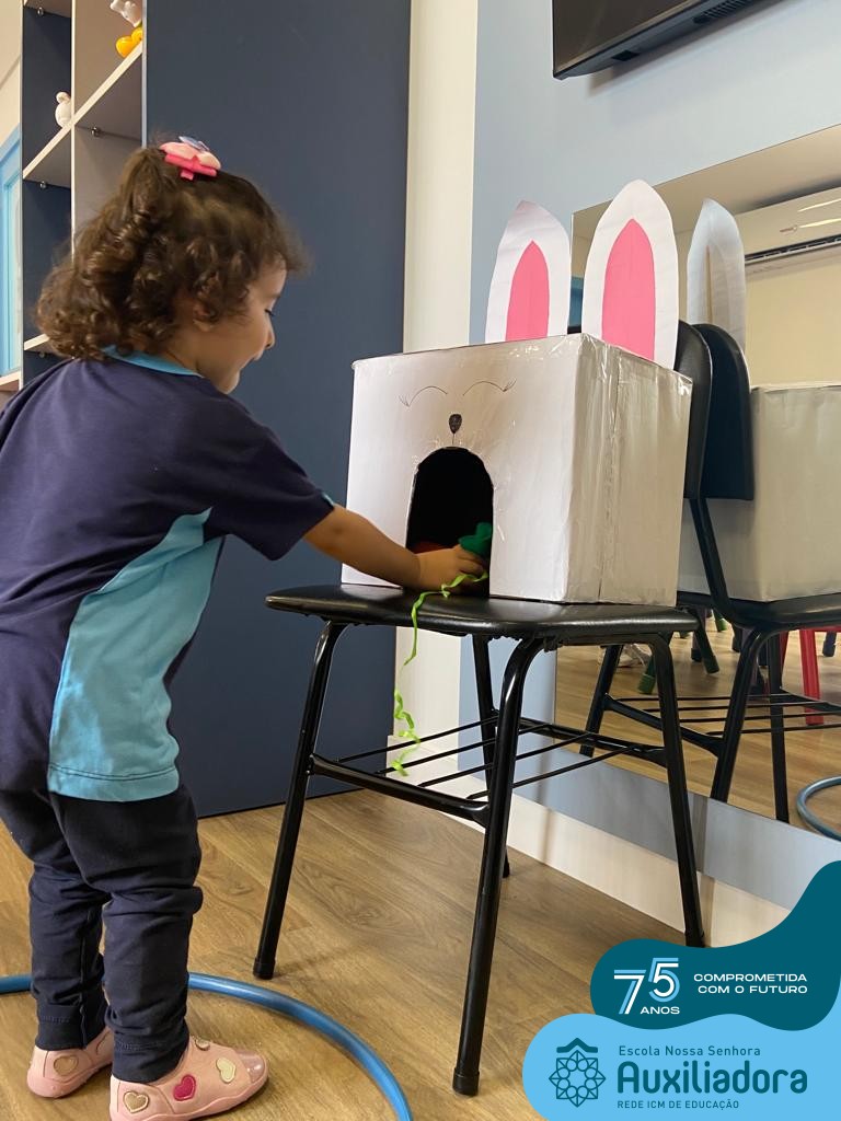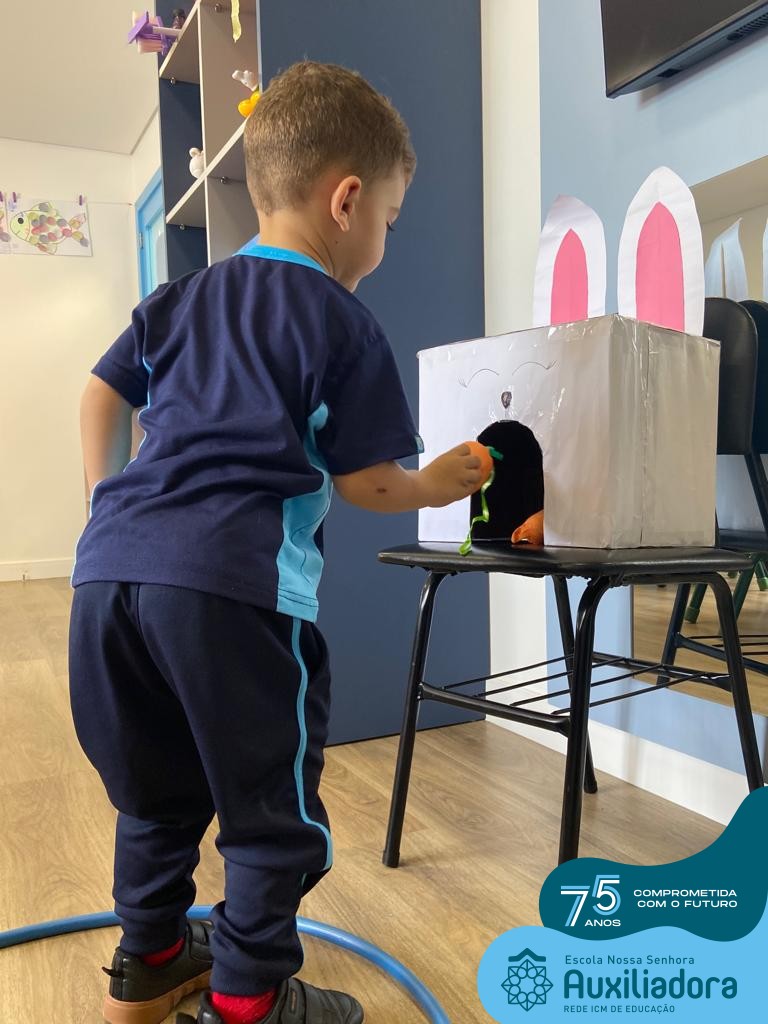 As turmas do Maternal 1, durante o projeto de Páscoa, refletiram sobre o verdadeiro significado desta data. A partir de atividades lúdicas, histórias, cantigas e brincadeiras foi oportunizado a vivência de valores, como a solidariedade e a fraternidade entre as crianças.
