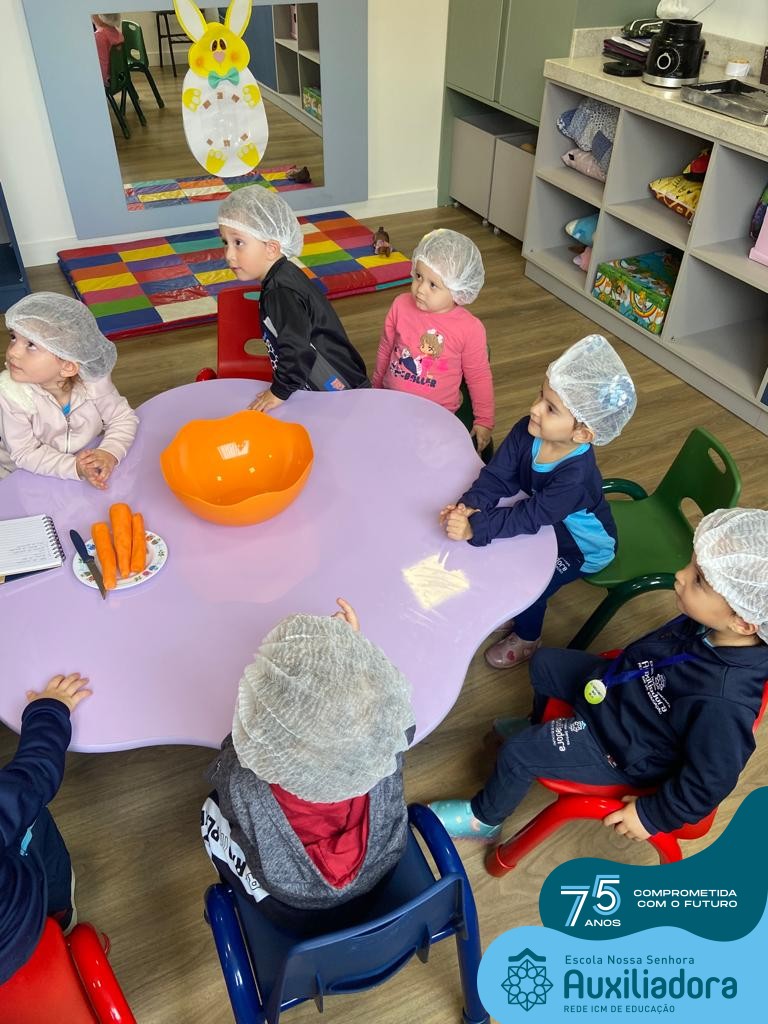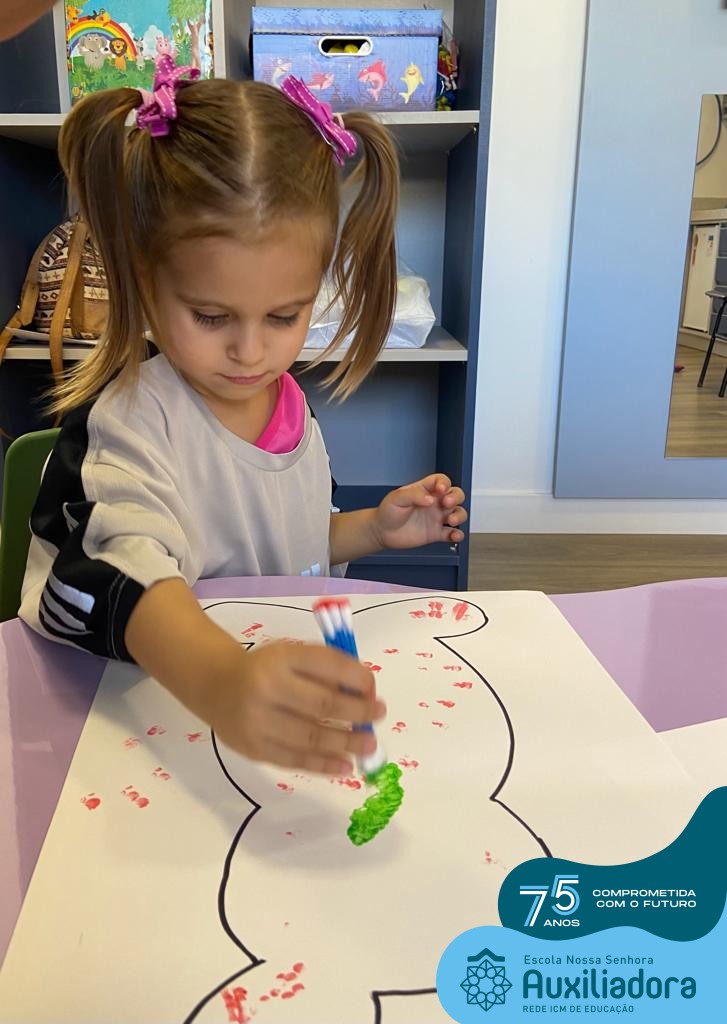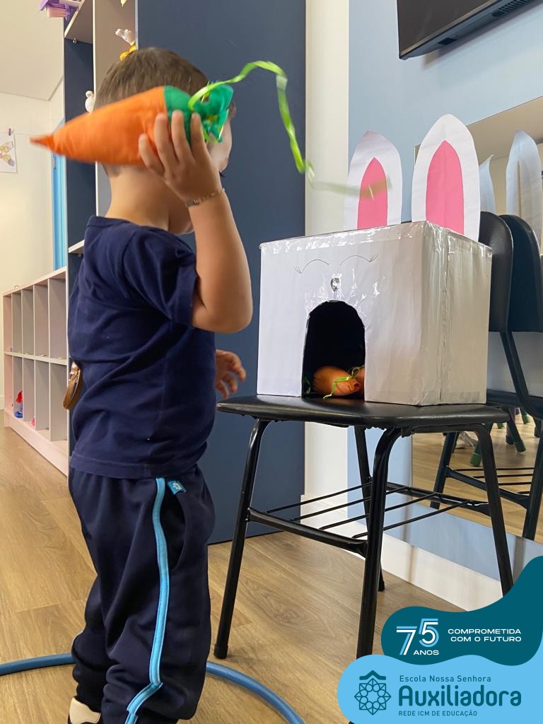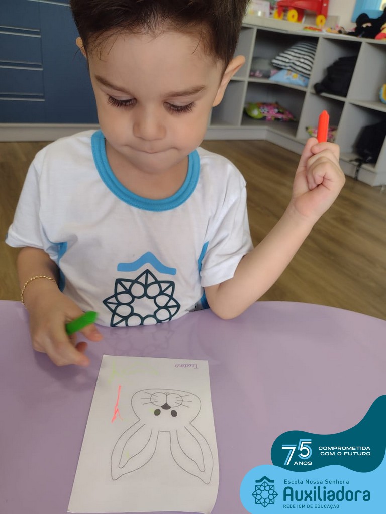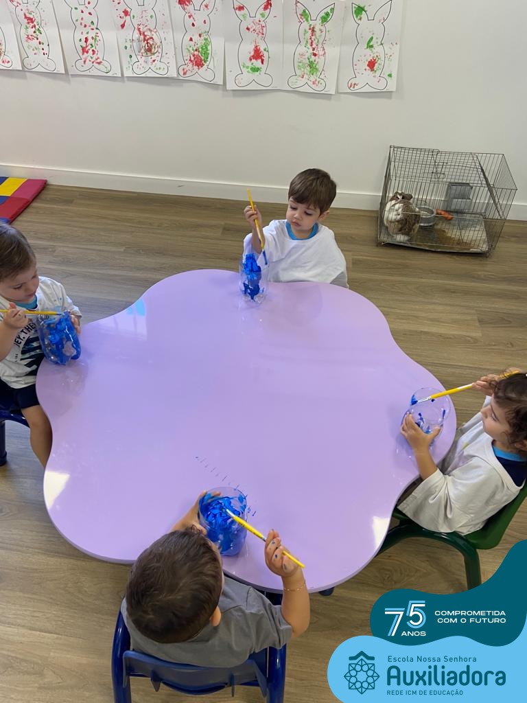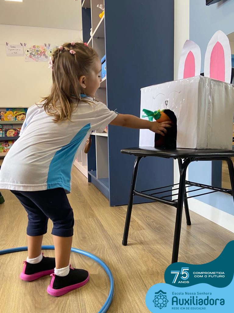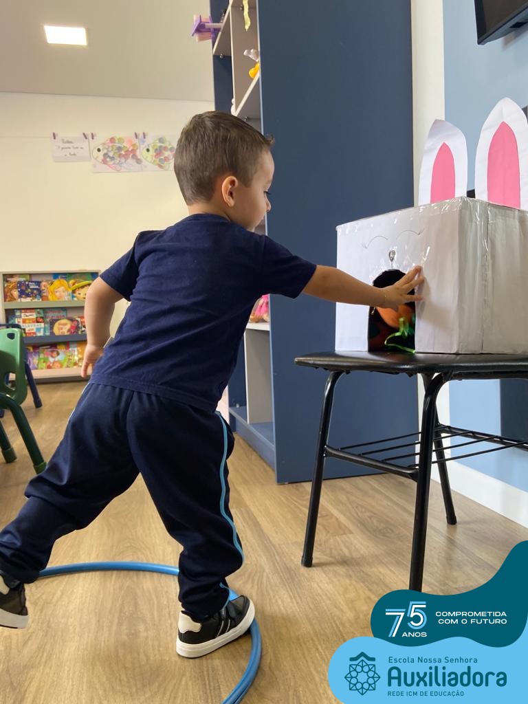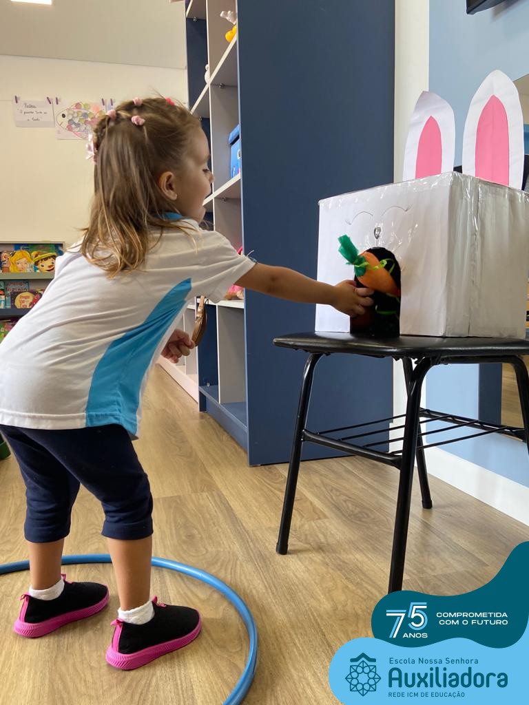 As turmas do Maternal 1, durante o projeto de Páscoa, refletiram sobre o verdadeiro significado desta data. A partir de atividades lúdicas, histórias, cantigas e brincadeiras foi oportunizado a vivência de valores, como a solidariedade e a fraternidade entre as crianças.