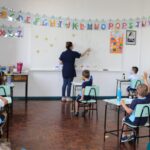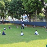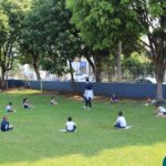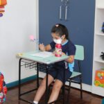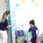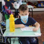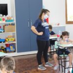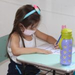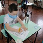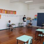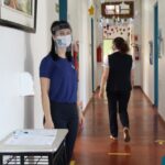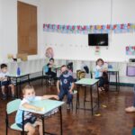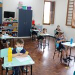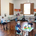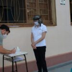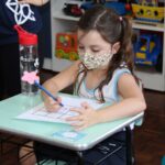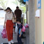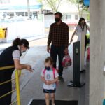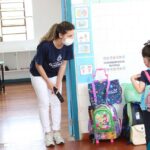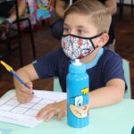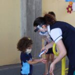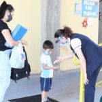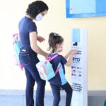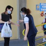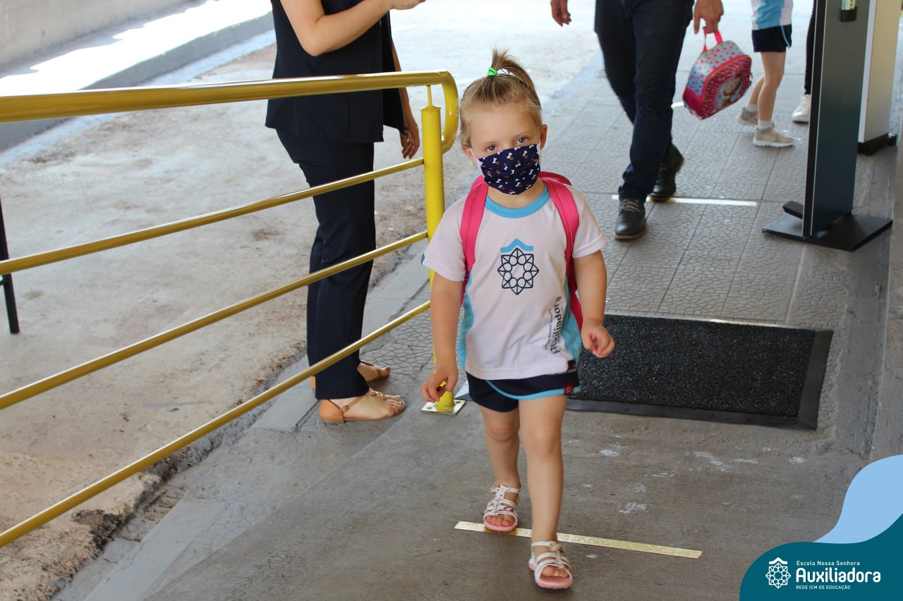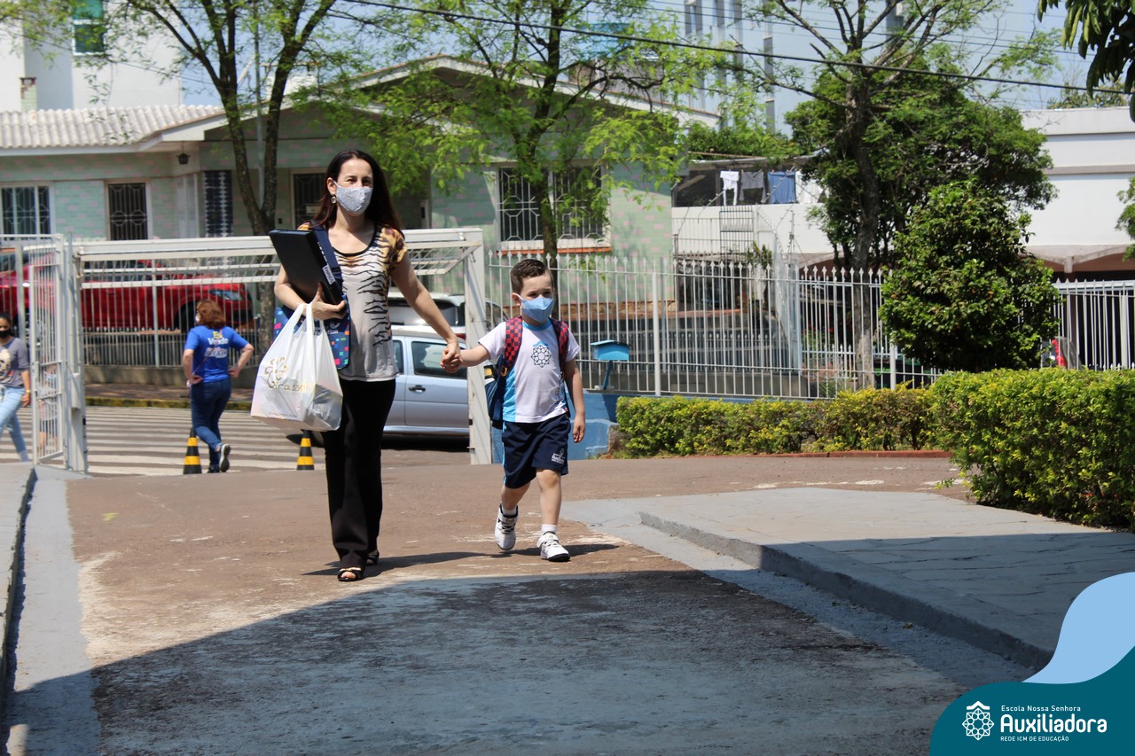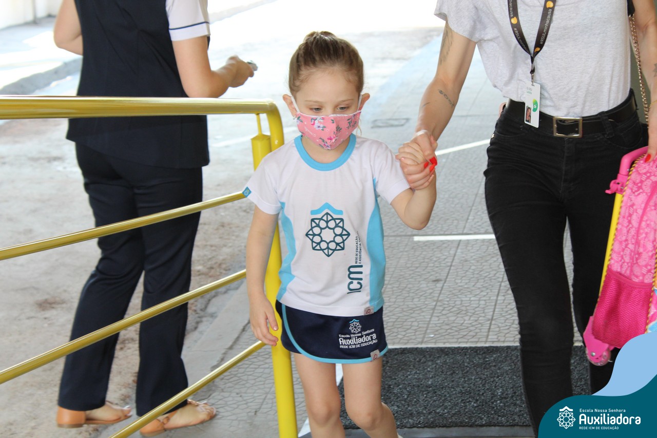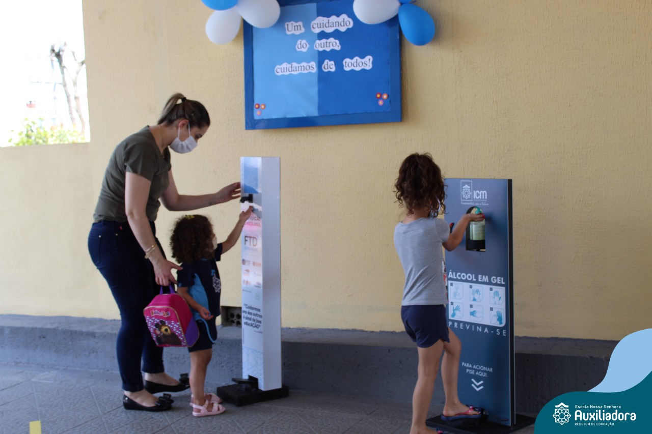 Os alunos e seus responsável passaram por todos os protocolos de segurança e prevenção ao Covid 19 na entrada da escola.