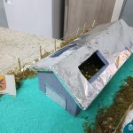 ā Usando o musgo e umas pedrinhas verdes fiz o gramado que fica em volta do aviĆ”rio, recortei um rolo de papel toalha em dois pedaƧos e fiz os silos enrolados em papel alumĆnio. No final de tudo isso imprimi imagens da porta e dos exaustores, após isso acabei minha maquete.”