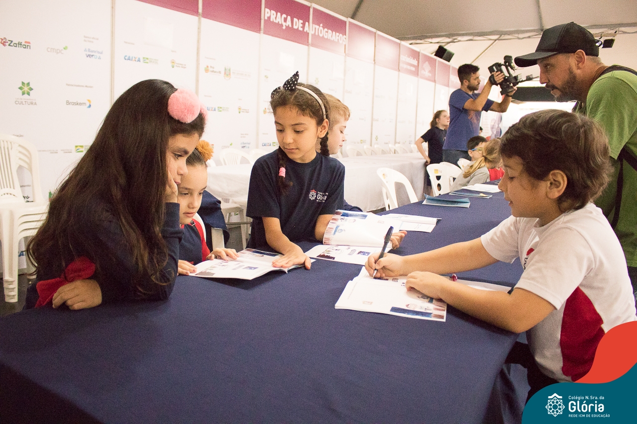 E como manda o figurino, as publicações foram lançadas no mesmo lugar onde ficam os grandes autores, na Praça de Autógrafos. A comunidade do Colégio Glória, familiares e amigos dos autores prestigiaram o evento e receberam seus livros autografados. Todo momento foi registrado pela Tv Band RS que produziu reportagem. [Veja abaixo].