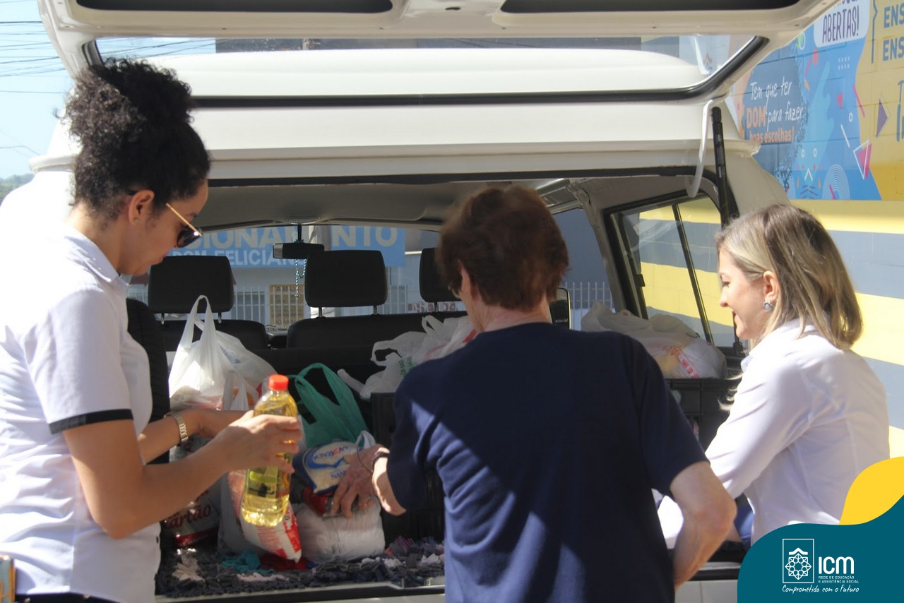 Vivendo o espírito de ser uma rede, as doações foram encaminhadas para o Instituto Providência, de Porto Alegre/RS, unidade da Rede ICM de Assistência Social, obra que foi fundada e dirigida pela Bem-Aventurada Bárbara Maix. Com alegria, Andreza Lorenski, coordenadora dos Cursos Livre e de Etapa, fez a entrega das doações que foram recebidas pelas Irmã Angélica de Oliveira e Irmã Terezinha Lorenzato.