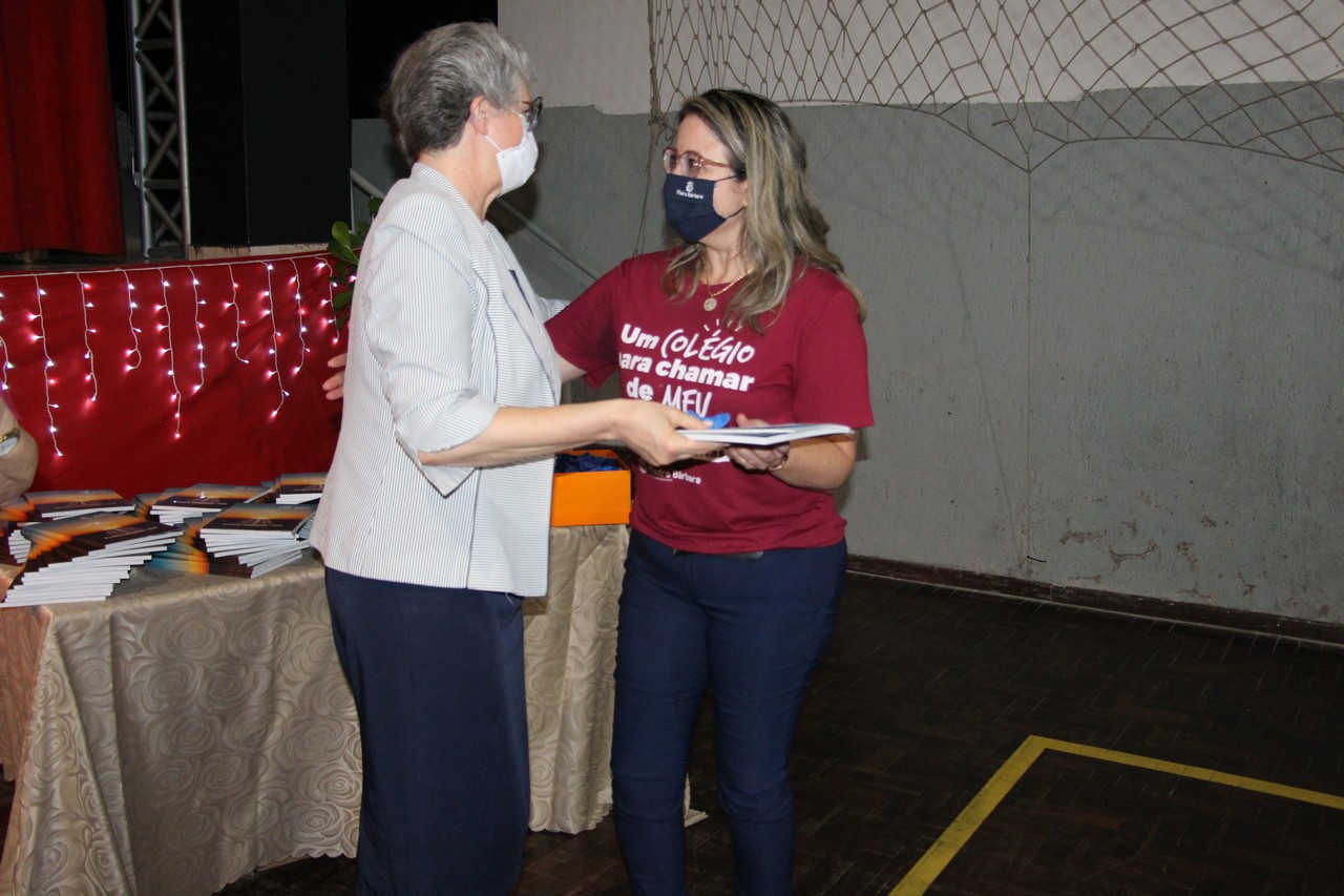 Finalizando a noite, um outro momento especial emocionou a todos: a comunidade escolar foi presenteada pela Irmã Elenar com uma imagem da Bem-Aventurada Bárbara Maix, que está de braços abertos em meio às crianças e adultos. A obra de arte, esculpida em madeira, foi feita por um artista de Moçambique, na África. O desejo de ter a imagem era uma antiga aspiração do Colégio Madre Bárbara.