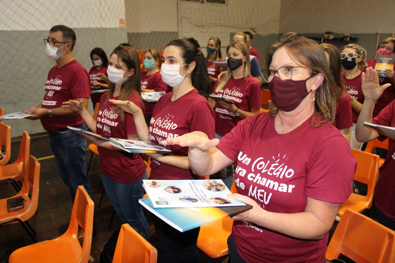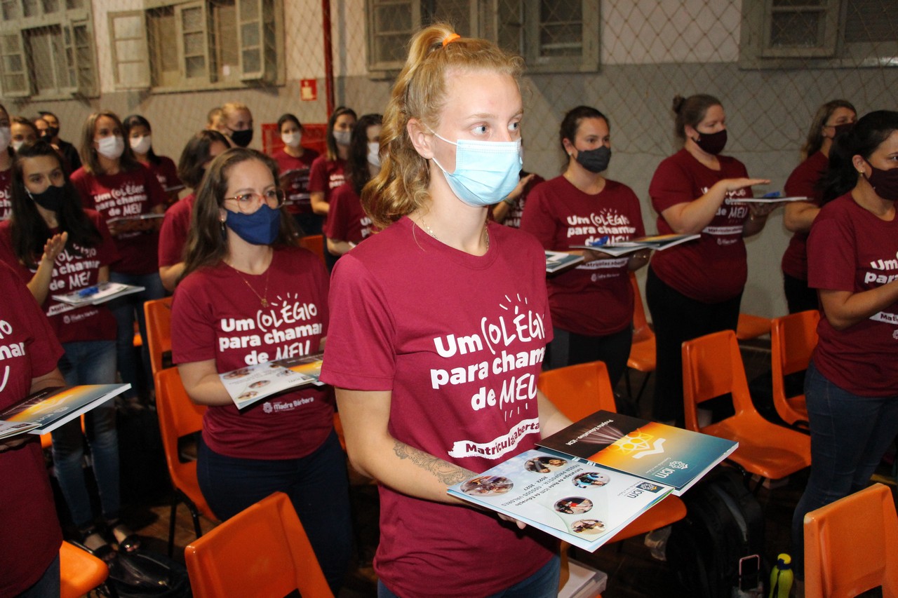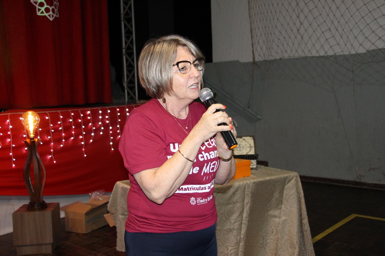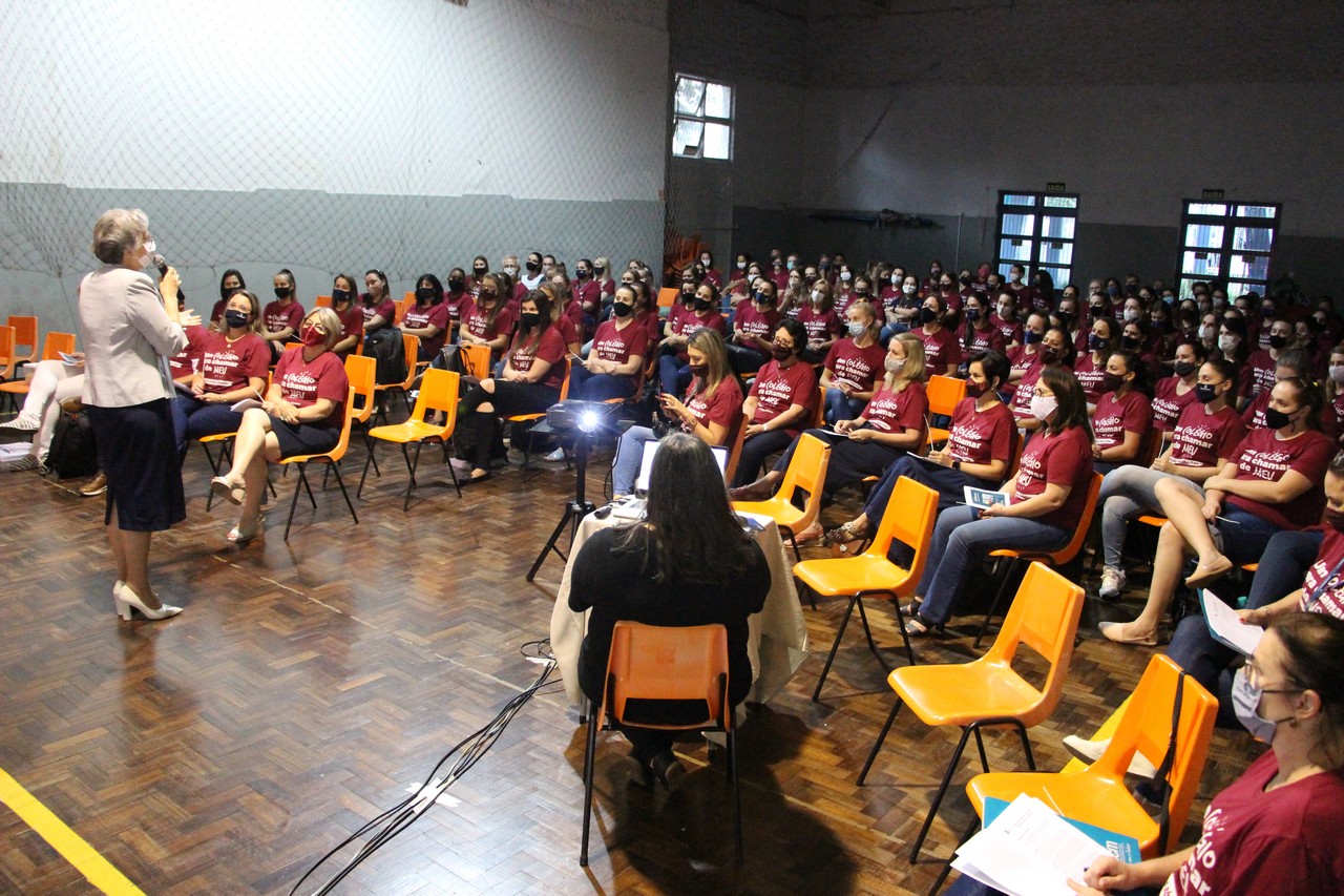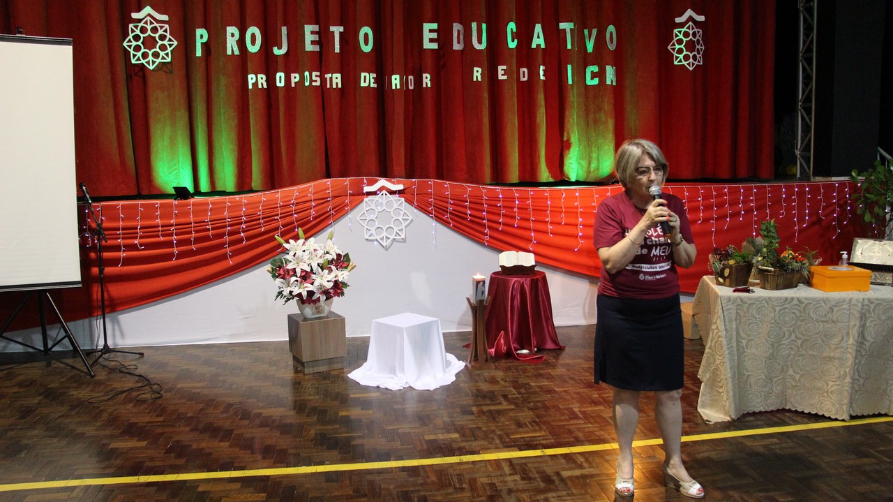 Lajeado/RS – Celebrar e amar o horizonte que ilumina a caminhada. Foi esse o convite que a Irmã Elenar Luisa Berghahn fez à comunidade educativa do Colégio Madre Bárbara ao abrir a celebração de entrega do novo Projeto Educativo e Proposta de Valor da Rede ICM de Educação.