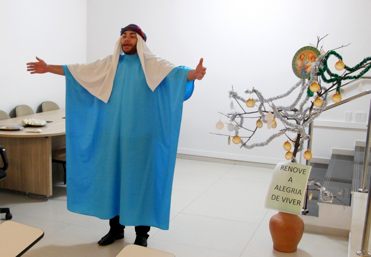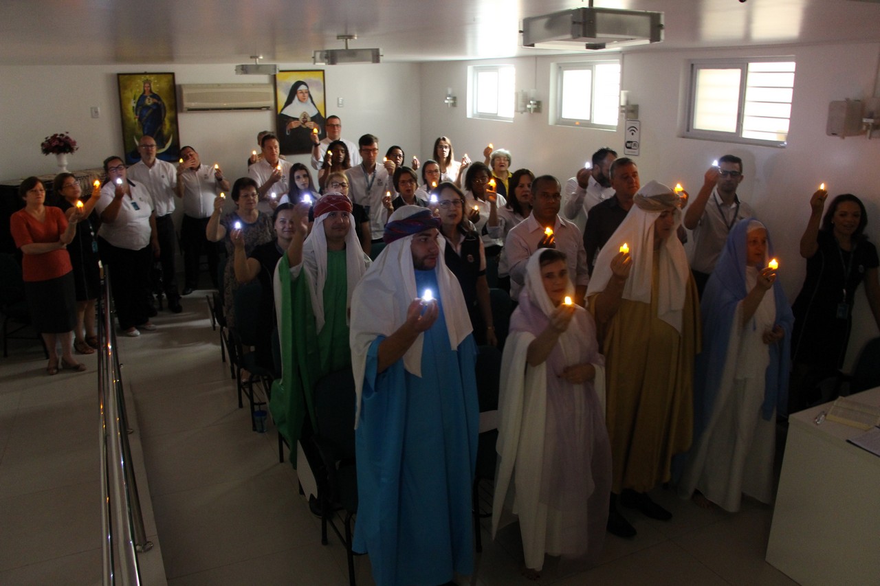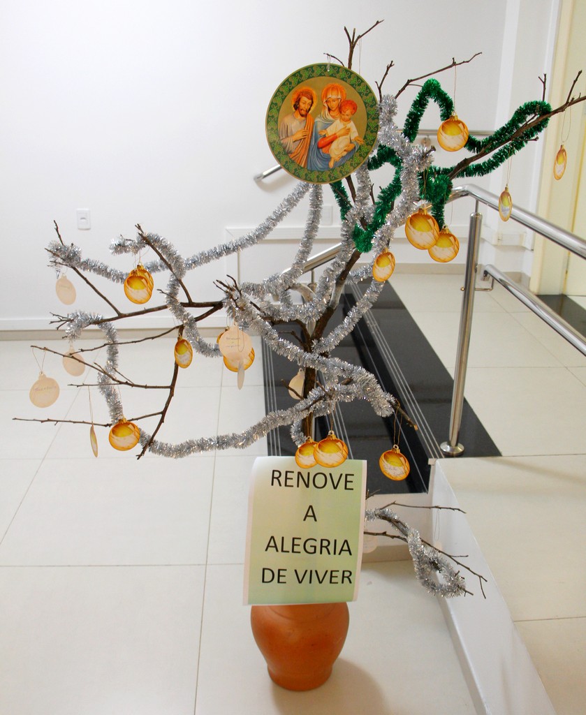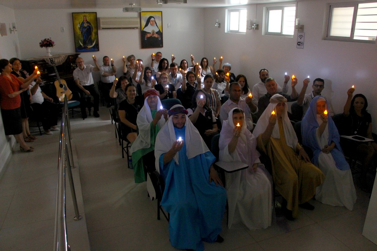 Com o tema “Renove a alegria de viver”, o momento orante trouxe a história da salvação através dos personagens históricos: o profeta Isaías, João Batista, o Anjo Gabriel, Maria e José. Os participantes também transformaram um galho seco em Árvore de Natal ao colocar bolas onde escreveram desejos e sonhos. Sendo Jesus a luz do nosso viver, todos também acenderam lamparinas e, entre colegas, fizeram a troca entre abraços e saudações.