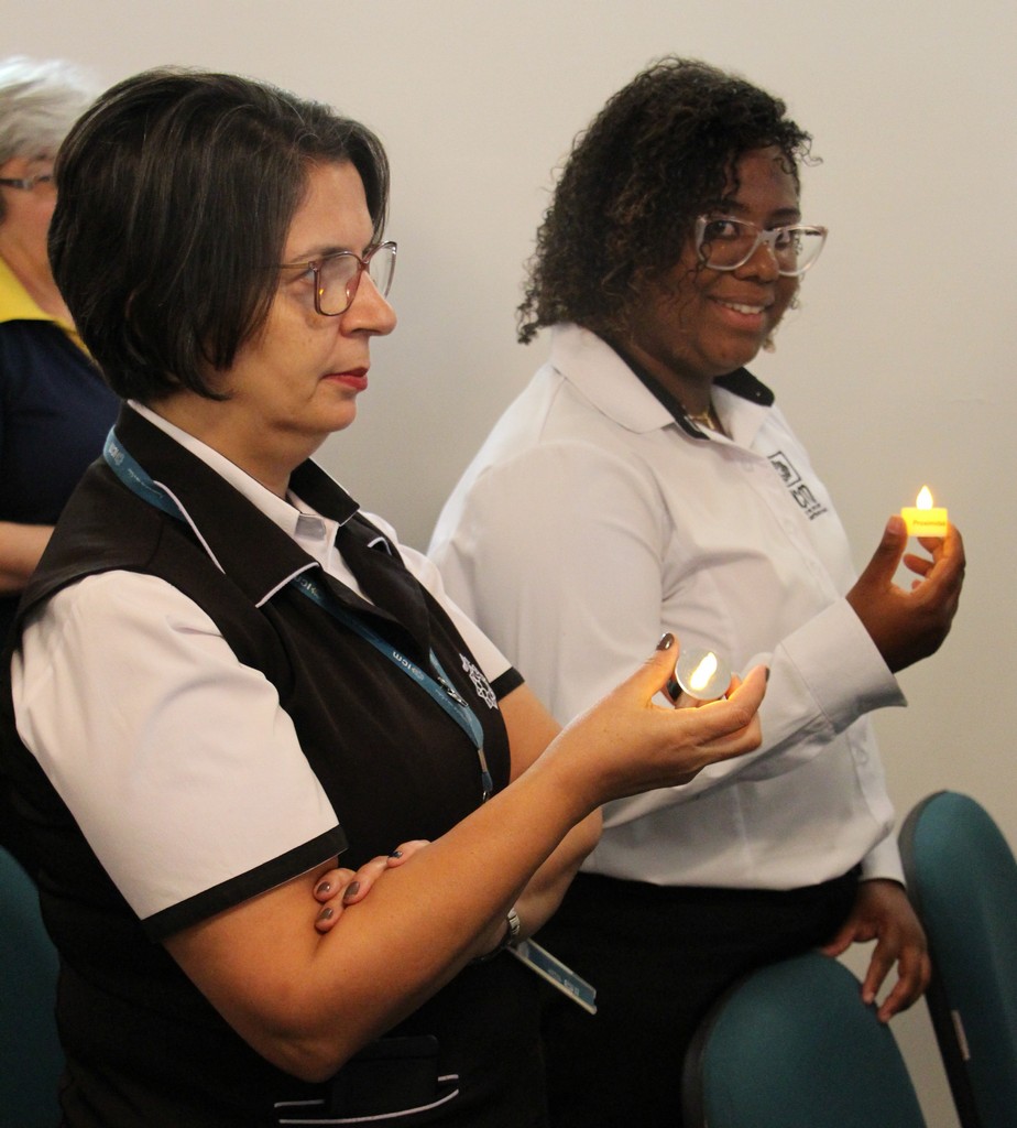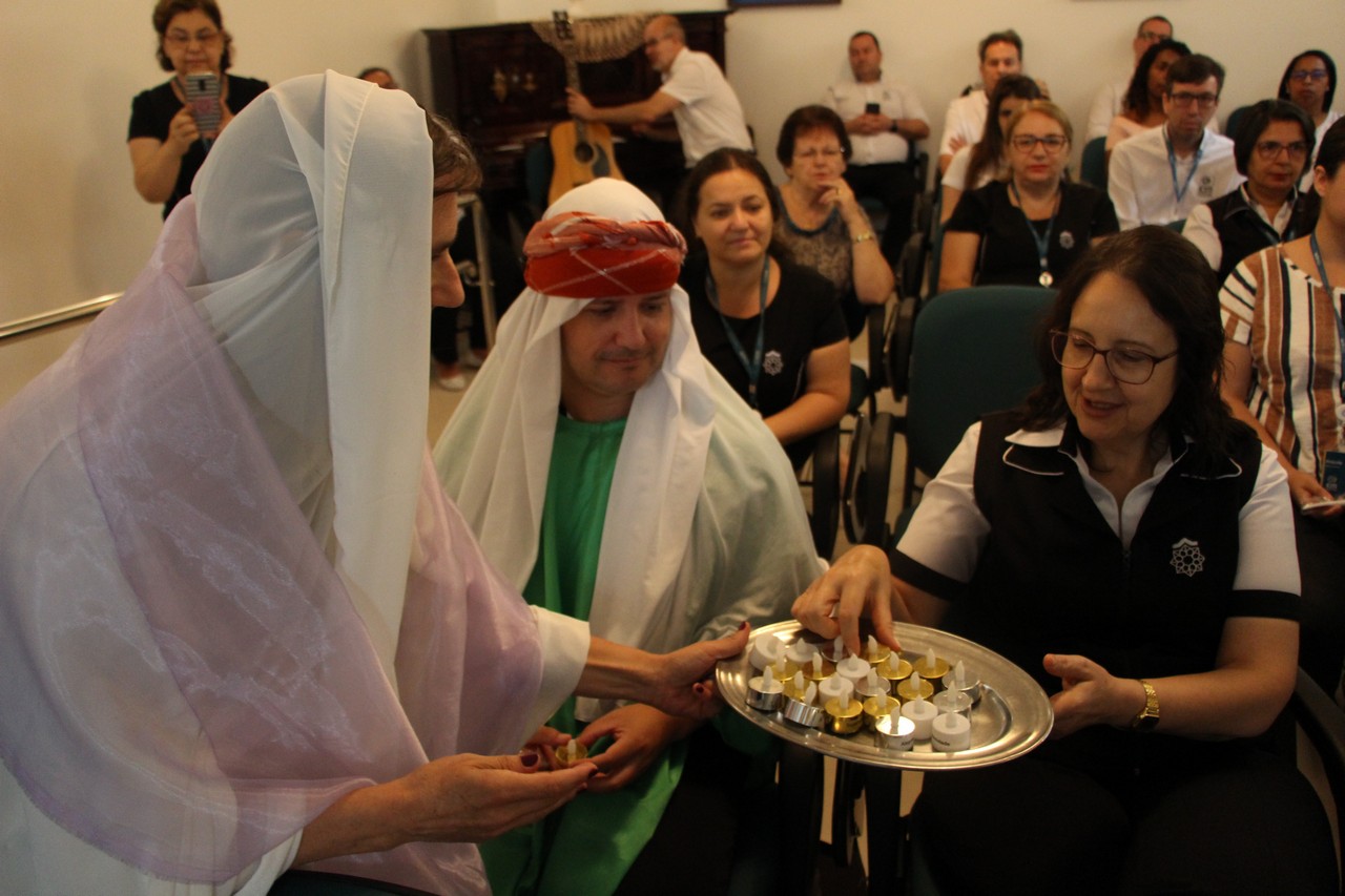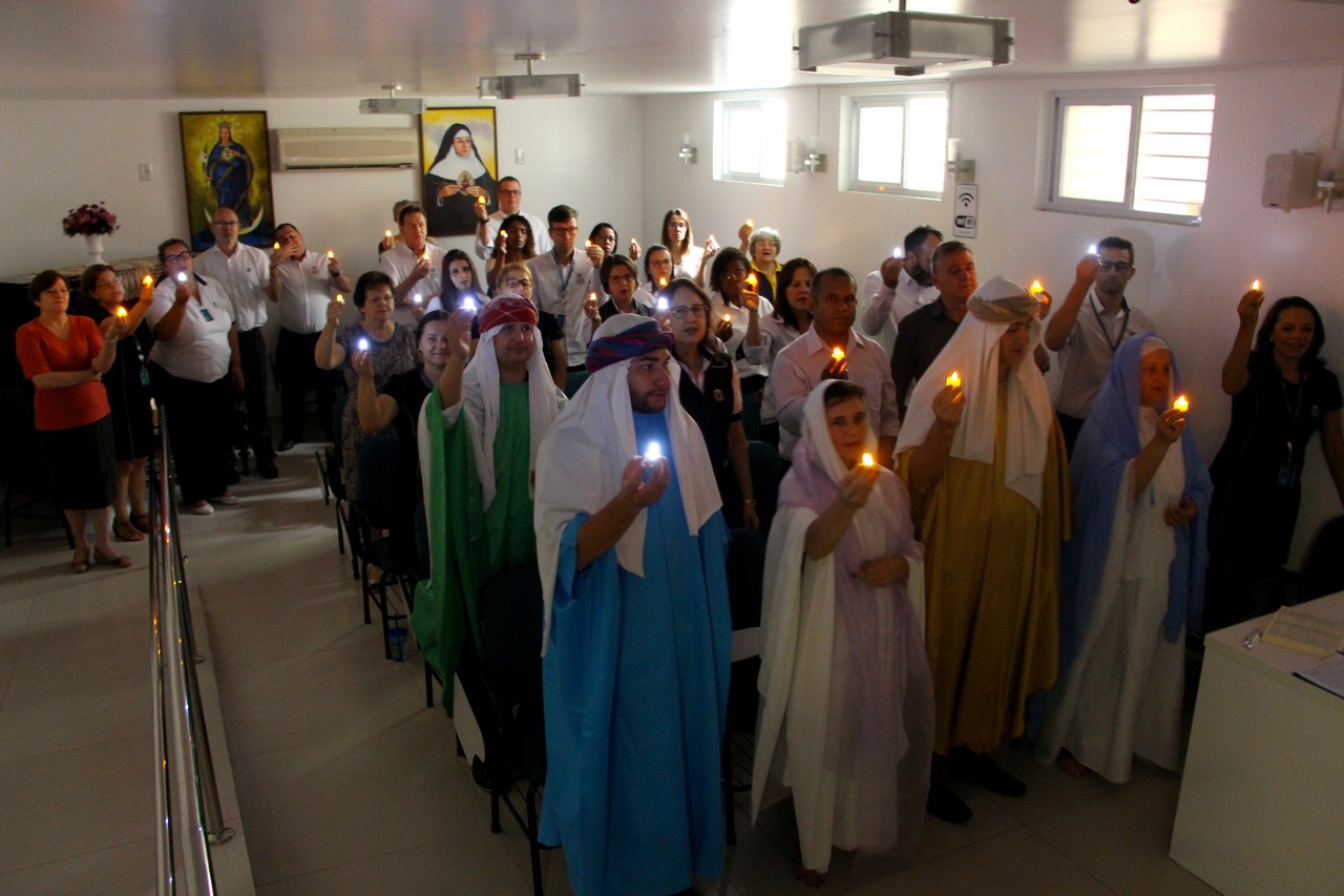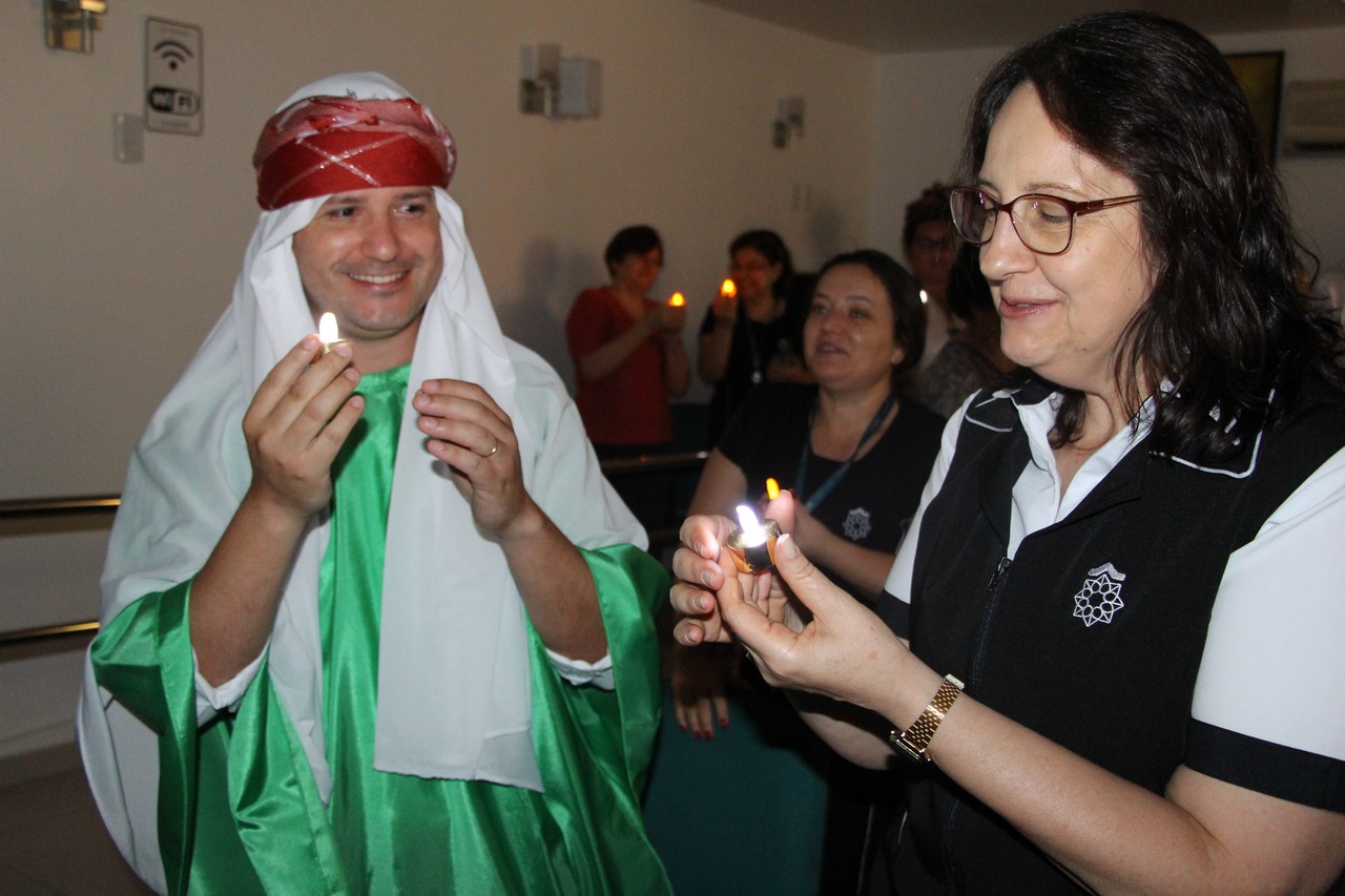 Com o tema “Renove a alegria de viver”, o momento orante trouxe a história da salvação através dos personagens históricos: o profeta Isaías, João Batista, o Anjo Gabriel, Maria e José. Os participantes também transformaram um galho seco em Árvore de Natal ao colocar bolas onde escreveram desejos e sonhos. Sendo Jesus a luz do nosso viver, todos também acenderam lamparinas e, entre colegas, fizeram a troca entre abraços e saudações.