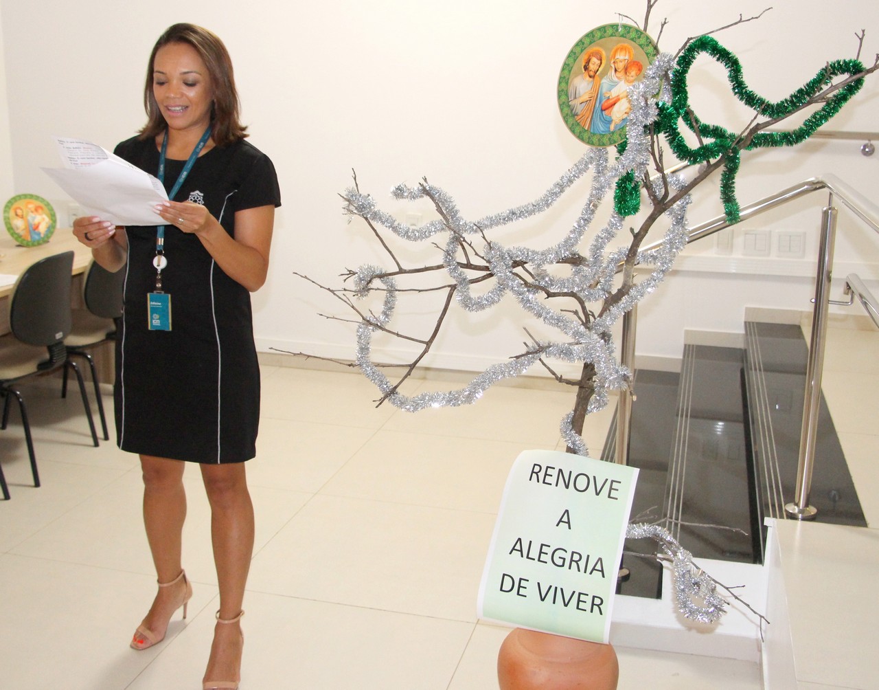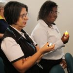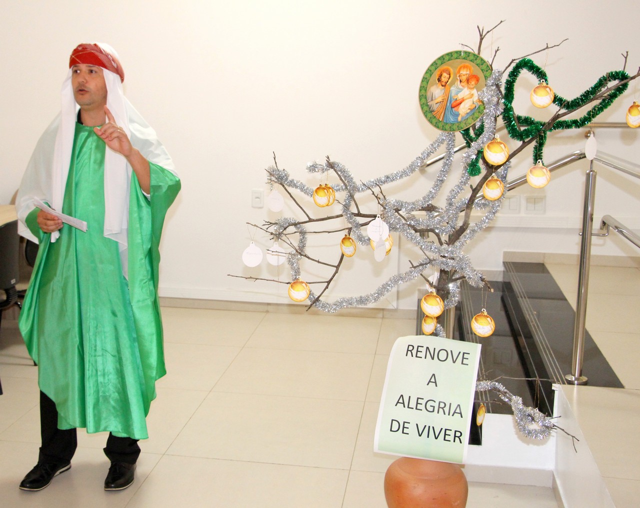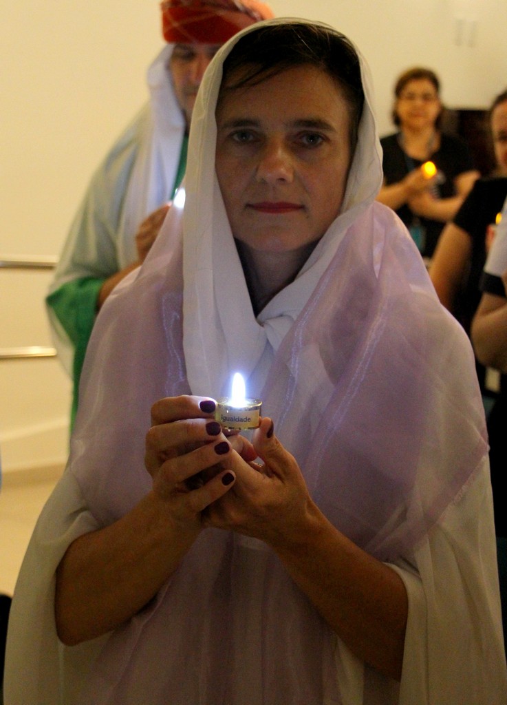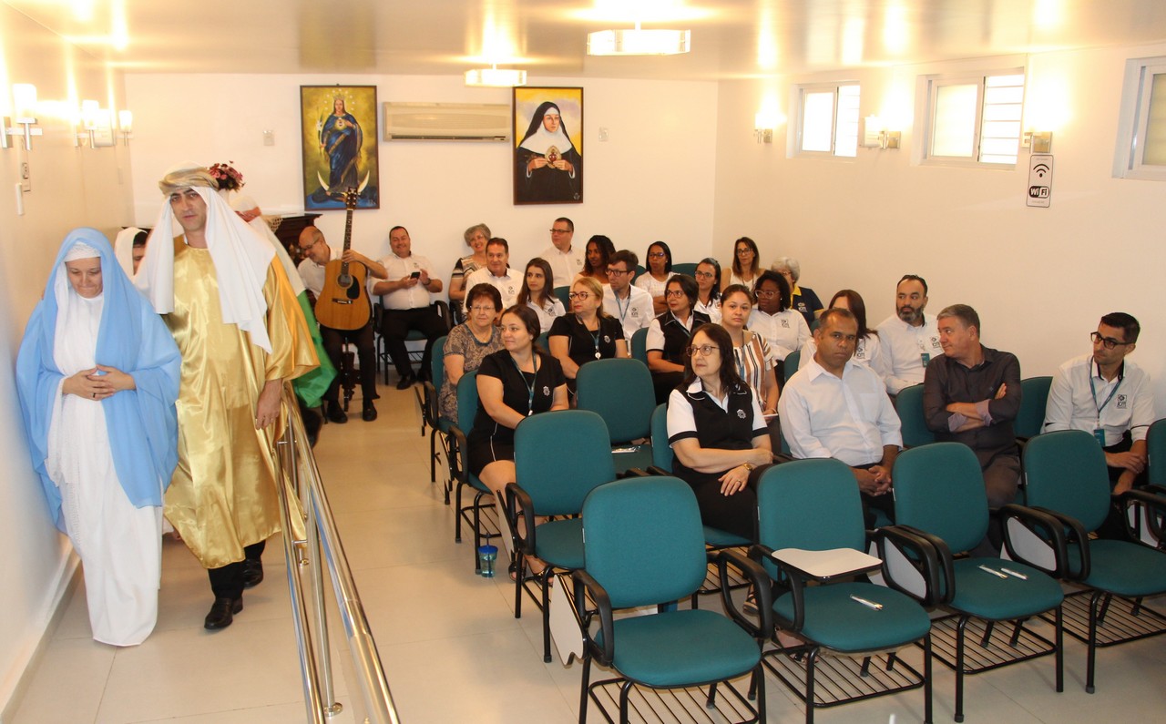Com o tema “Renove a alegria de viver”, o momento orante trouxe a história da salvação através dos personagens históricos: o profeta Isaías, João Batista, o Anjo Gabriel, Maria e José. Os participantes também transformaram um galho seco em Árvore de Natal ao colocar bolas onde escreveram desejos e sonhos. Sendo Jesus a luz do nosso viver, todos também acenderam lamparinas e, entre colegas, fizeram a troca entre abraços e saudações.